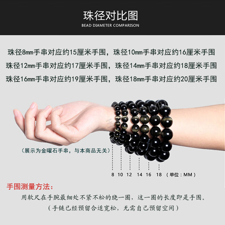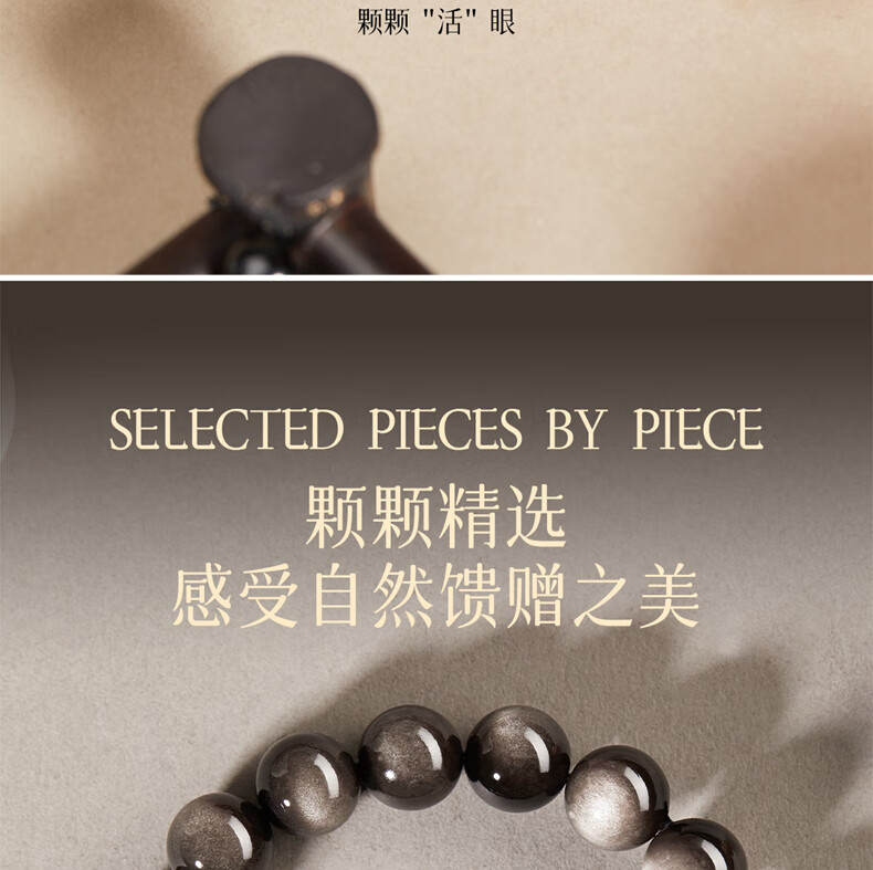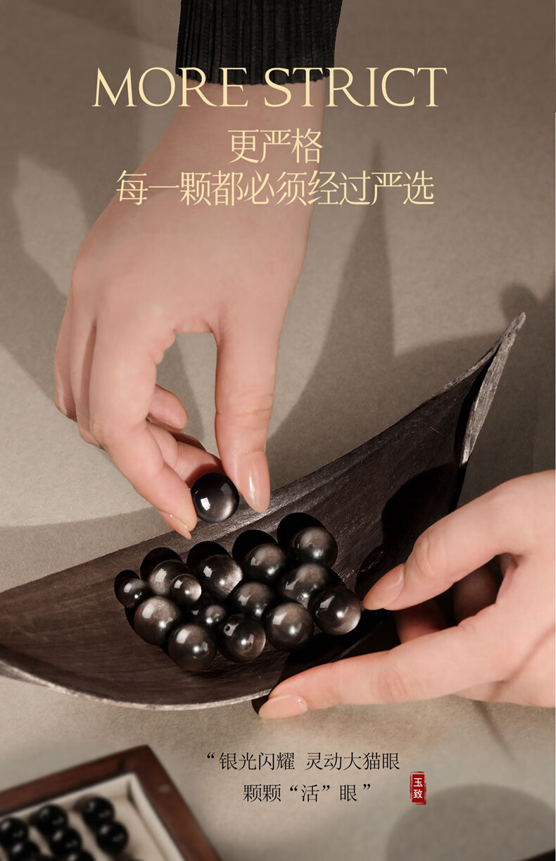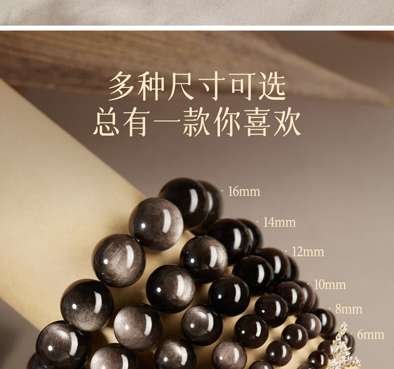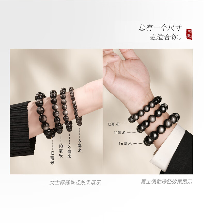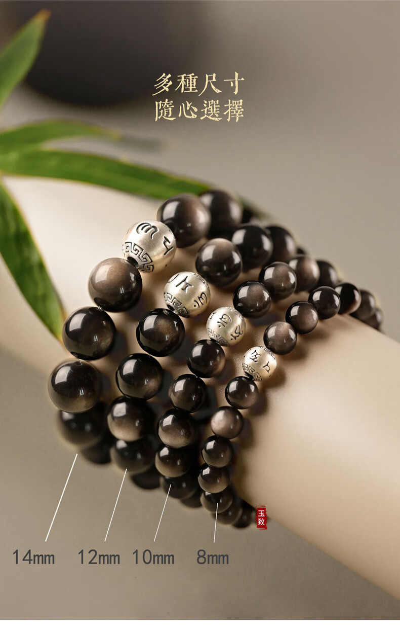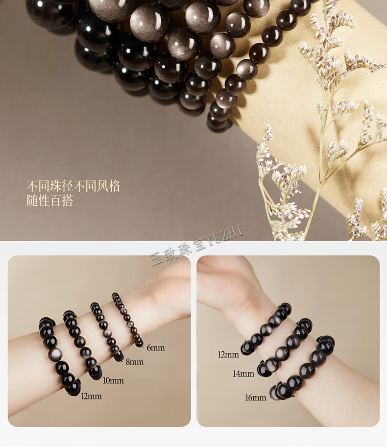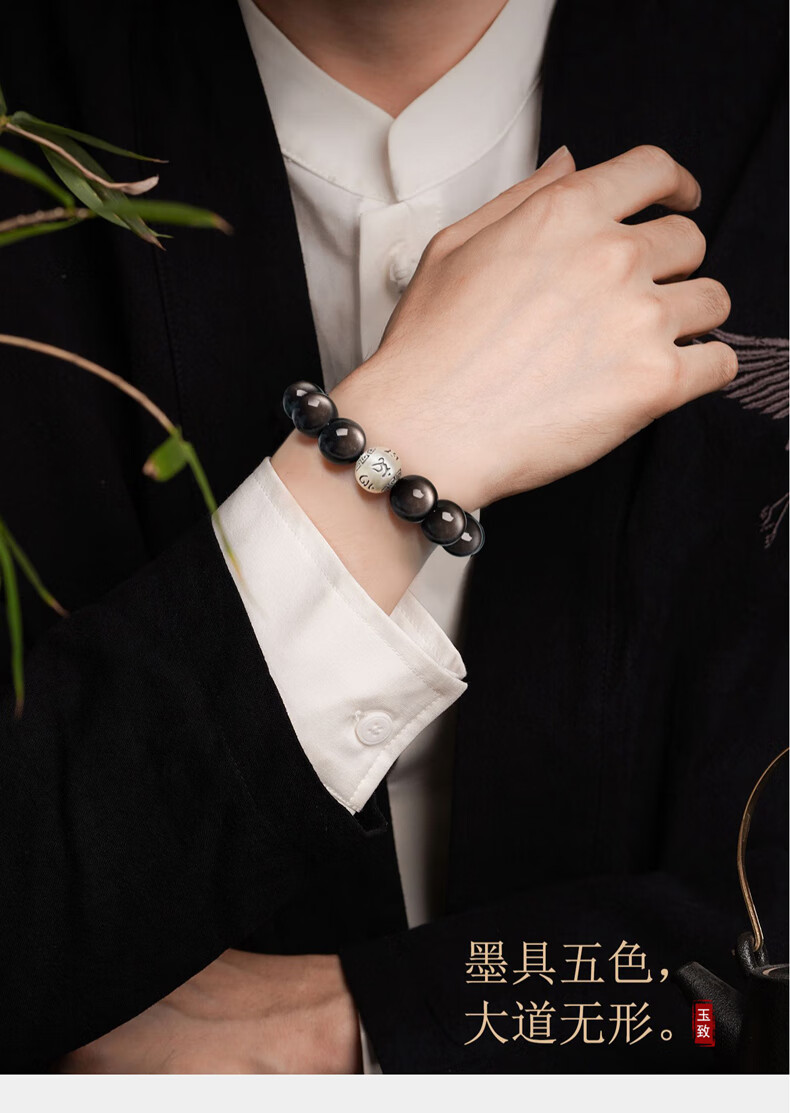 玉致新年礼物天然猫眼银曜石手串黑曜石男女情侣手链节日礼物带证书 10mm珠径(标准女款)收藏小灯泡