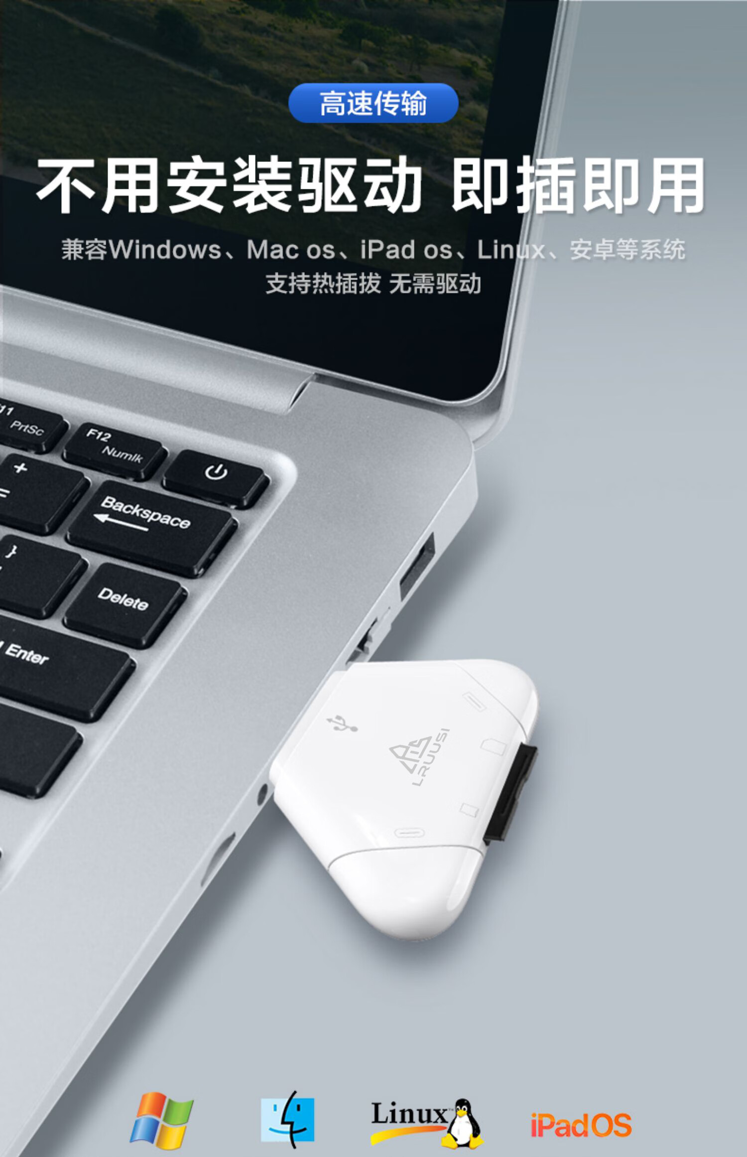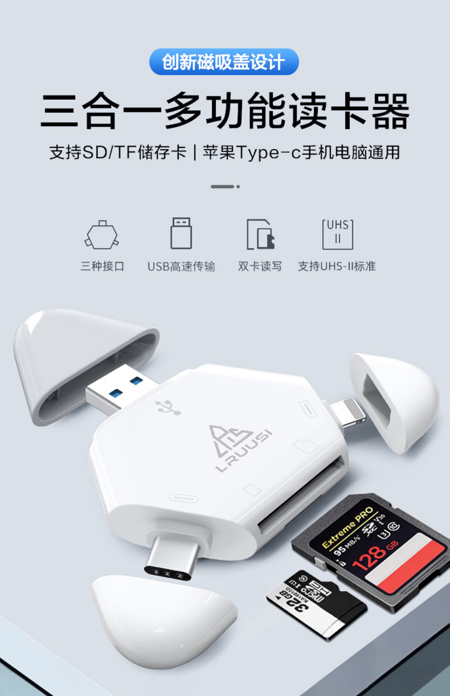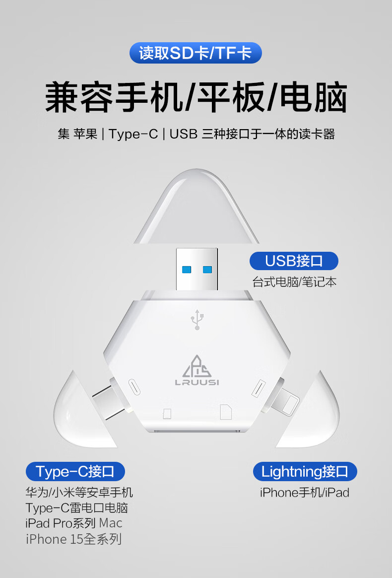 LRUUSI(徕瑞思)相机内存卡SD卡TF卡多合一手机读卡器 单反微单R6、R7、R8、R10、R50 高速存储卡读取 LRUUSI 2.0快速旗舰版 SD TF多合一读卡器
