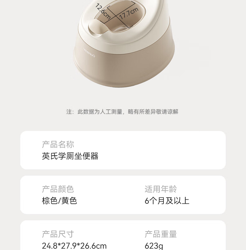 英氏(YEEHOO)儿童马桶坐便器宝宝小马桶男孩女孩婴儿训练厕所家用尿盆 黄色+20个清洁袋