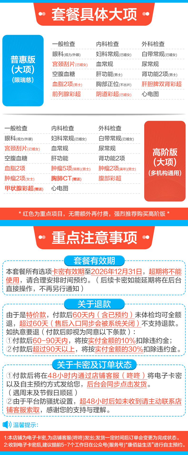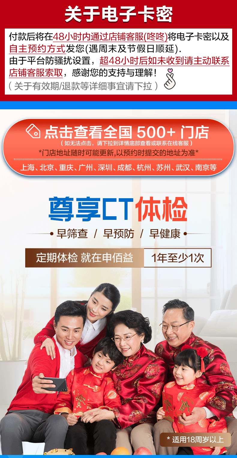 美年大健康瑞慈体检家人心享C套餐中青老年通用体检卡-W 高阶版(2人份多减20)(美年瑞慈) 2个工作日内店铺客服(咚咚)发您电子卡密自主预约