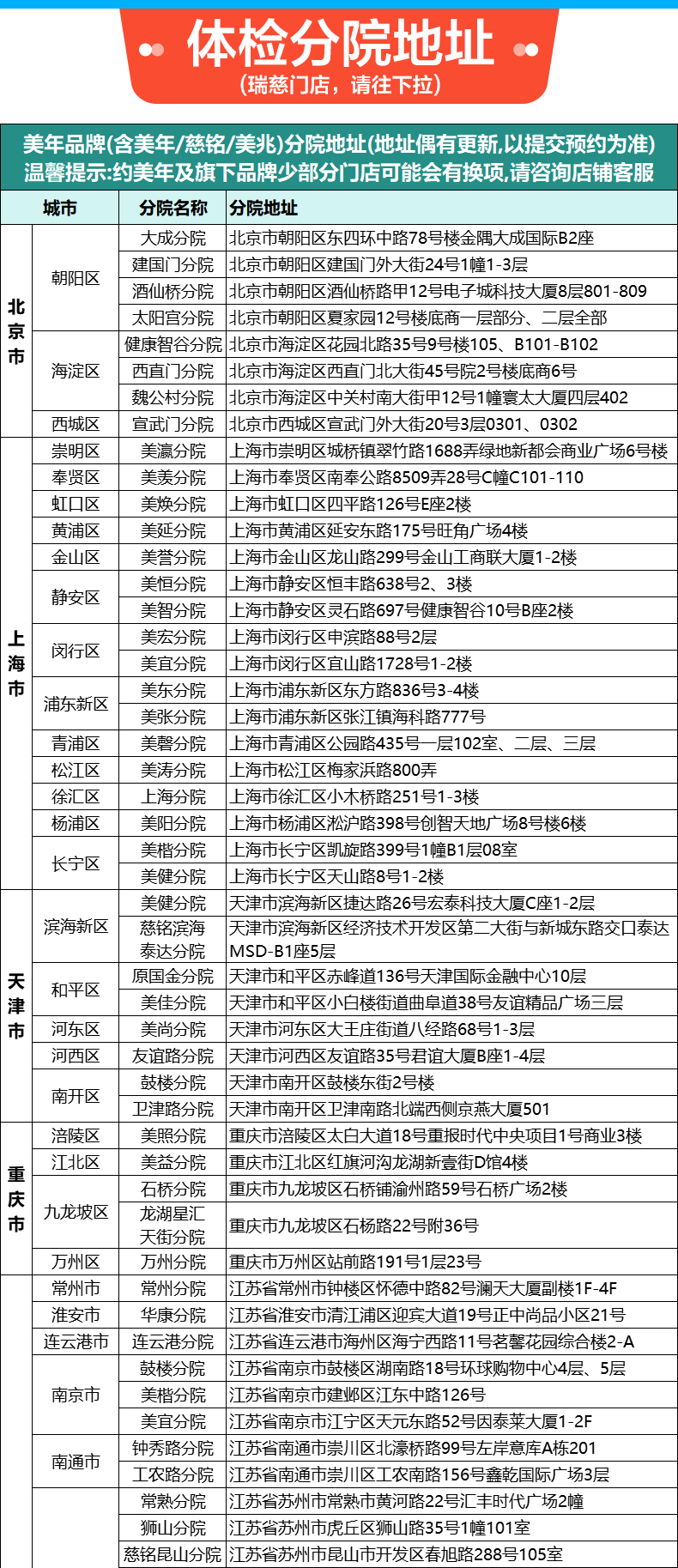 美年大健康/瑞慈专享家人畅享J体检套餐中青老年全国500+门店通用体检卡 高阶版(1人)(美年瑞慈) 2个工作日内店铺客服(咚咚)发您卡密自主预约