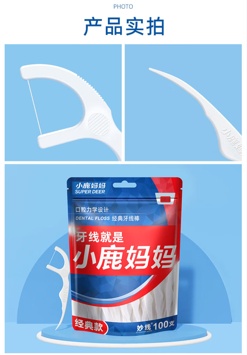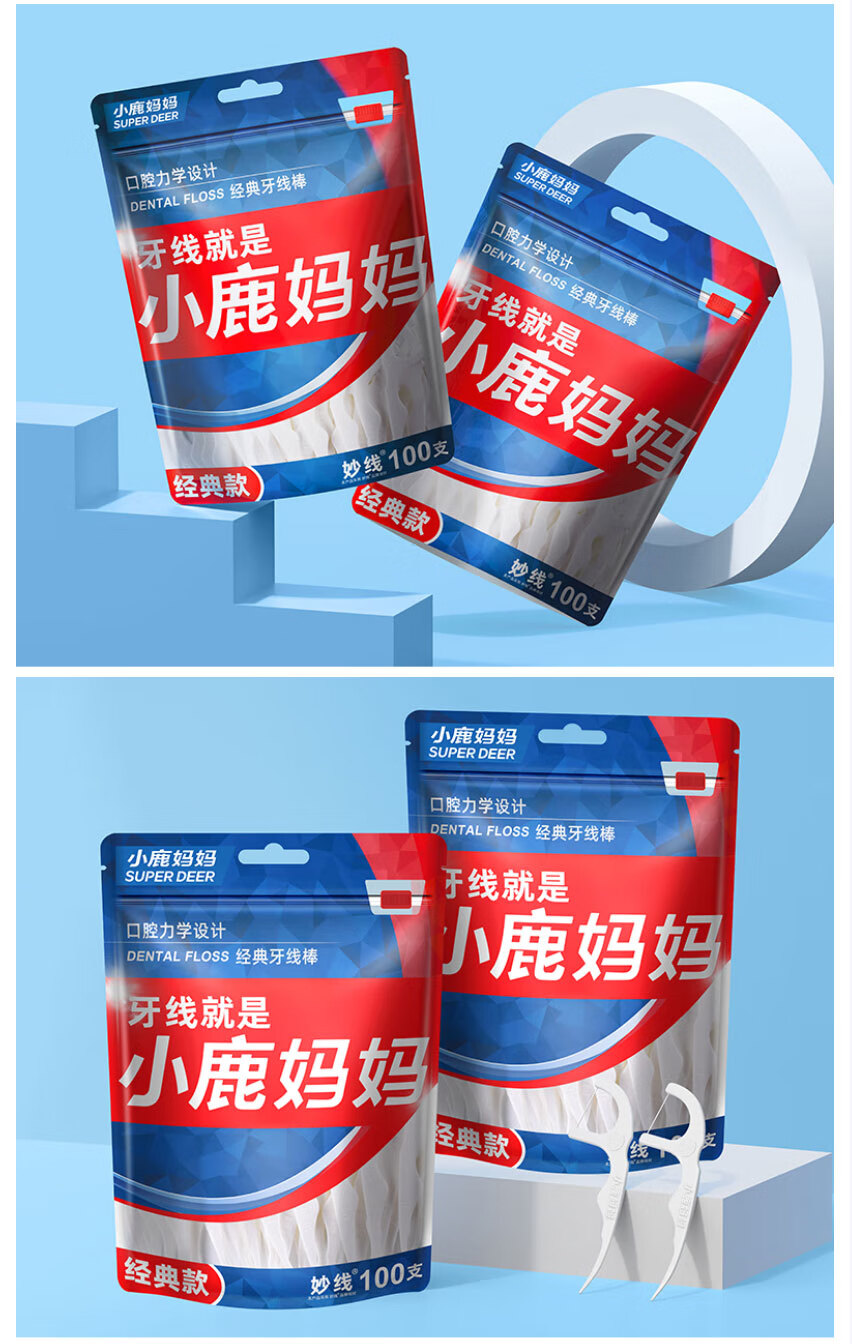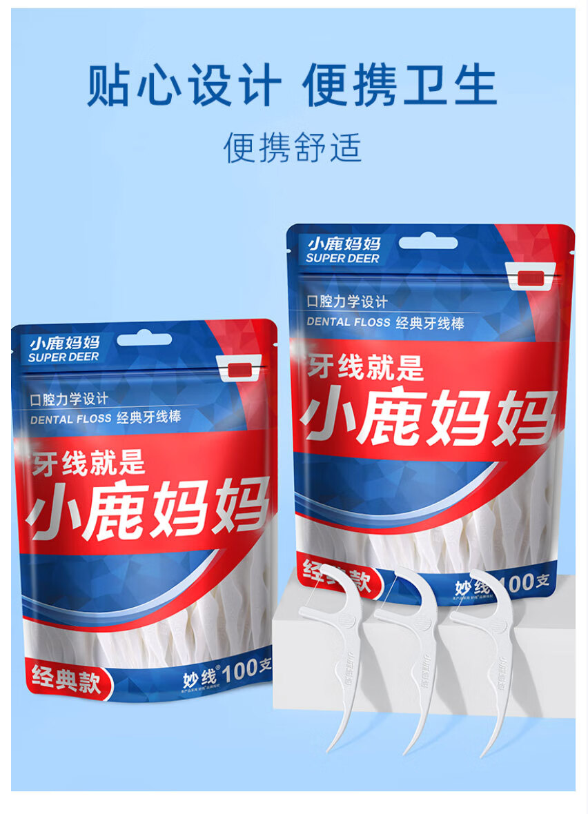 小鹿妈妈经典牙线棒牙签线剔牙线 舒适深洁 方便携带 家庭装成人 经典囤货款【3袋300支】