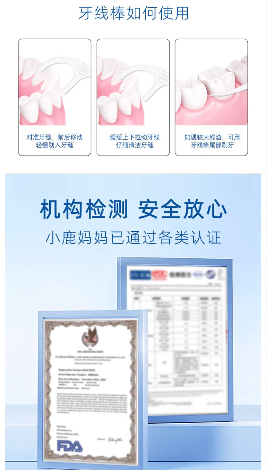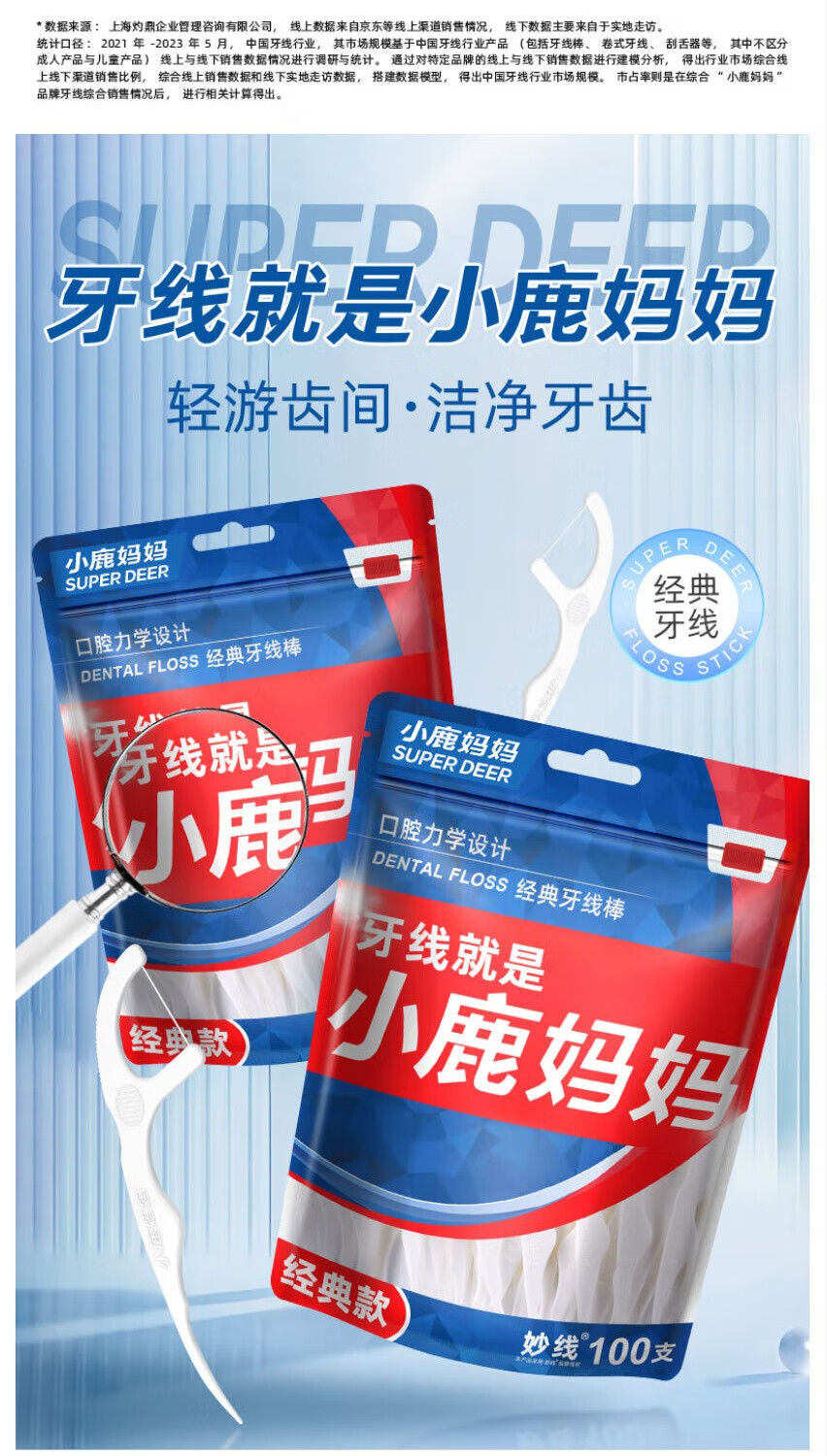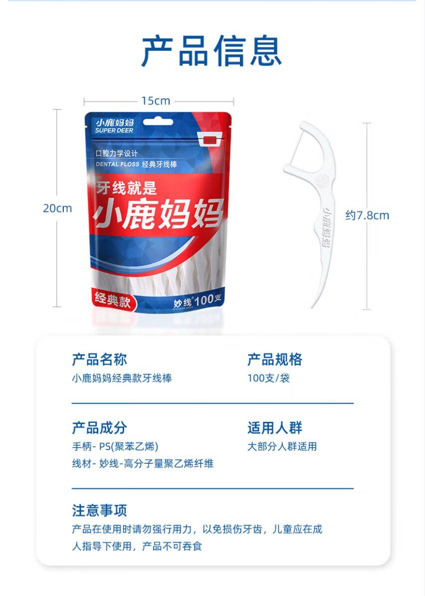 小鹿妈妈经典牙线棒牙签线剔牙线 舒适深洁 方便携带 家庭装成人 经典囤货款【3袋300支】