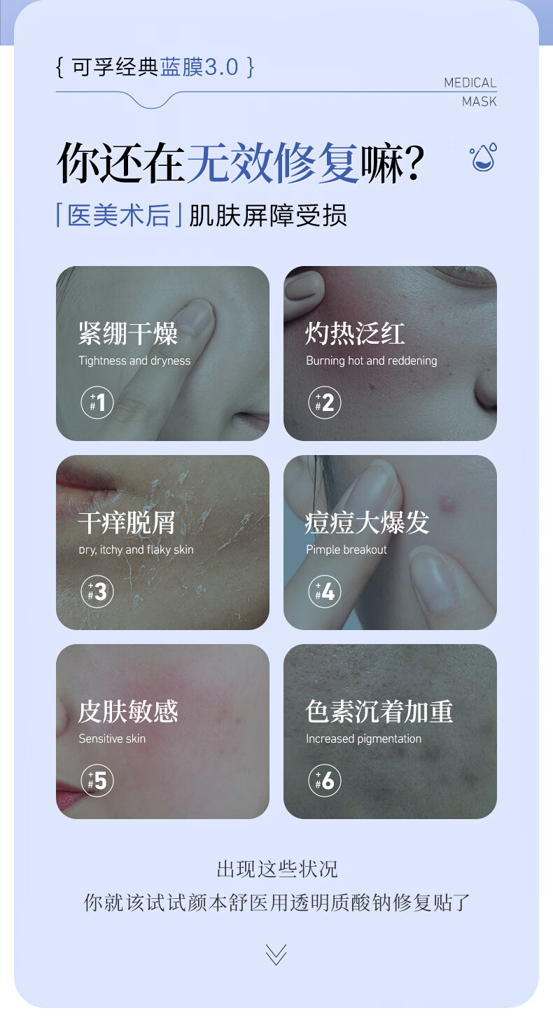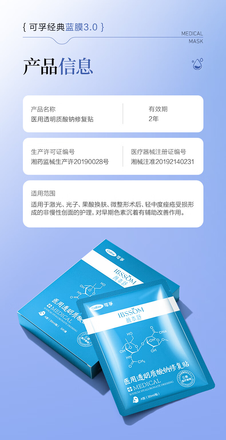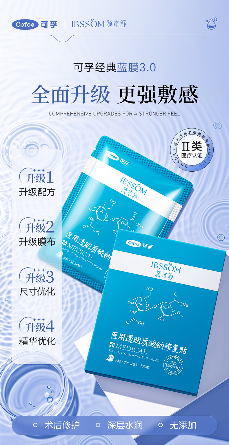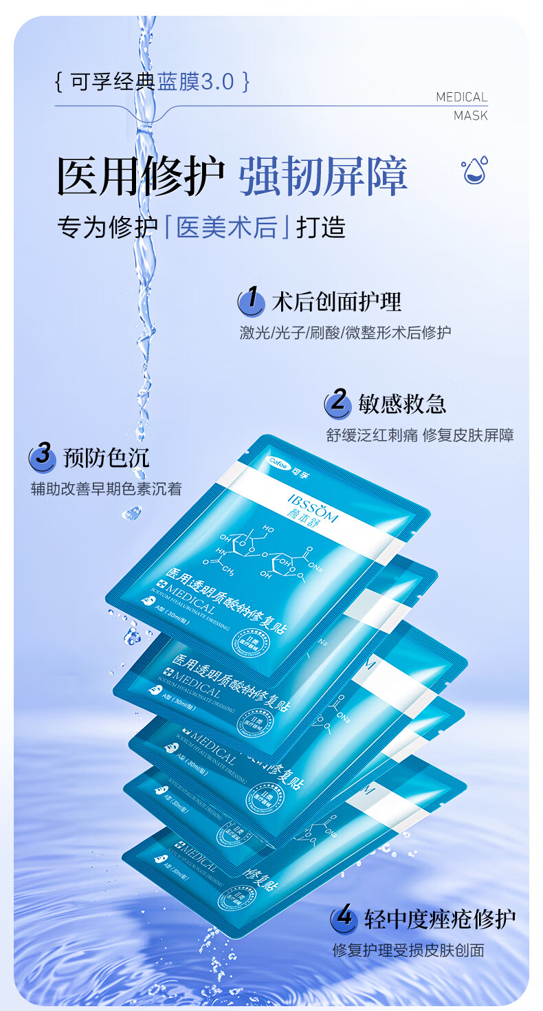 可孚医用冷敷贴术后修复敷贴医美水光针透明质酸钠修复贴敷料非面膜 【白膜散装-10片装】透明质酸钠修复贴-