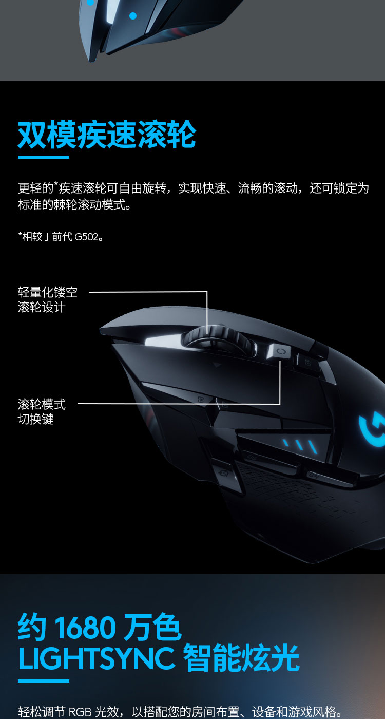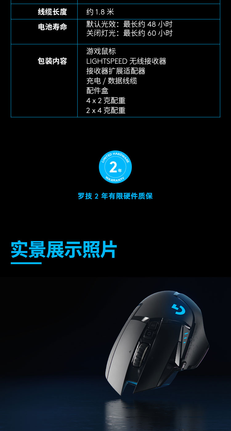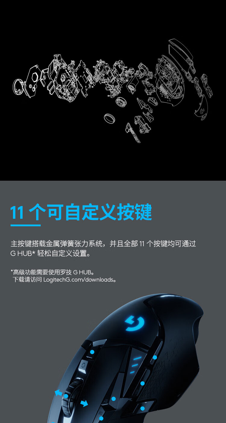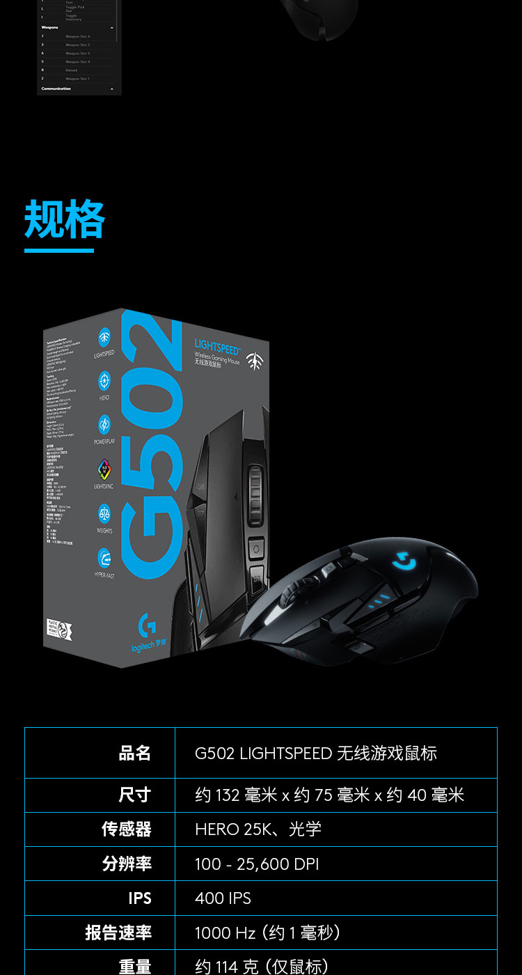 罗技(G)G502无线游戏鼠标电竞双模鼠标RGB灯光黑神话悟空自定义配重机械鼠标送男友WF13B G502无线版