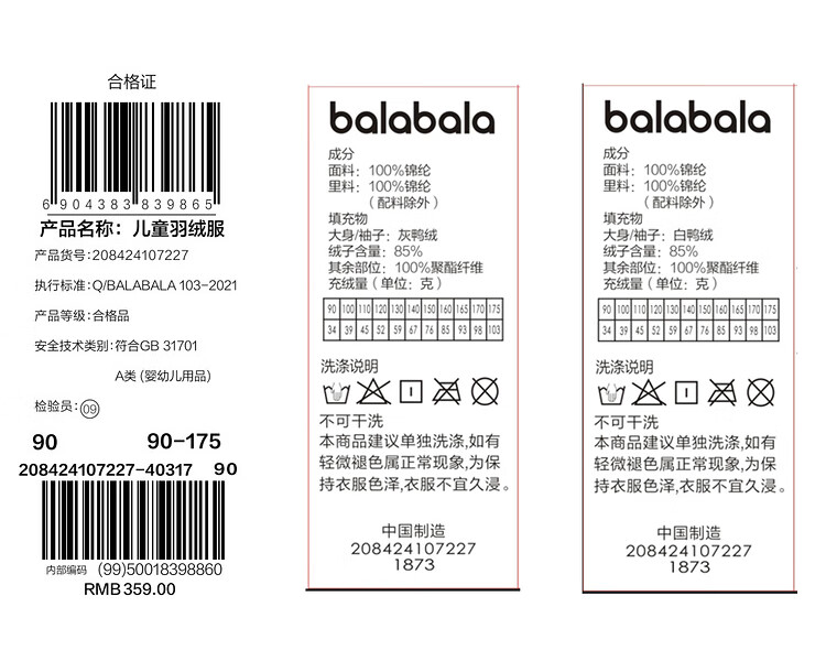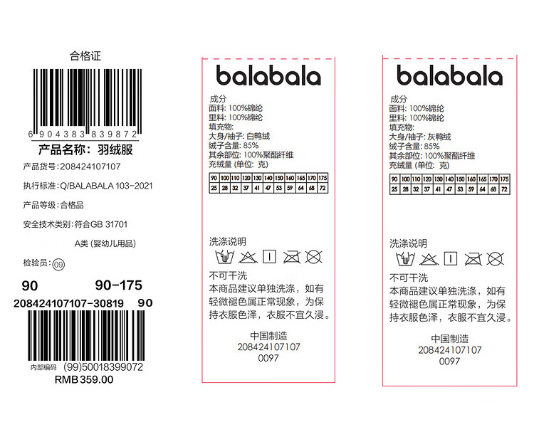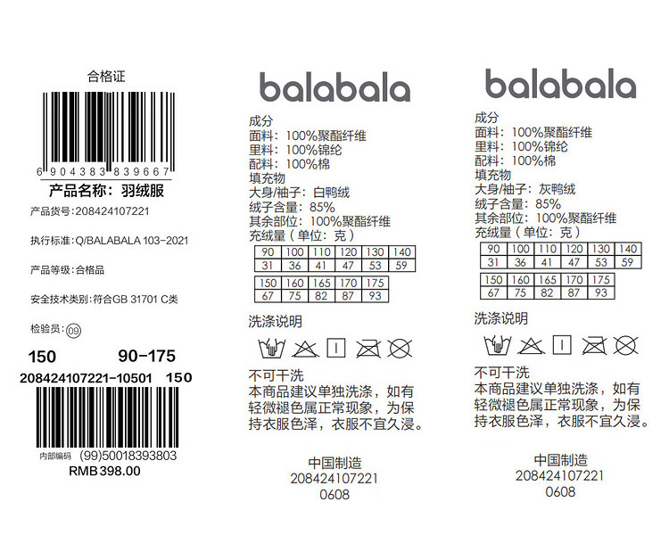 巴拉巴拉童装儿童羽绒服宝宝男童女童年冬季轻薄外套保暖时尚潮流 粉紫70031 165 cm