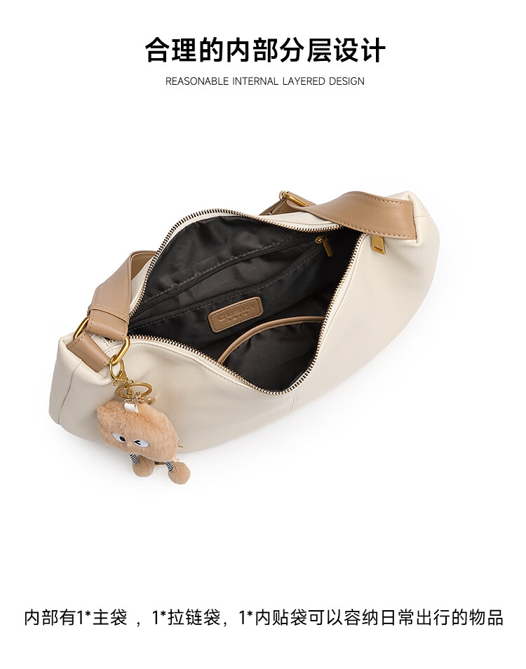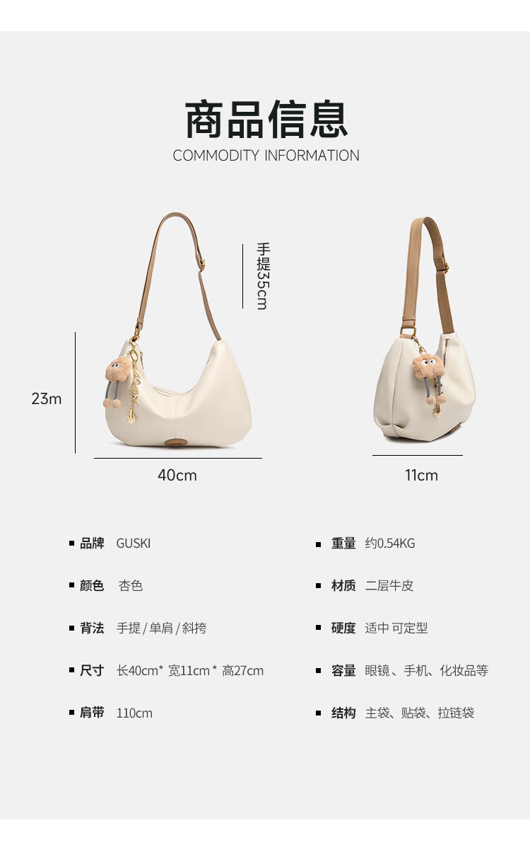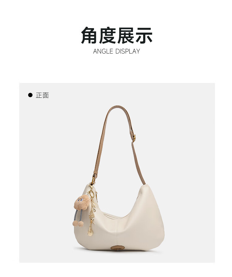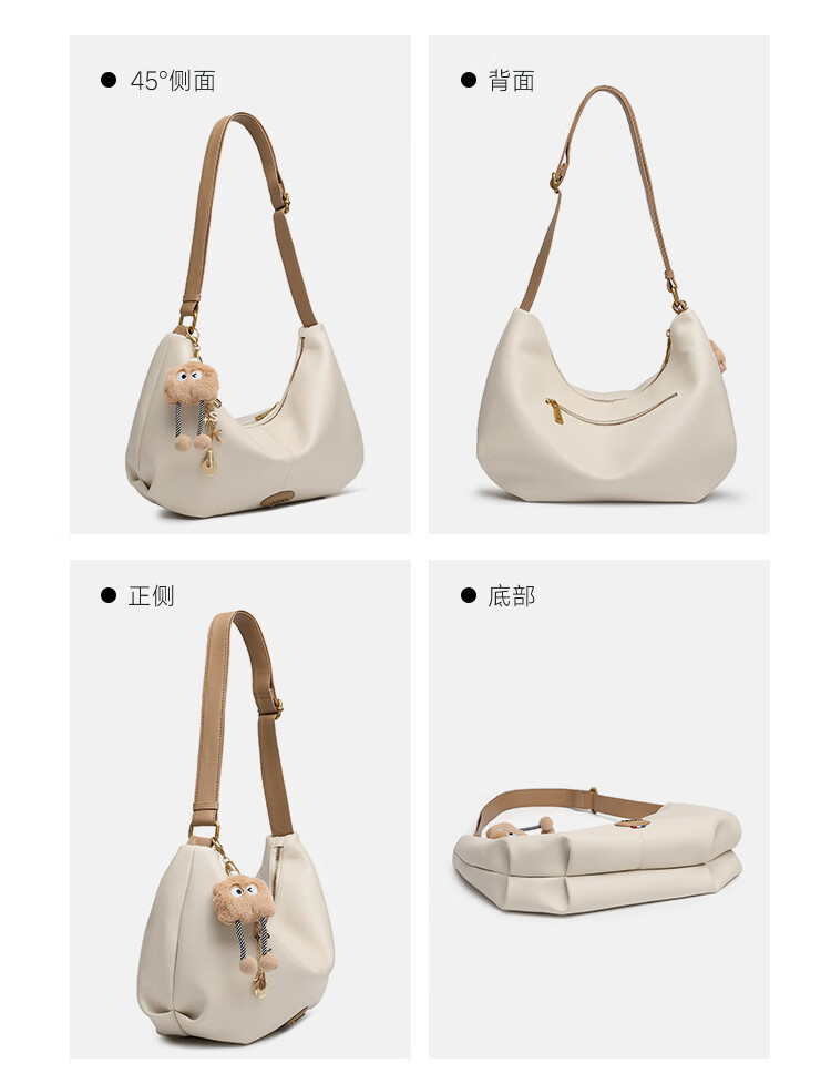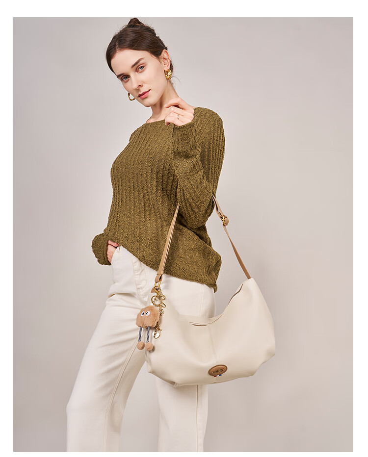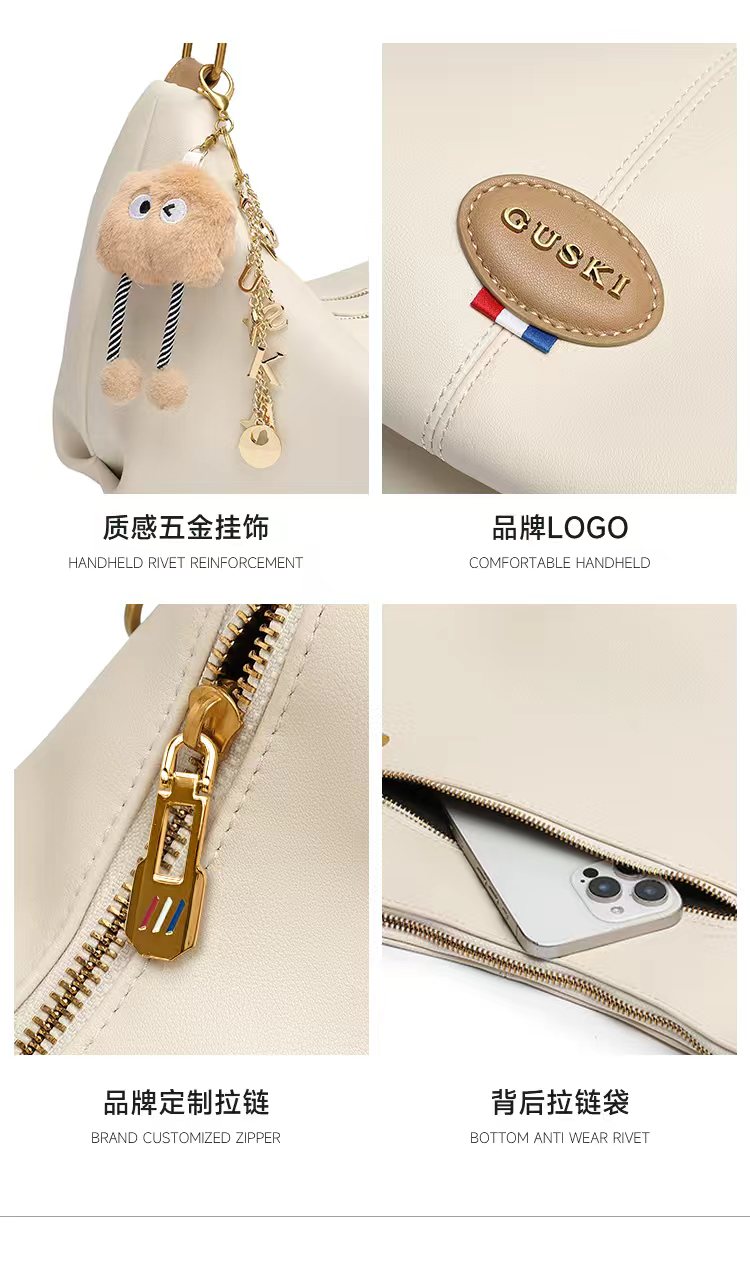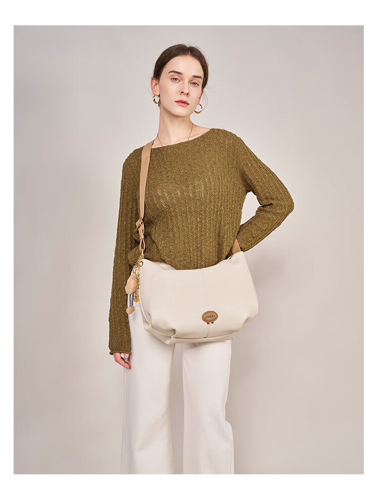 GUSKI法国奢侈品牌新款女士单肩斜挎牛皮饺子包生日新年情人节礼物女 Off-white米白色 送女友送老婆送妈妈