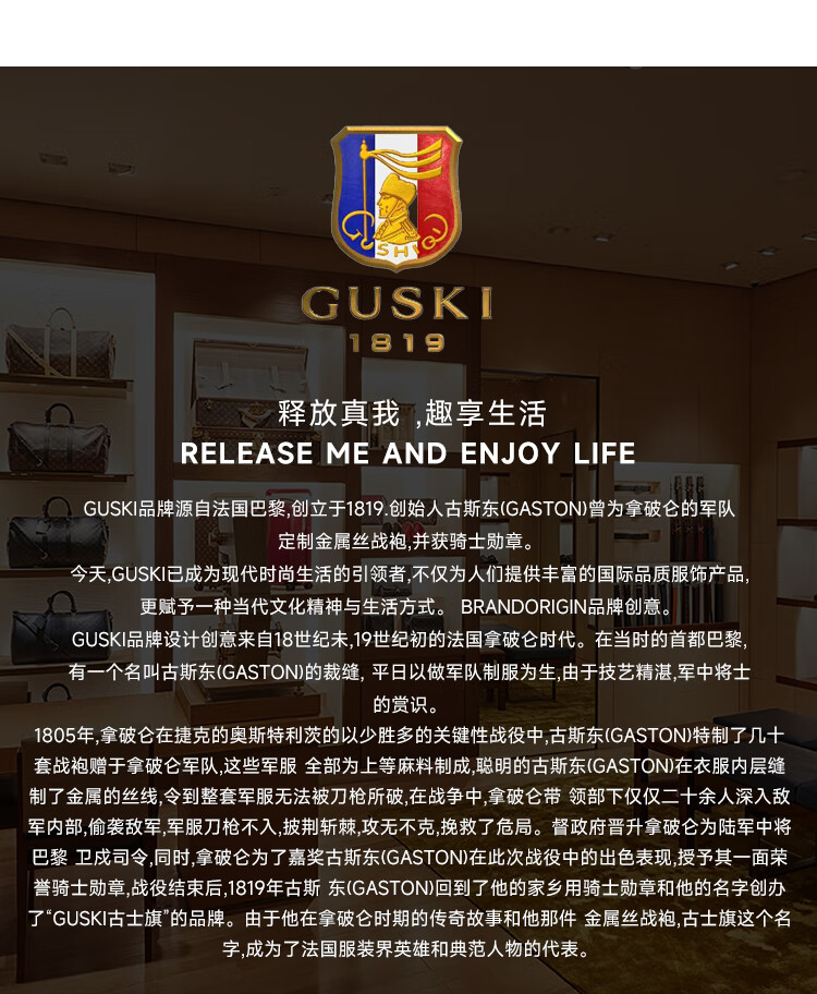 古士旗(GUSKI)法国品牌皮带男真皮自动扣男士裤腰带高档生日情人节礼物送男友 金色气质款+头层牛皮【专柜礼盒】 115cm -130cm随机联系客服指定