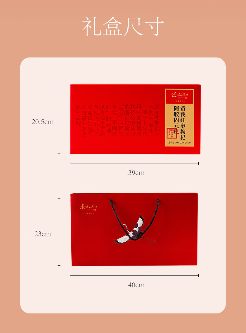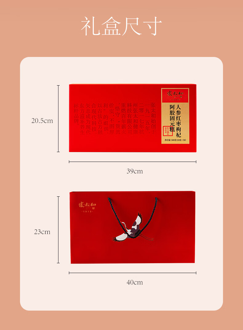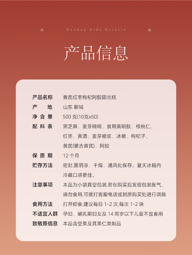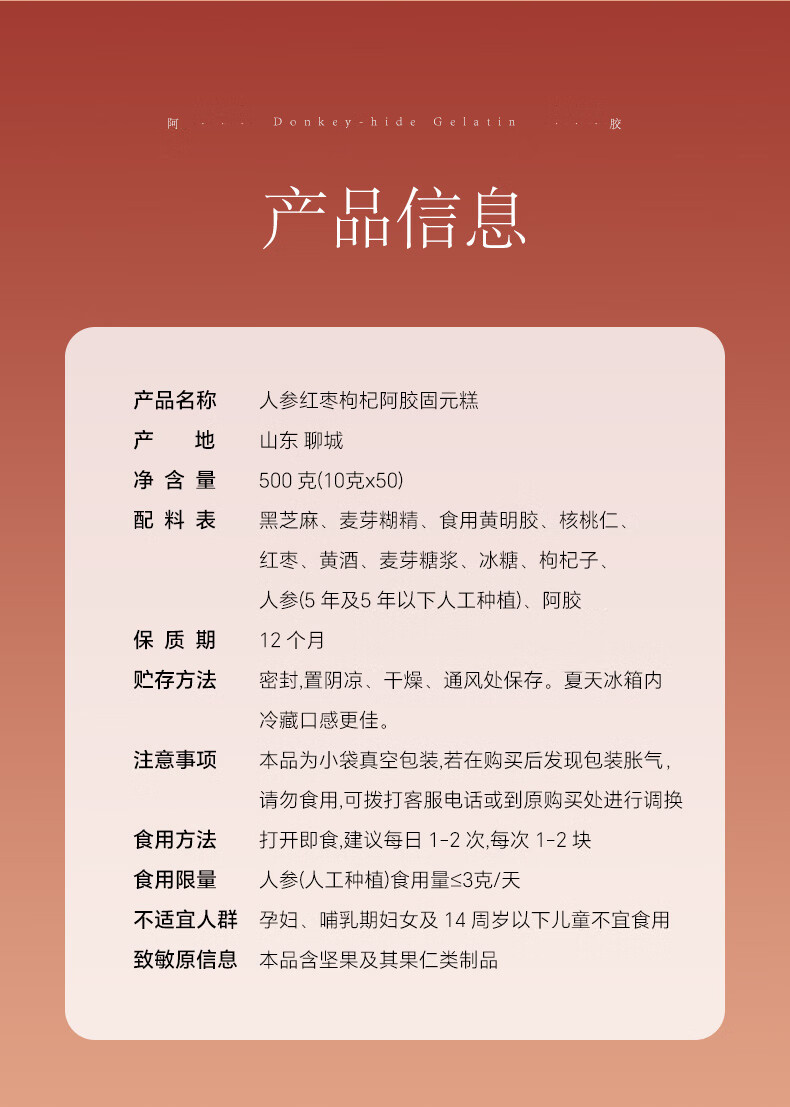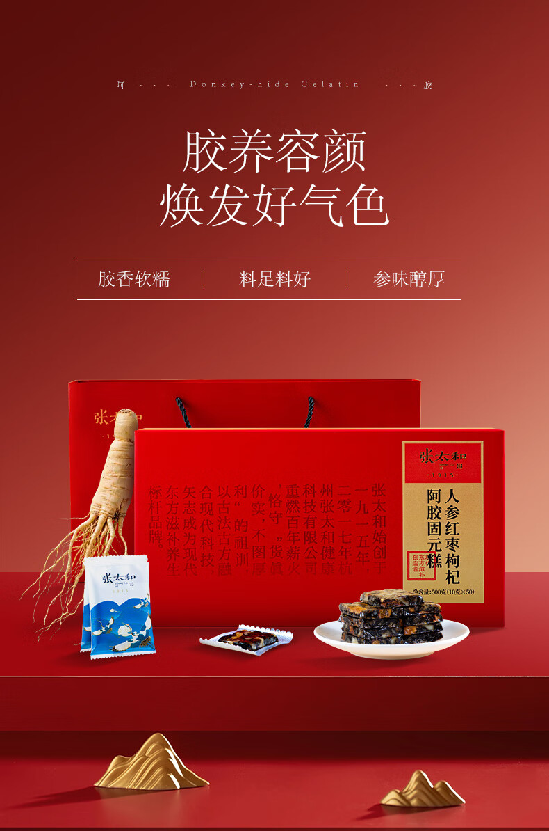 张太和人参 黄芪红枣枸杞阿胶固元糕 即食独立小包装山东东阿产地礼品 人参红枣枸杞阿胶固元糕礼盒 500g*1盒 赠礼袋