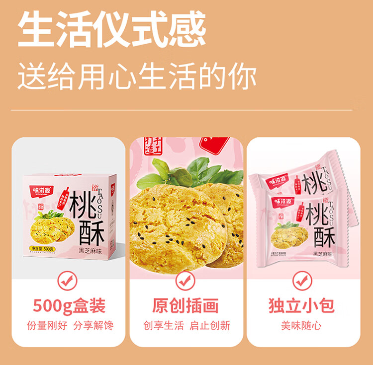 味滋源 桃酥500g盒装手工酥饼 曲奇 休闲零食糕点零食团购送