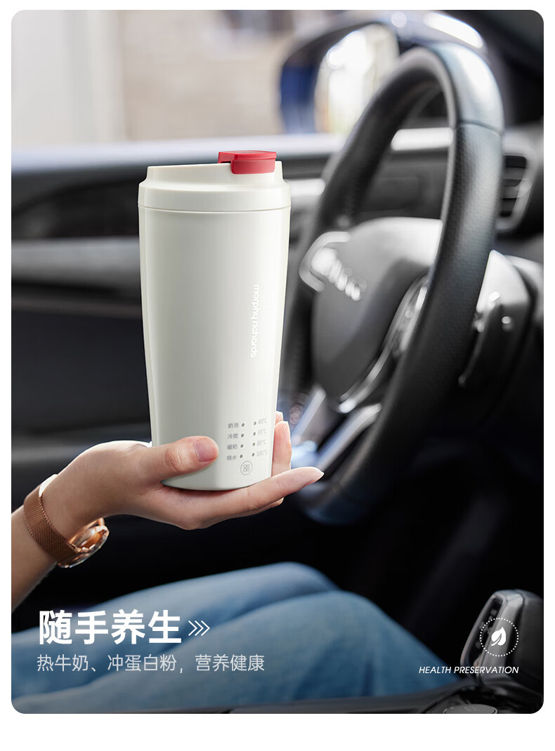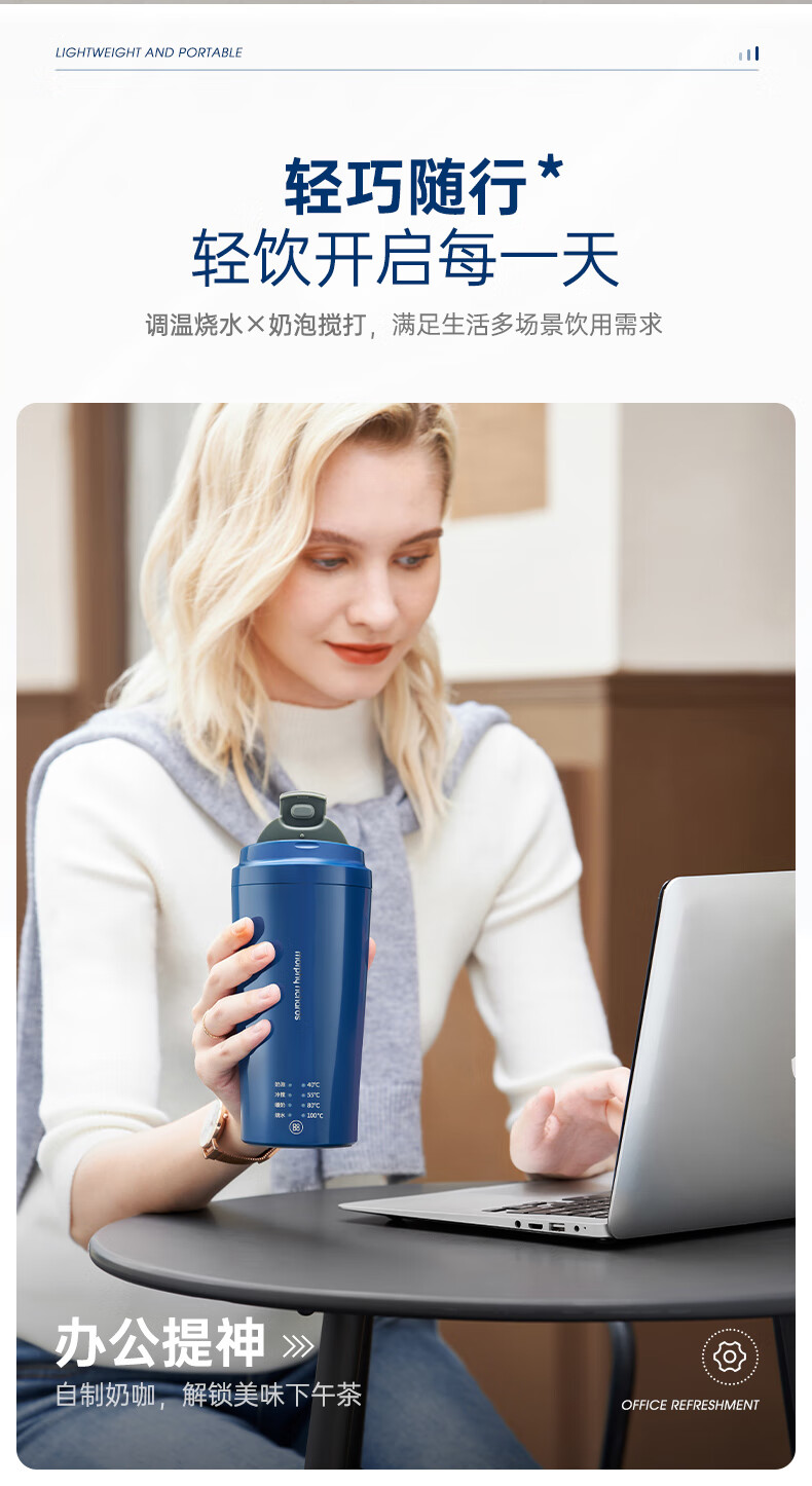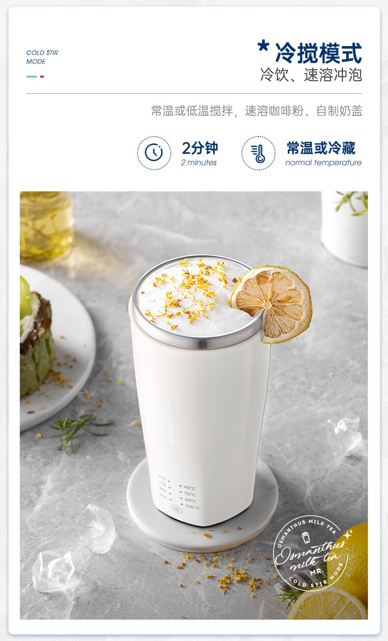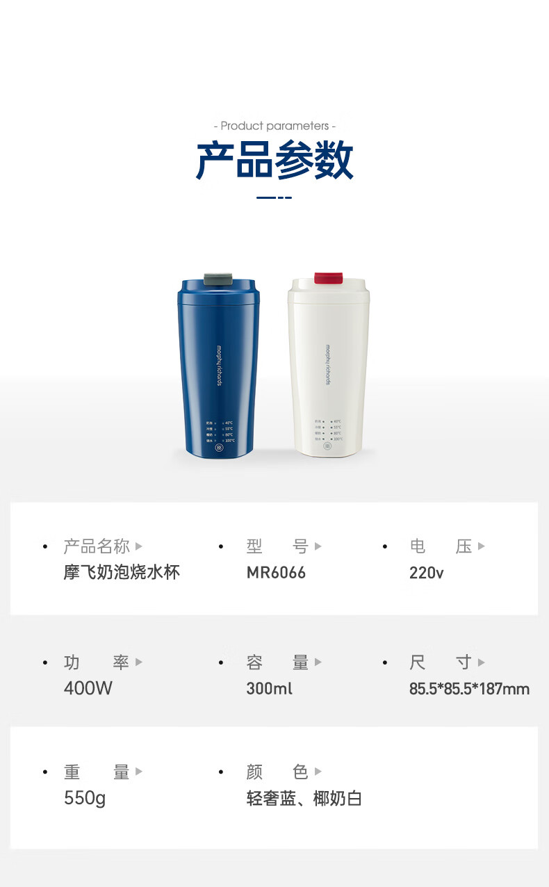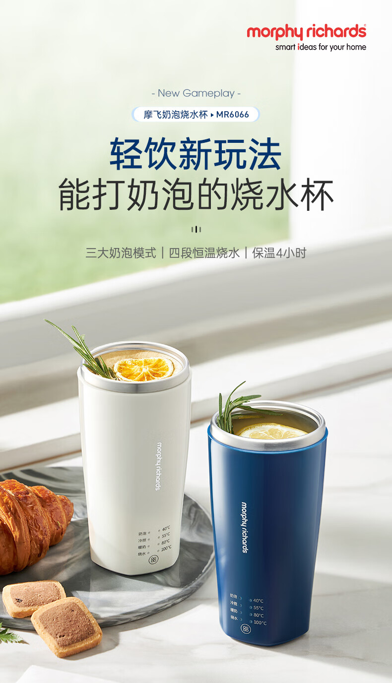 摩飞电器(Morphyrichards)【全新升级】烧水杯奶泡杯家用打奶泡器牛奶打发器电动咖啡搅拌加热便携式烧水壶MR6066 0.3L 椰奶白