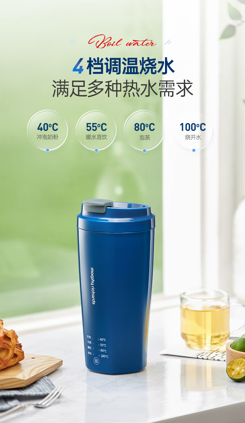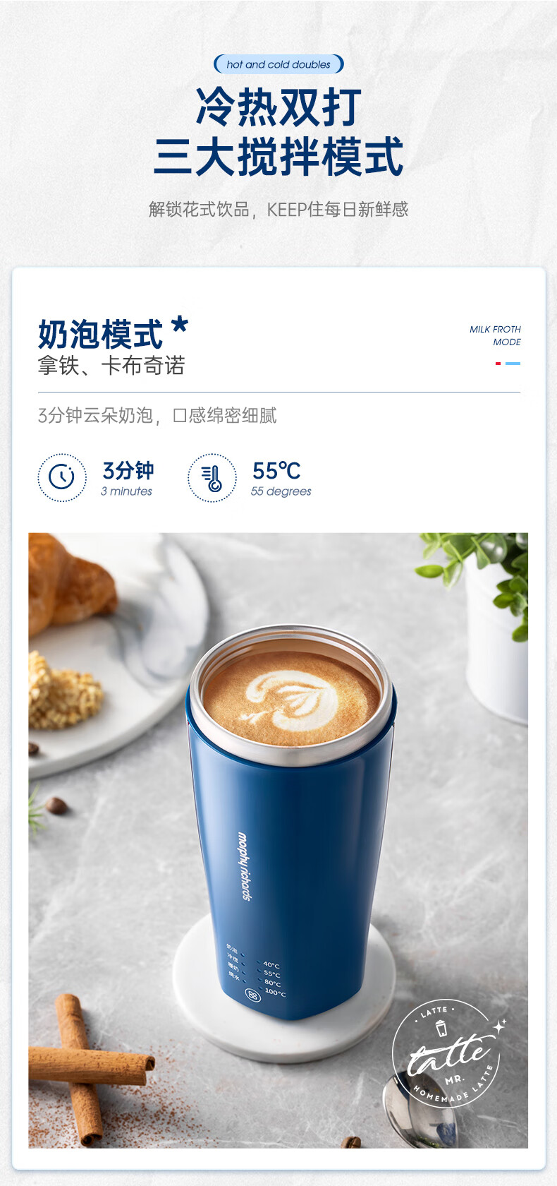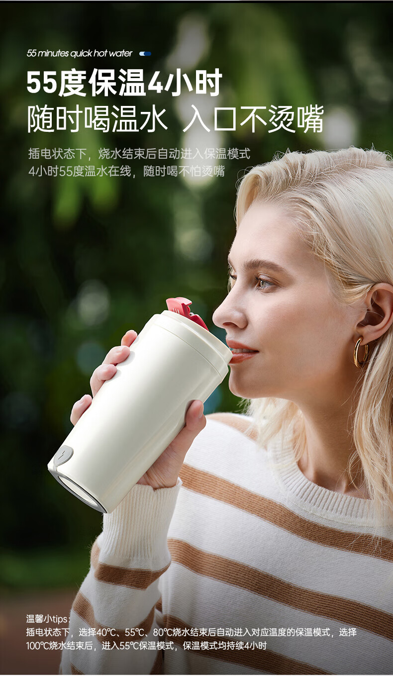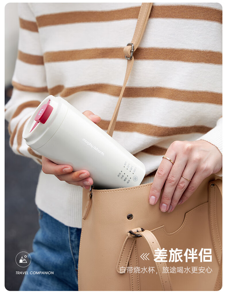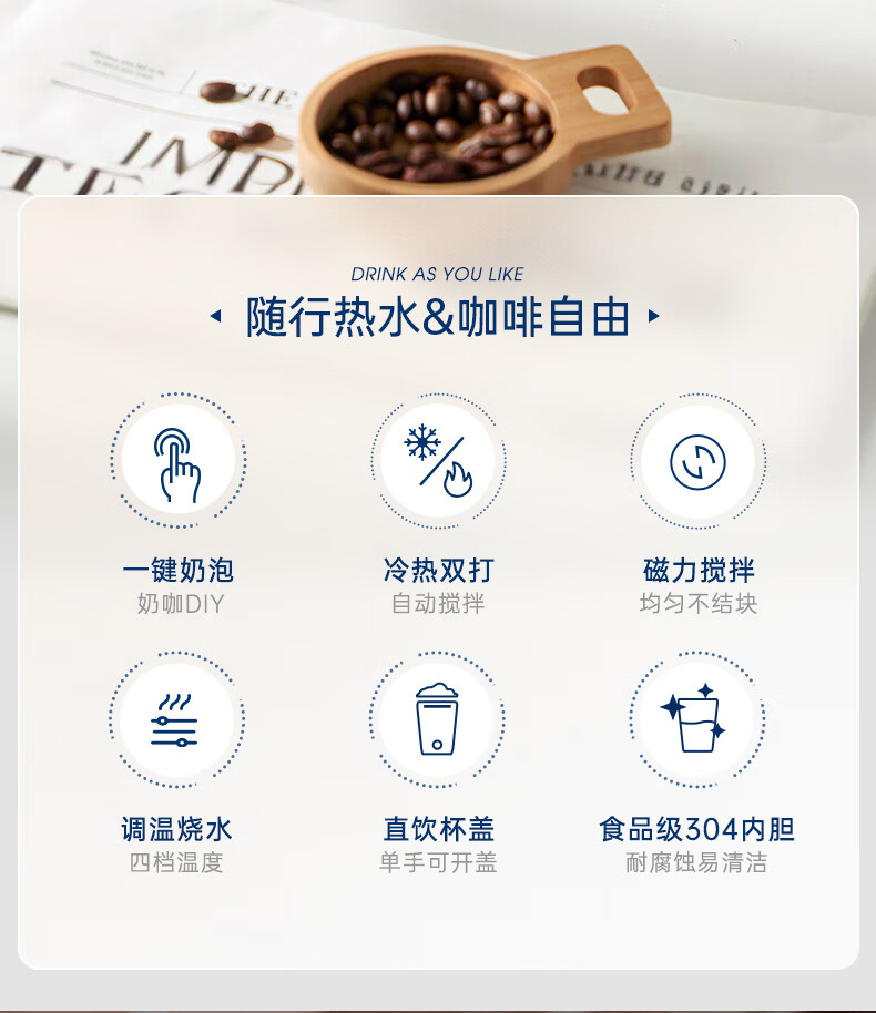 摩飞电器(Morphyrichards)【全新升级】烧水杯奶泡杯家用打奶泡器牛奶打发器电动咖啡搅拌加热便携式烧水壶MR6066 0.3L 椰奶白