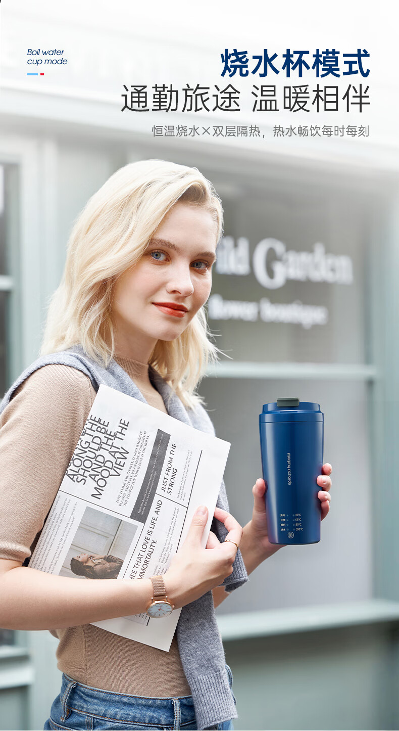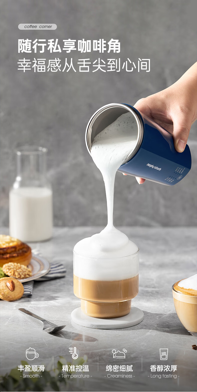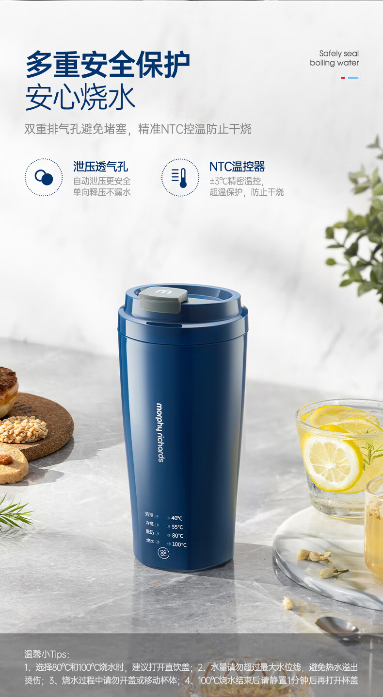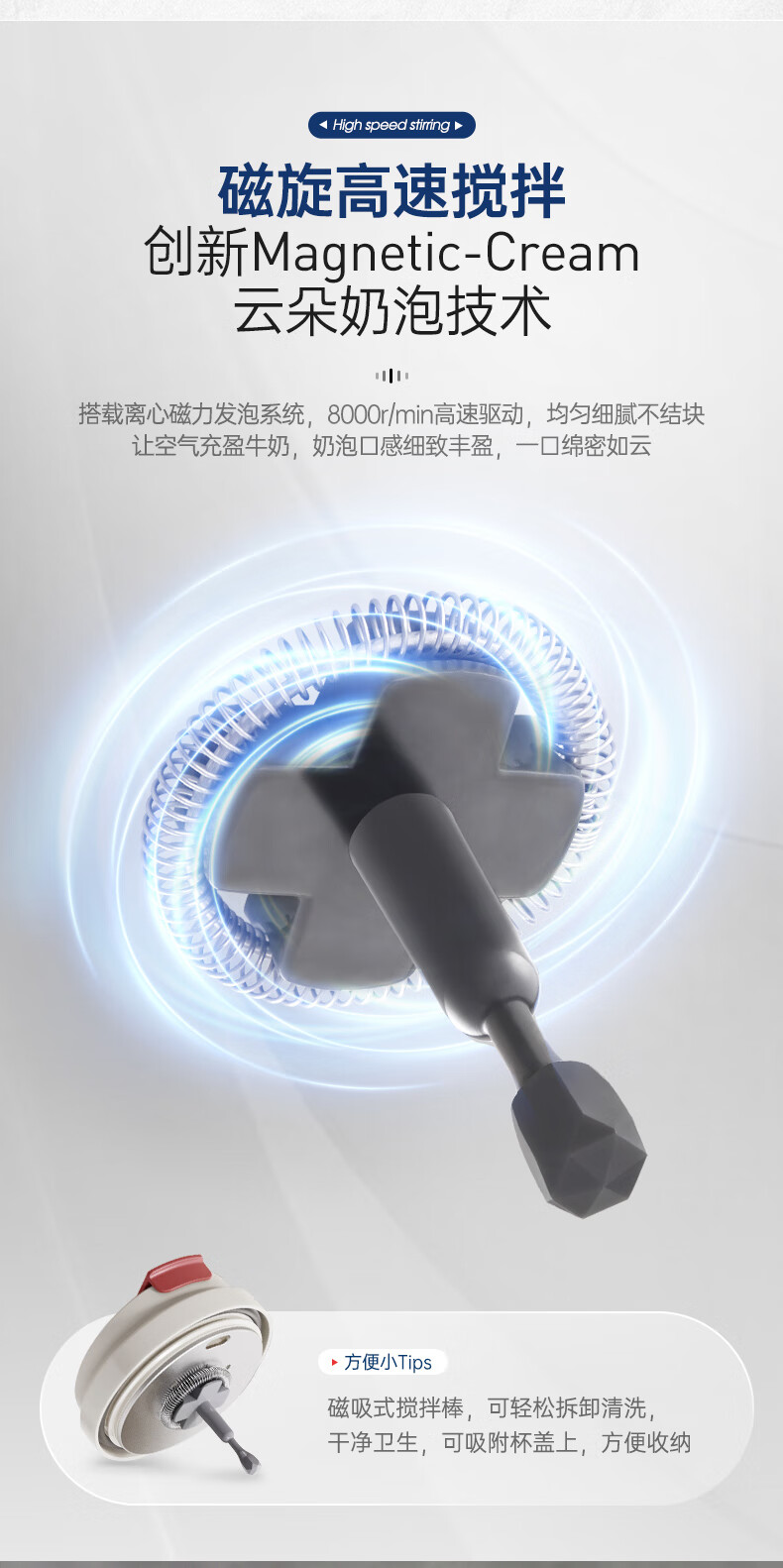 摩飞电器(Morphyrichards)【全新升级】烧水杯奶泡杯家用打奶泡器牛奶打发器电动咖啡搅拌加热便携式烧水壶MR6066 0.3L 椰奶白