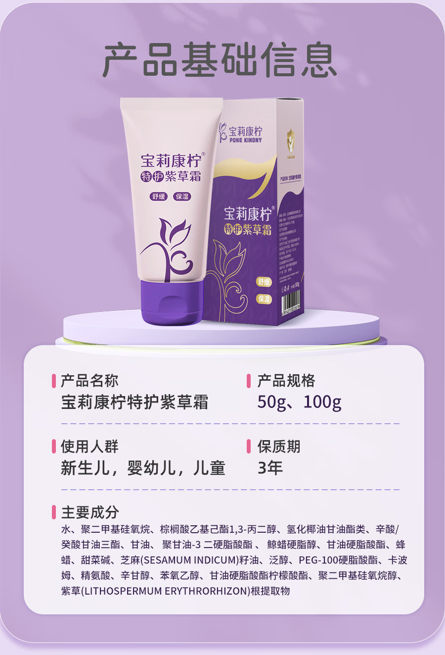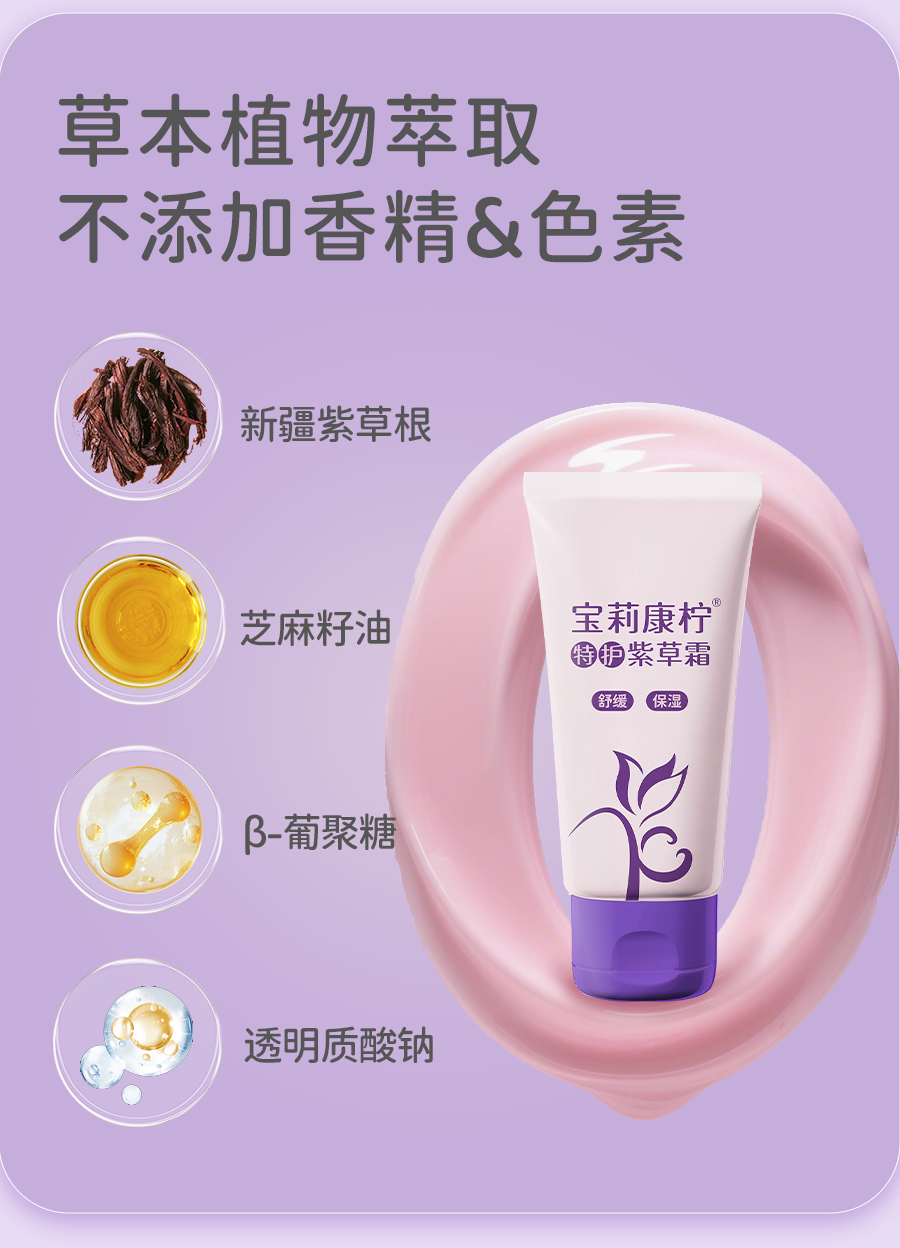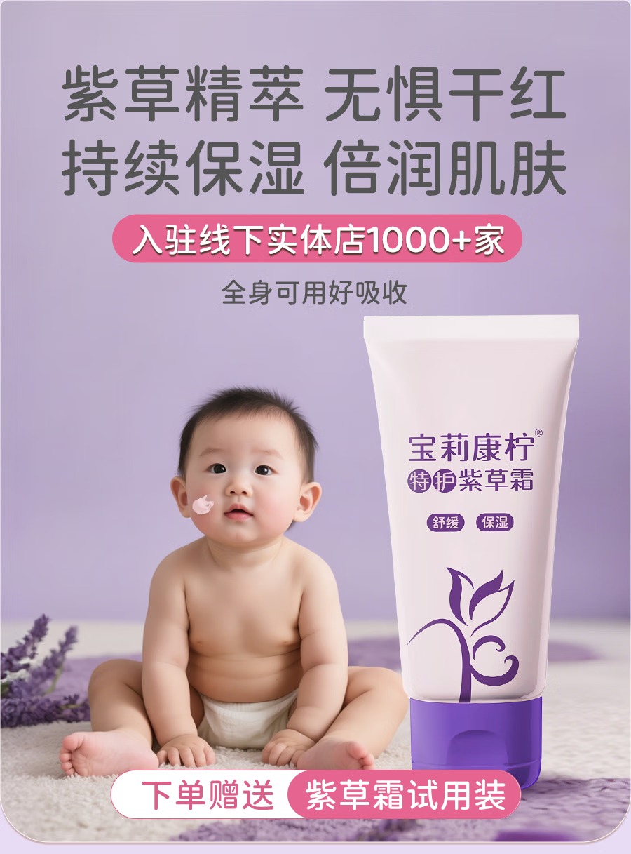 宝莉康柠特护紫草霜婴儿保湿润肤补水霜舒缓泛红面霜 【干痒应急】特护紫草霜50g