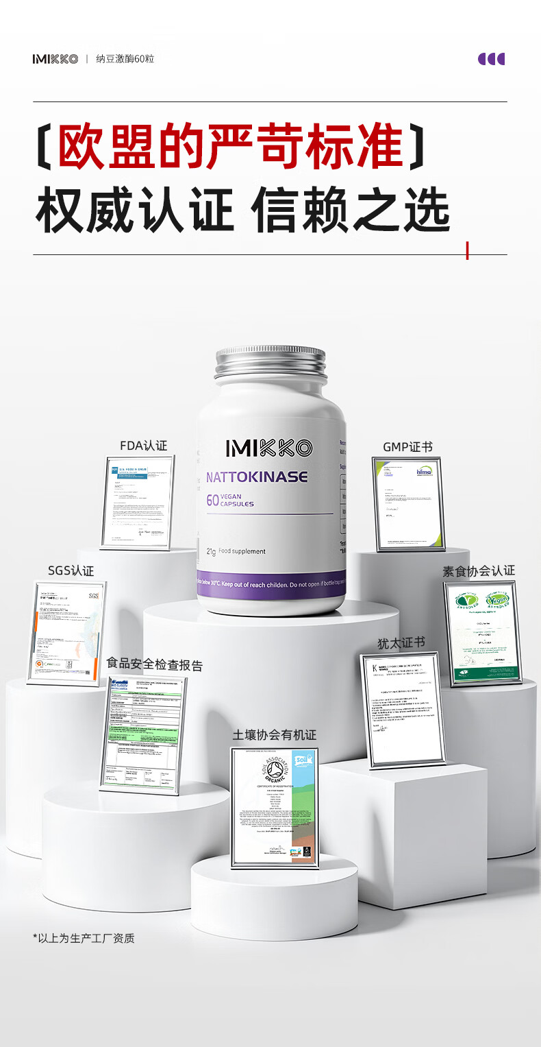 iMikko进口纳豆激酶软化疏通心脑血管清道夫清理血液垃圾不含血管通的药 纳豆激酶血管堵塞疏通(送养肝泡饮) 60粒*1瓶