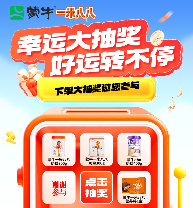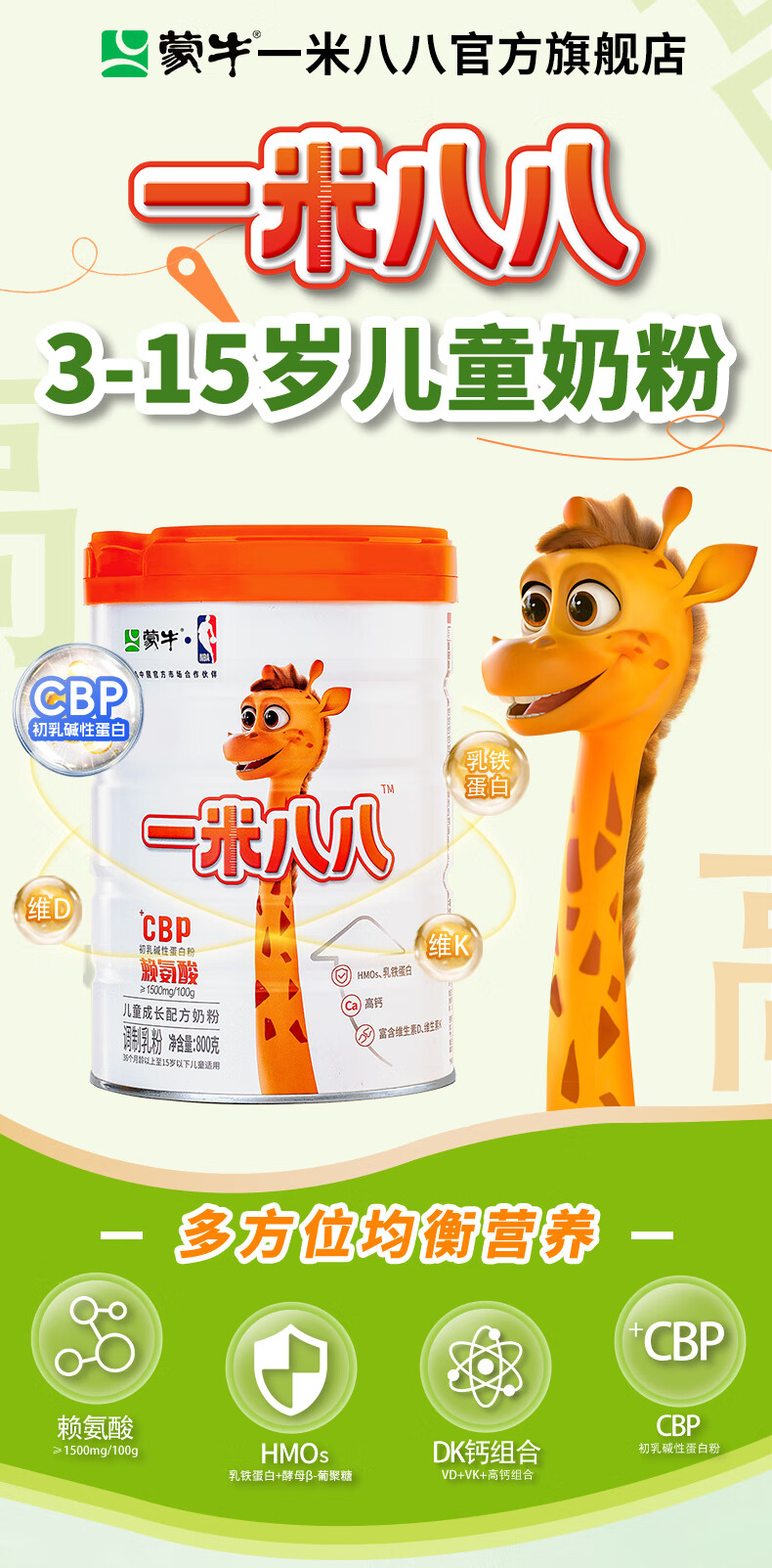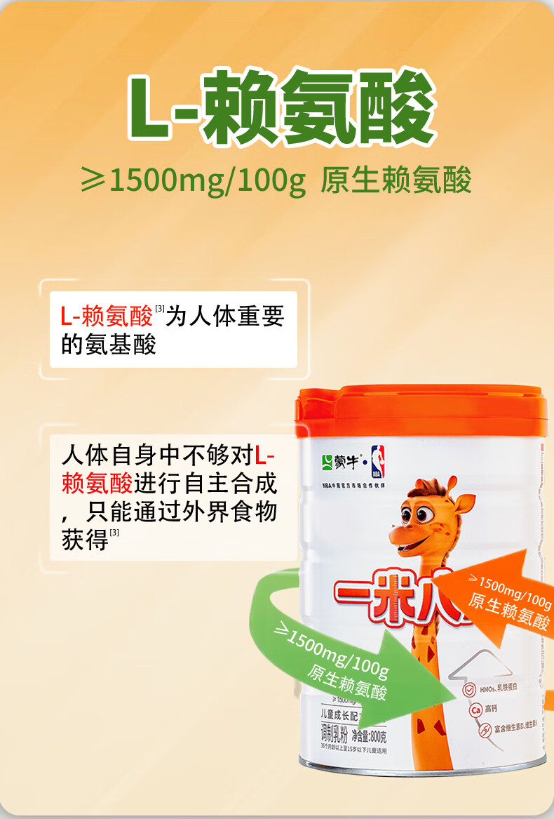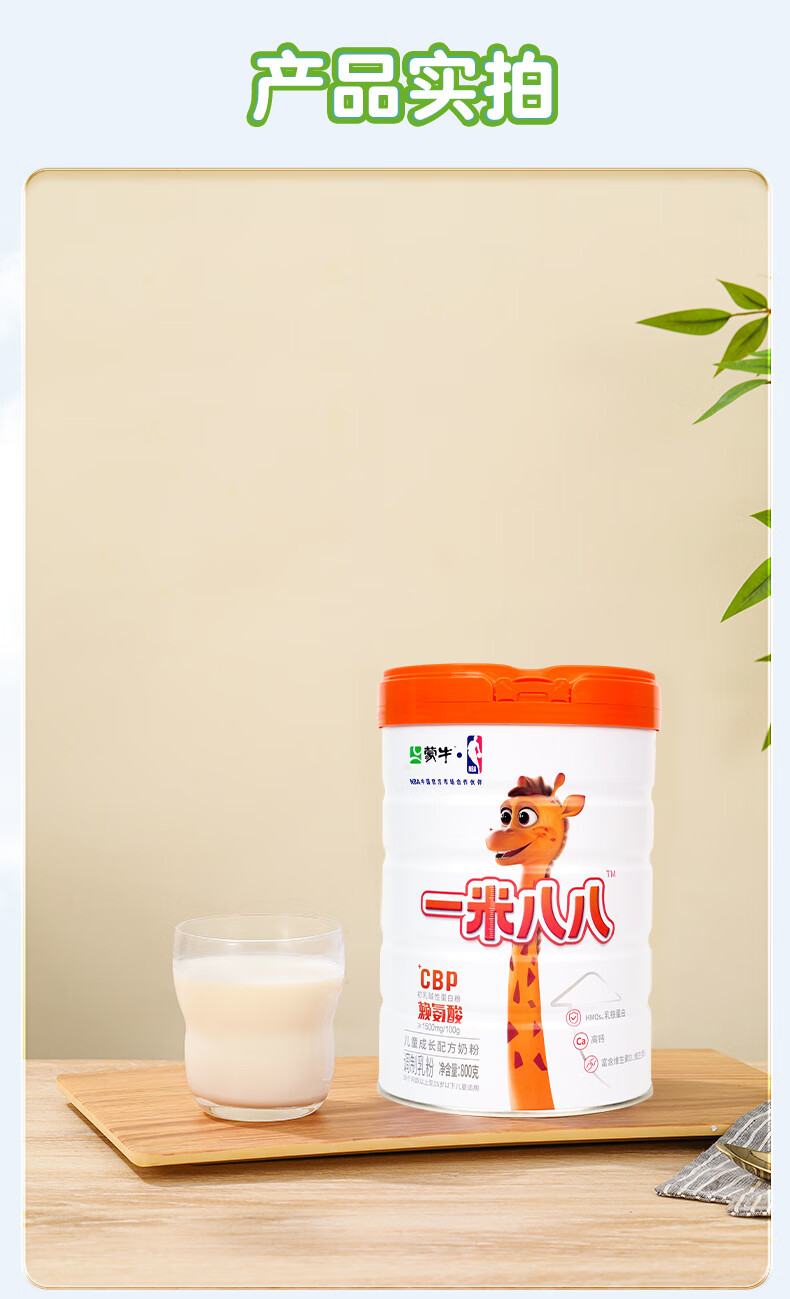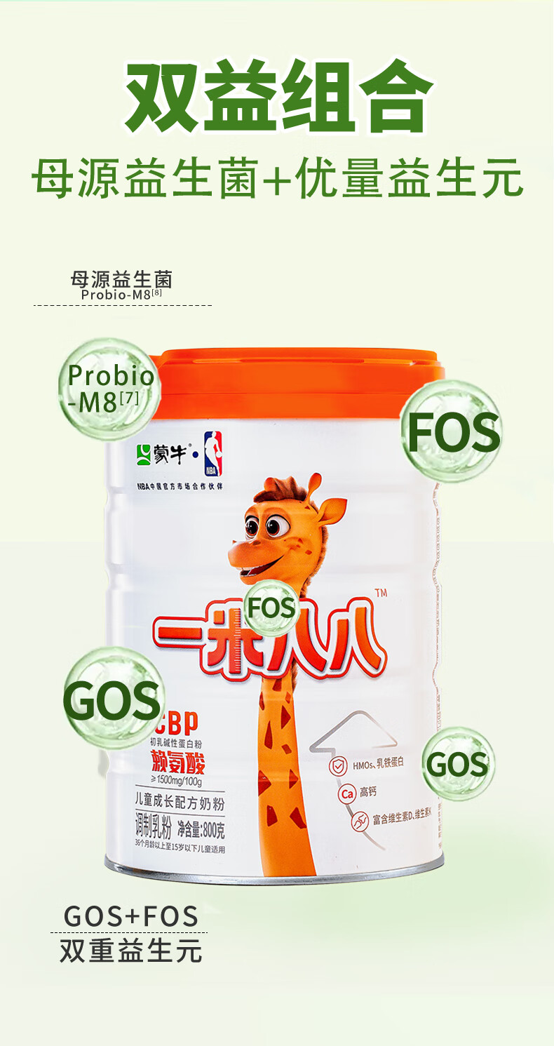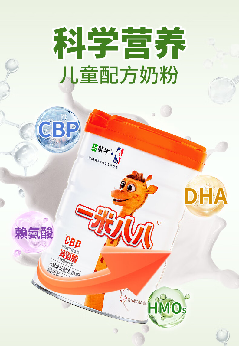 蒙牛一米八八儿童高钙奶粉 3-15岁儿童学生青少年奶粉CBP赖氨酸组合装 1罐+2袋