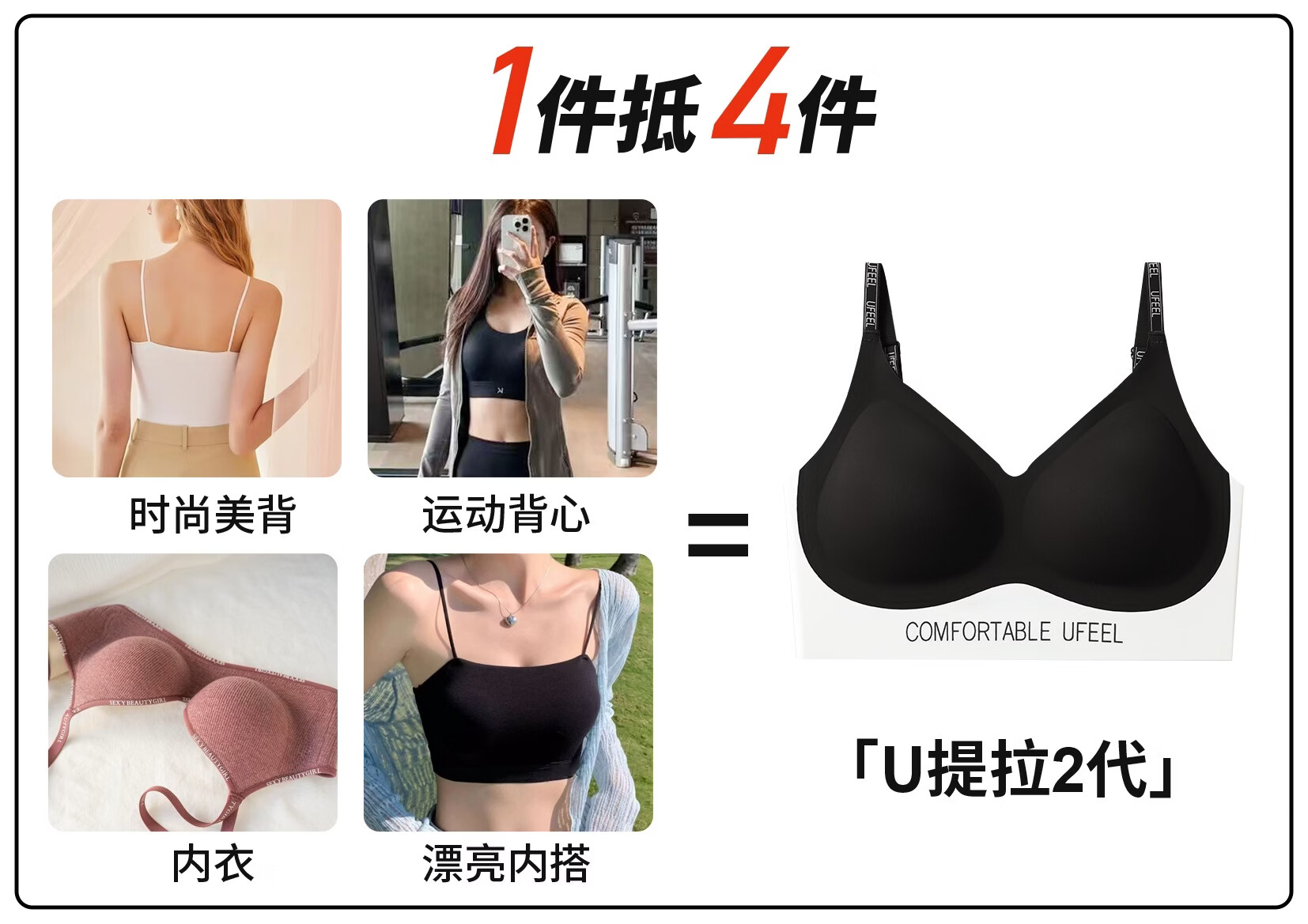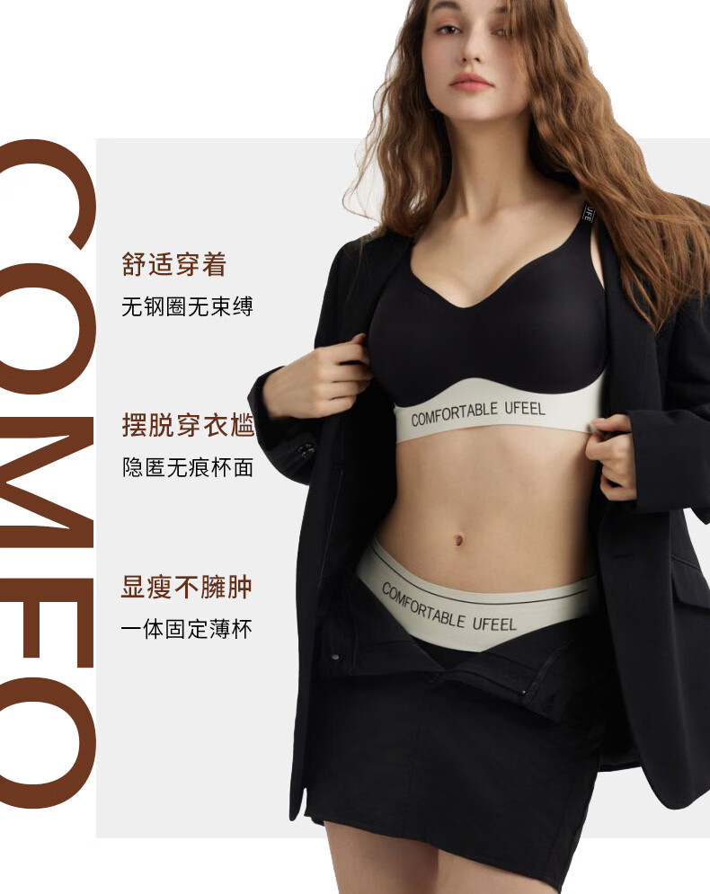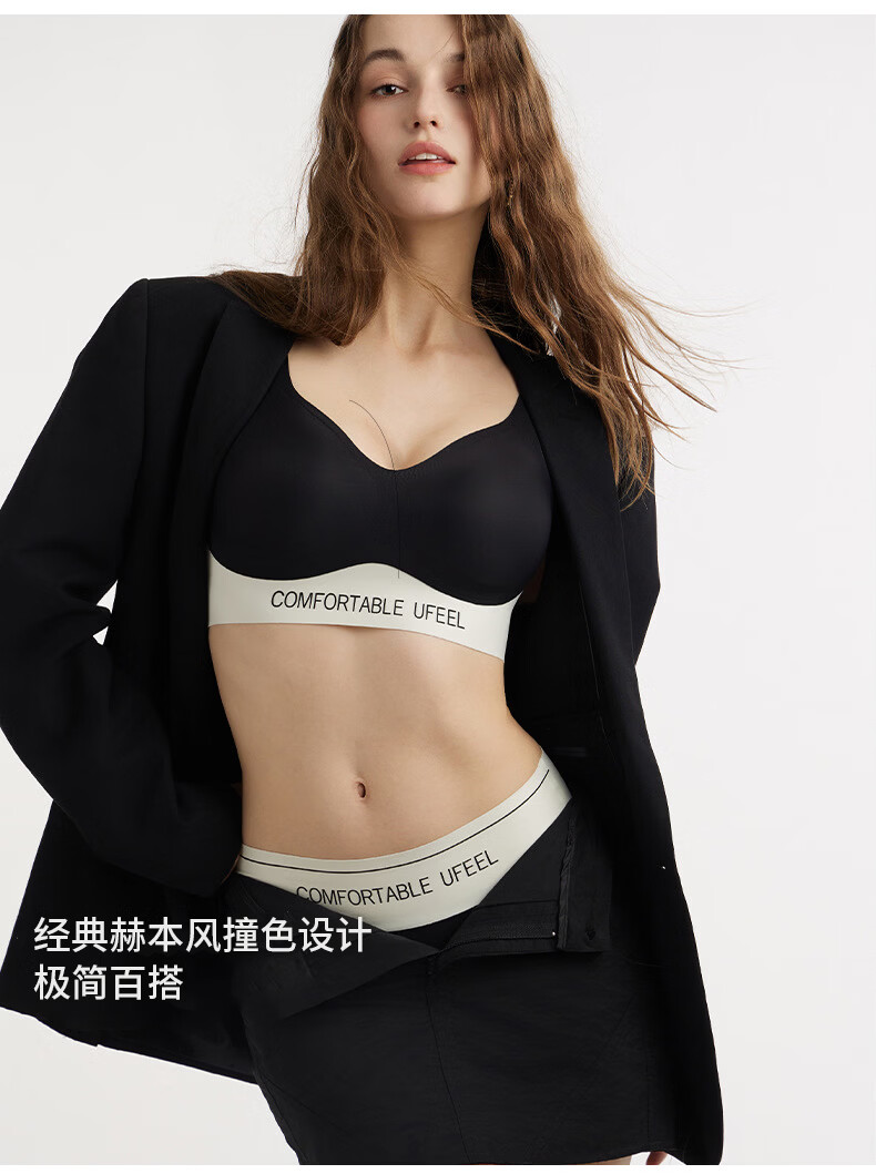 UFEEL【单件清仓1】内衣女士无痕透气运动内衣显瘦无钢圈文胸8668 黑白色颜色随机 单件 M 80-100斤