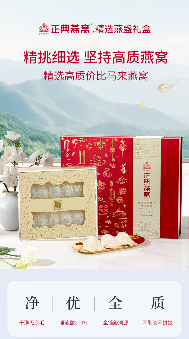正典燕窝精选燕窝礼盒50g干燕窝干盏礼盒马来进口溯源燕盏【新年礼物】 精选燕窝礼盒50g