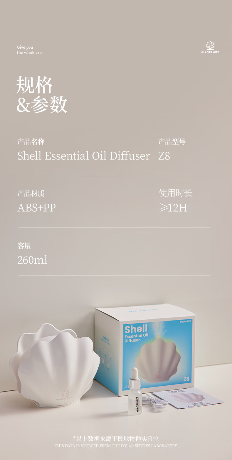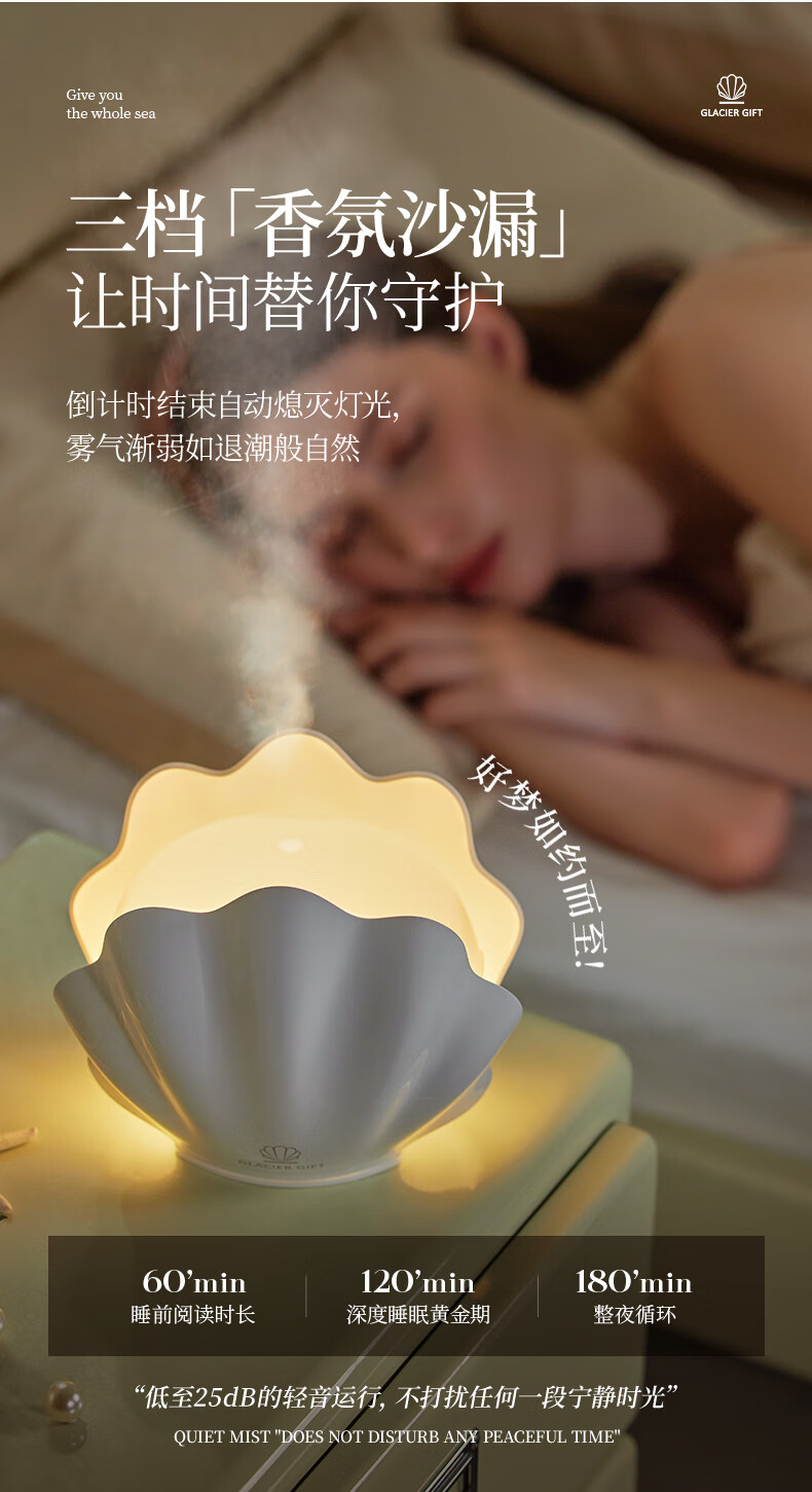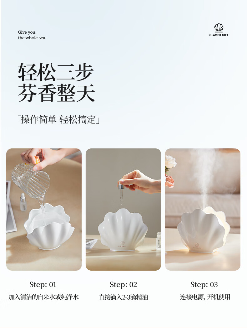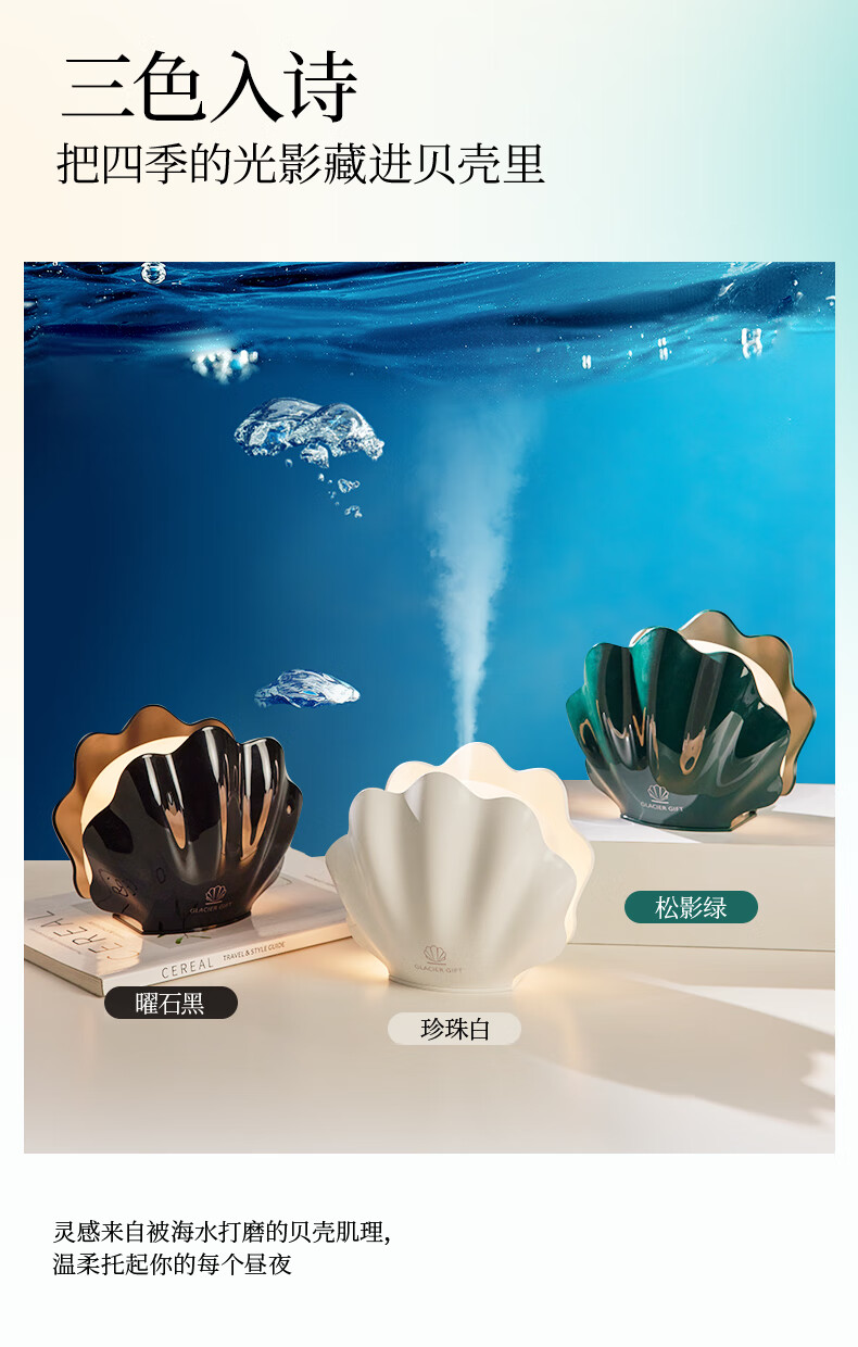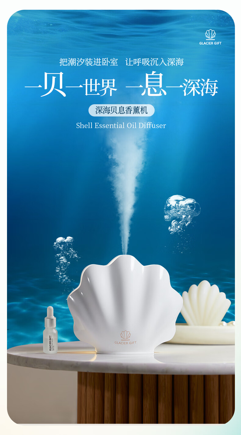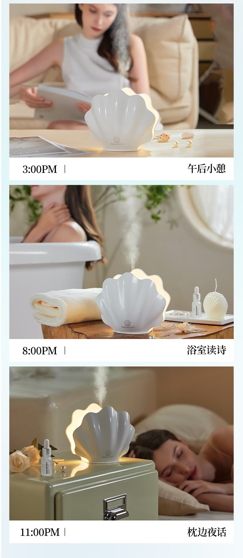 AILUKI【法国】贝壳自动喷香香薰机精油专用香氛机室内净化空气家用扩香 珍珠白+10ml精油 日落-浪漫礼盒包装