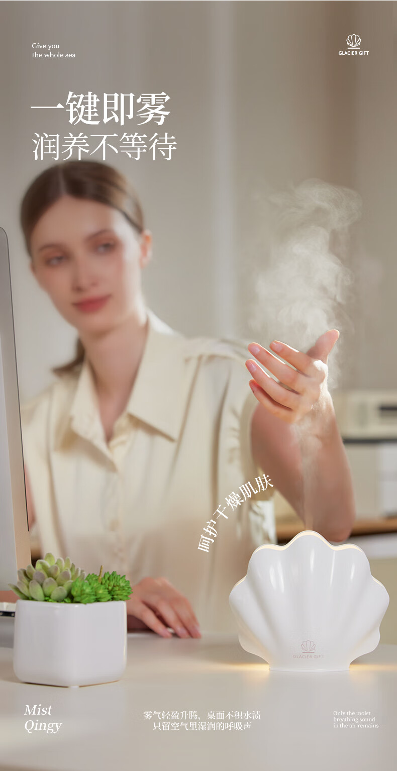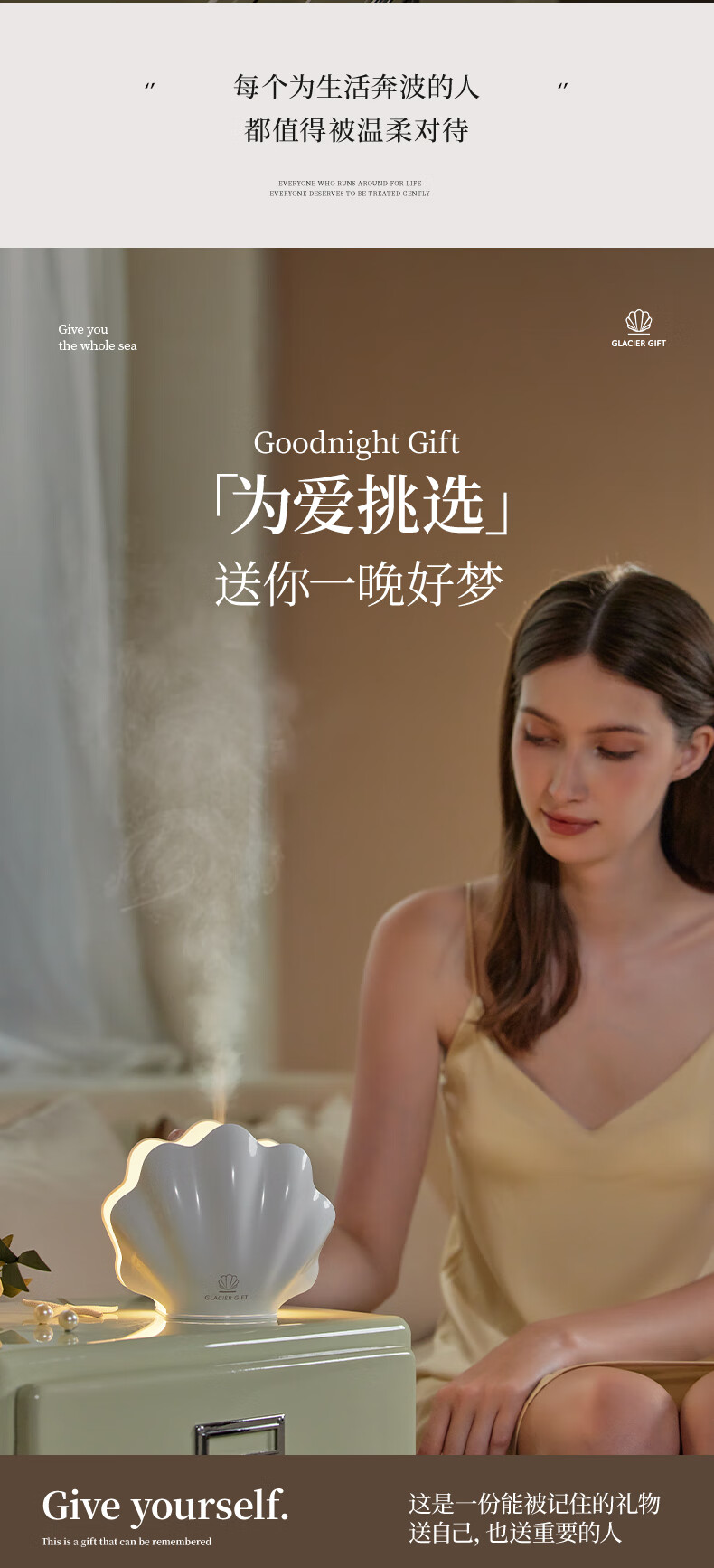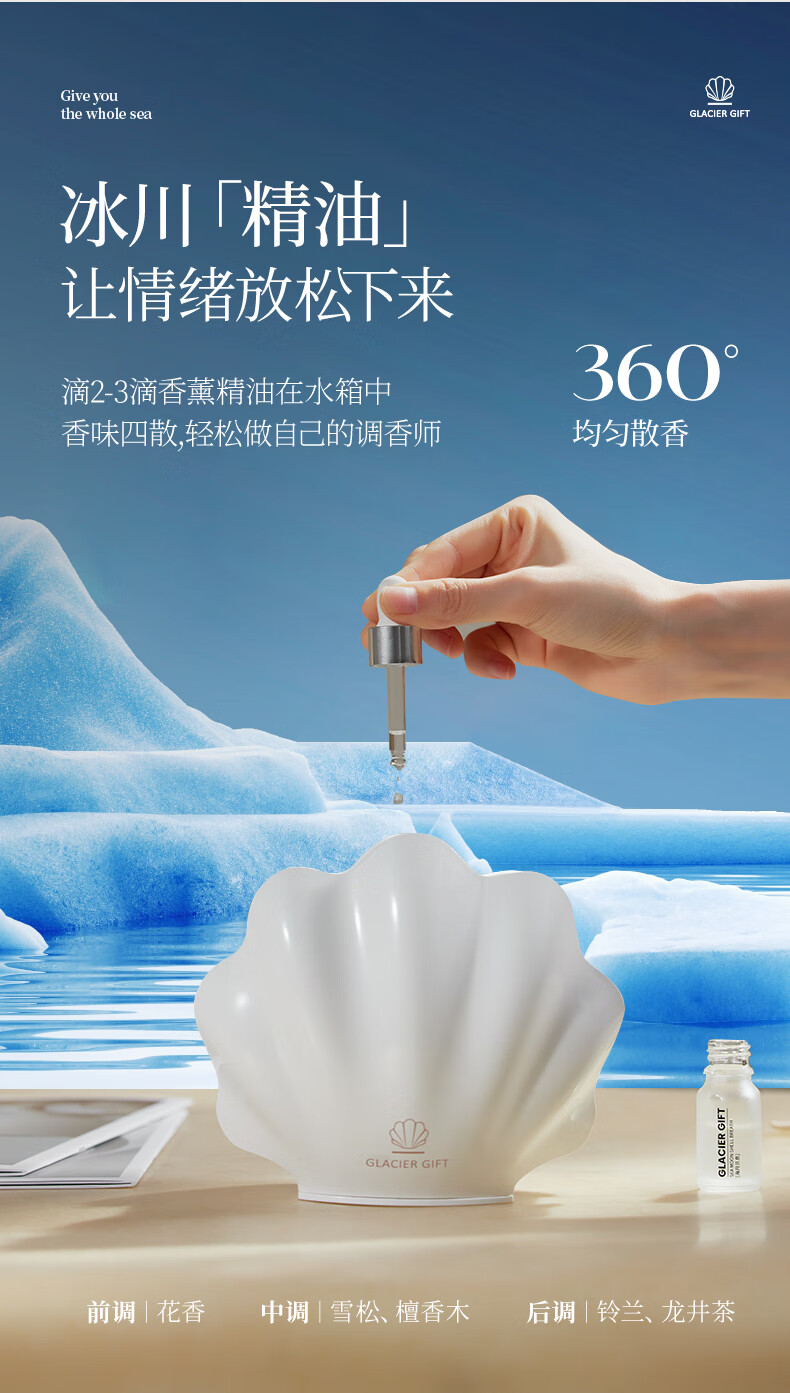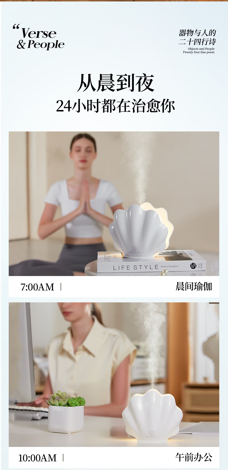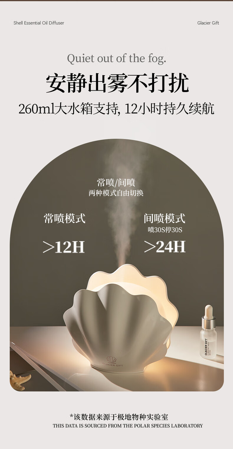 AILUKI【法国】贝壳自动喷香香薰机精油专用香氛机室内净化空气家用扩香 珍珠白+10ml精油 日落-浪漫礼盒包装