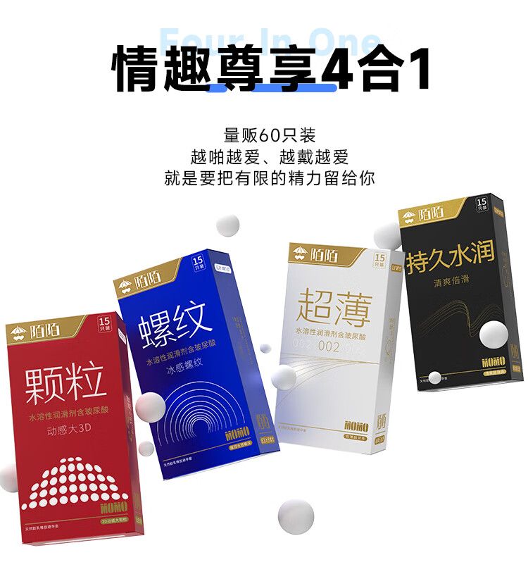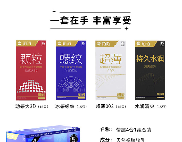 陌陌 情趣避孕套超薄002颗粒螺纹持久男用玻尿酸安全套套计生用品 持久水润 60只