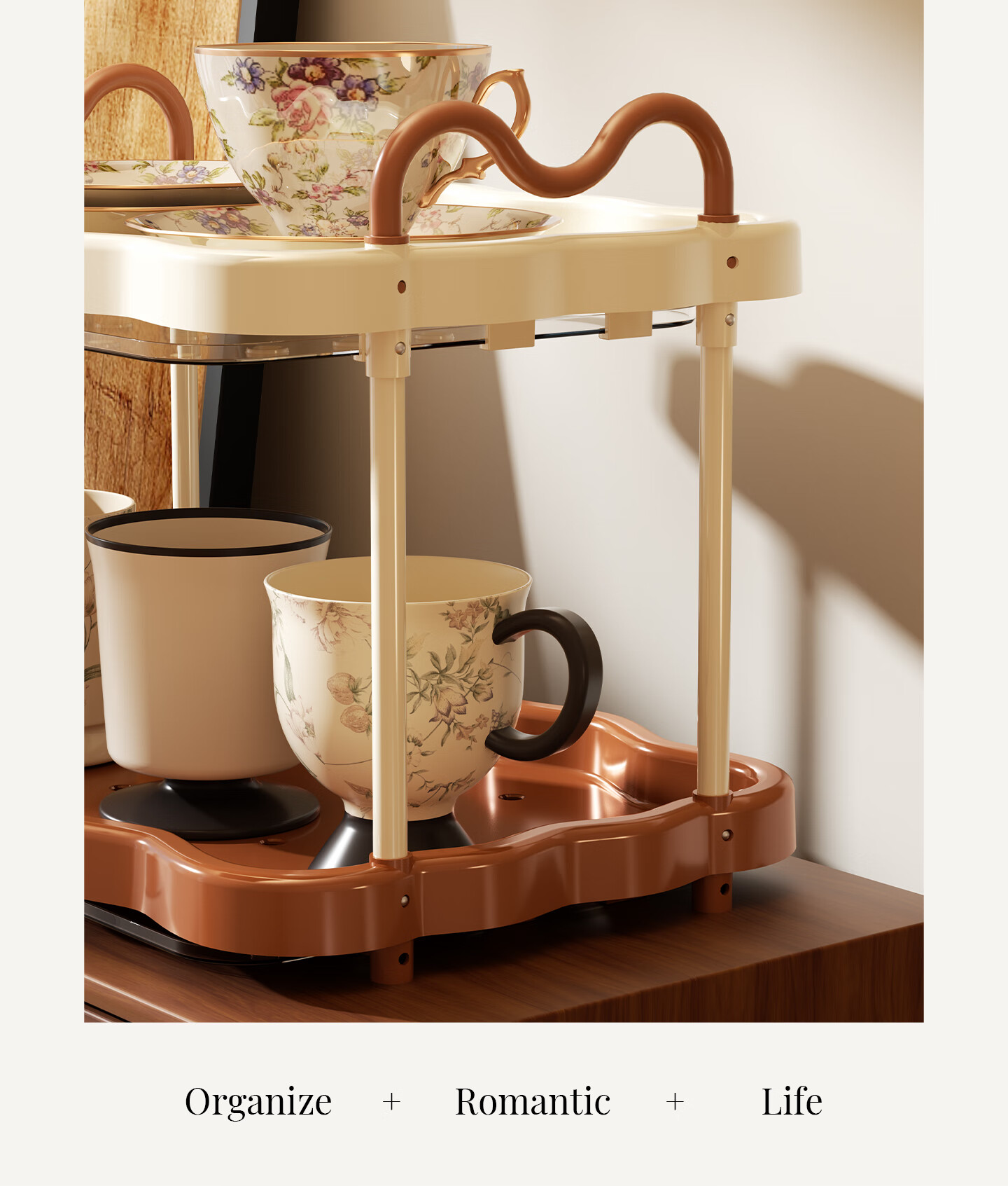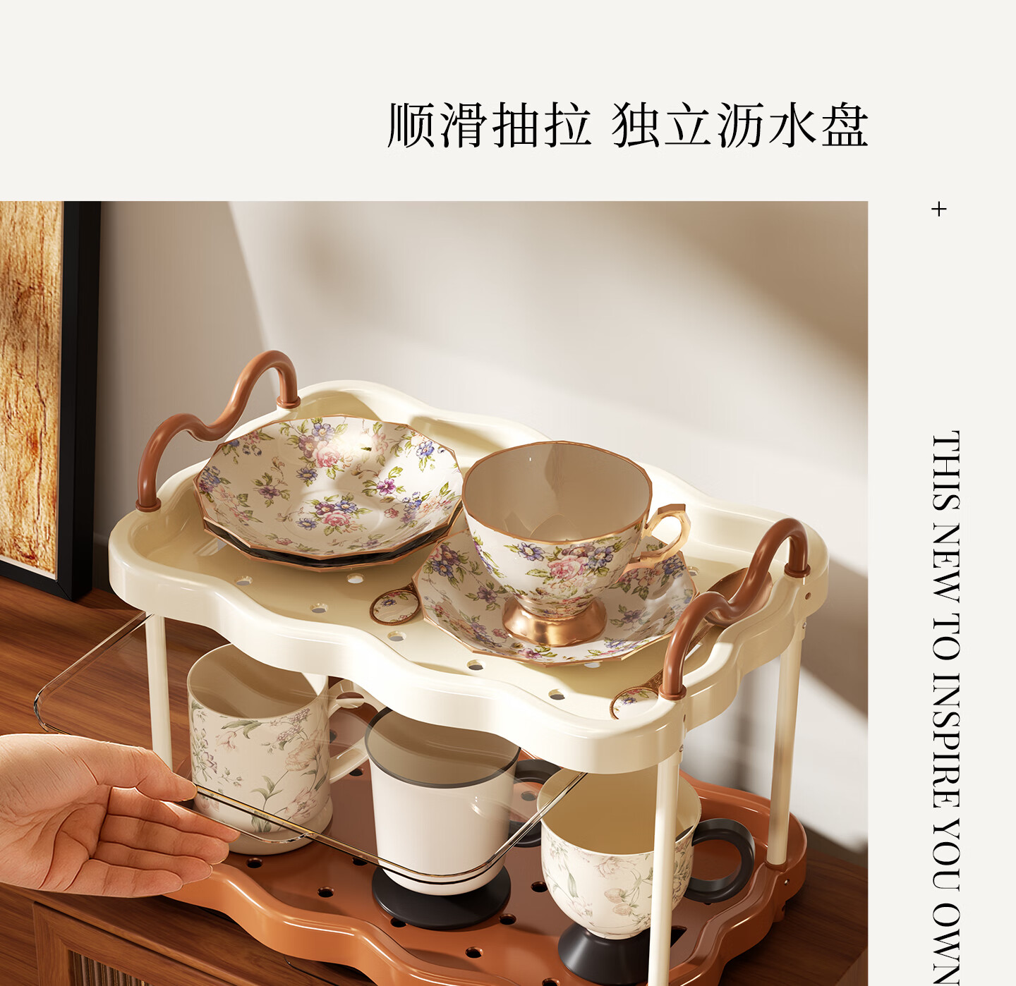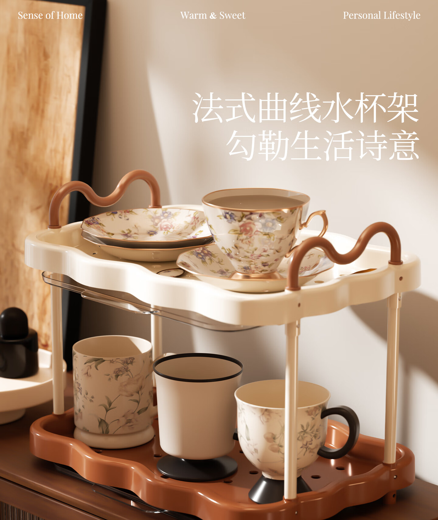 聚可爱杯子收纳置物架桌面放咖啡杯碟沥水分层托盘架复古大容量水杯架子 二层-奶咖色