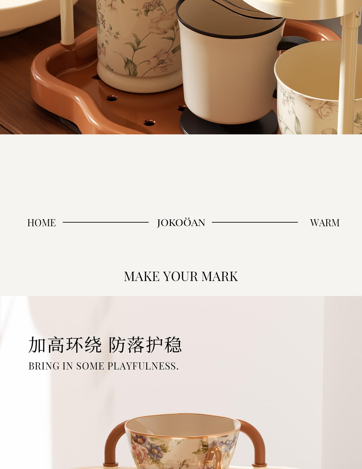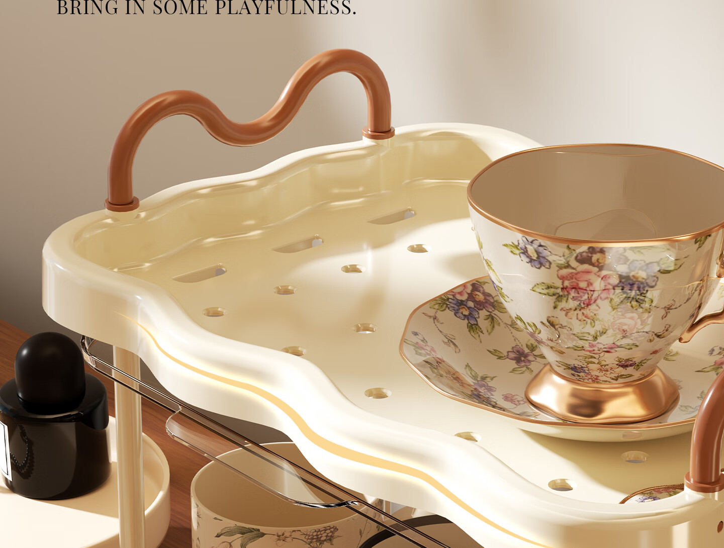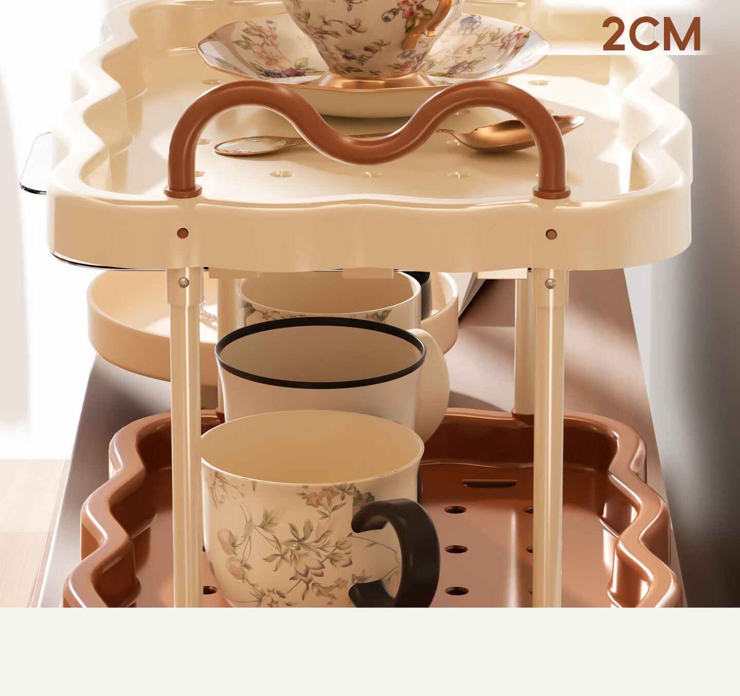 聚可爱杯子收纳置物架桌面放咖啡杯碟沥水分层托盘架复古大容量水杯架子 二层-奶咖色