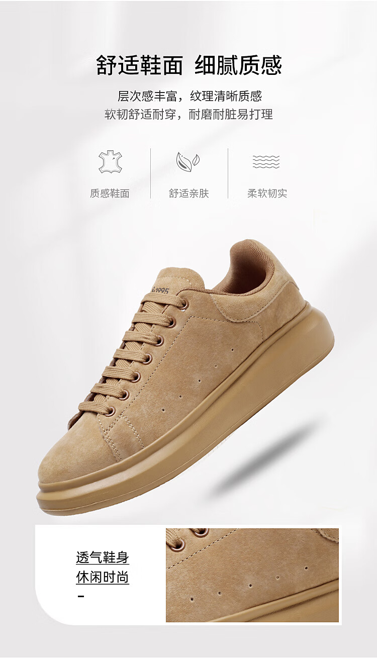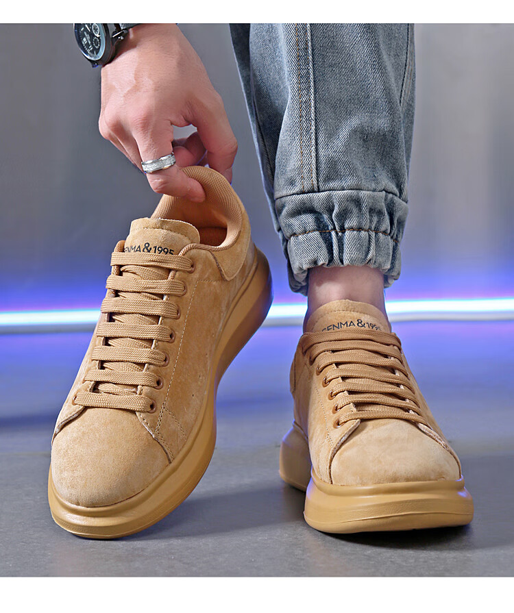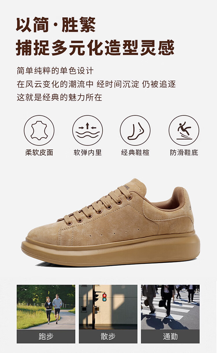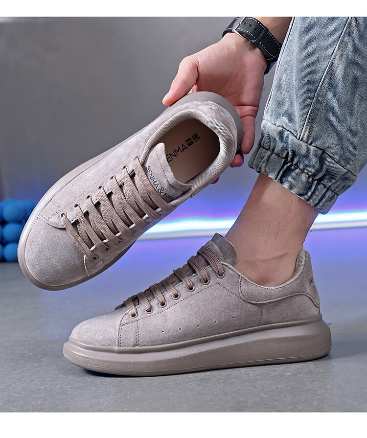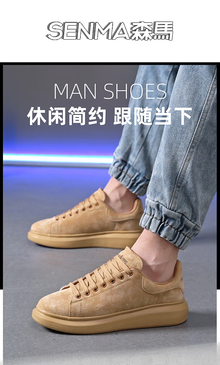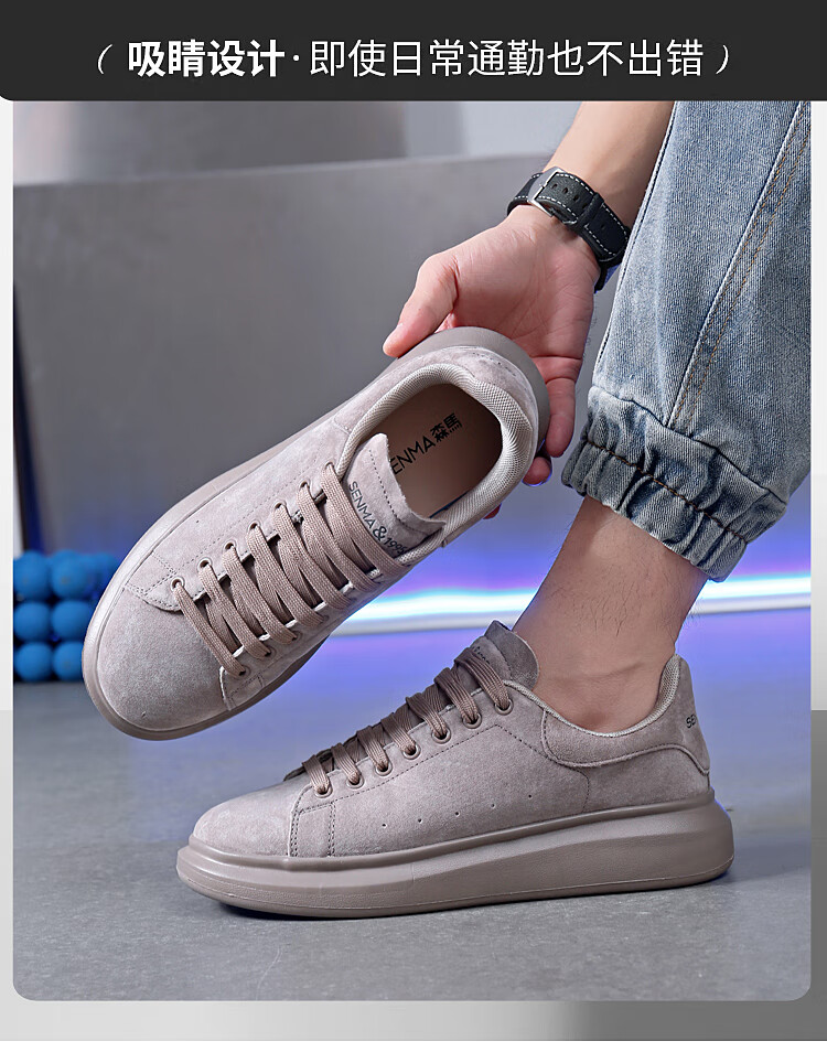 森馬(senma)板鞋休闲鞋男女款情侣款滑板鞋男皮面休闲鞋厚底运动鞋百搭男潮鞋 磨砂金 35