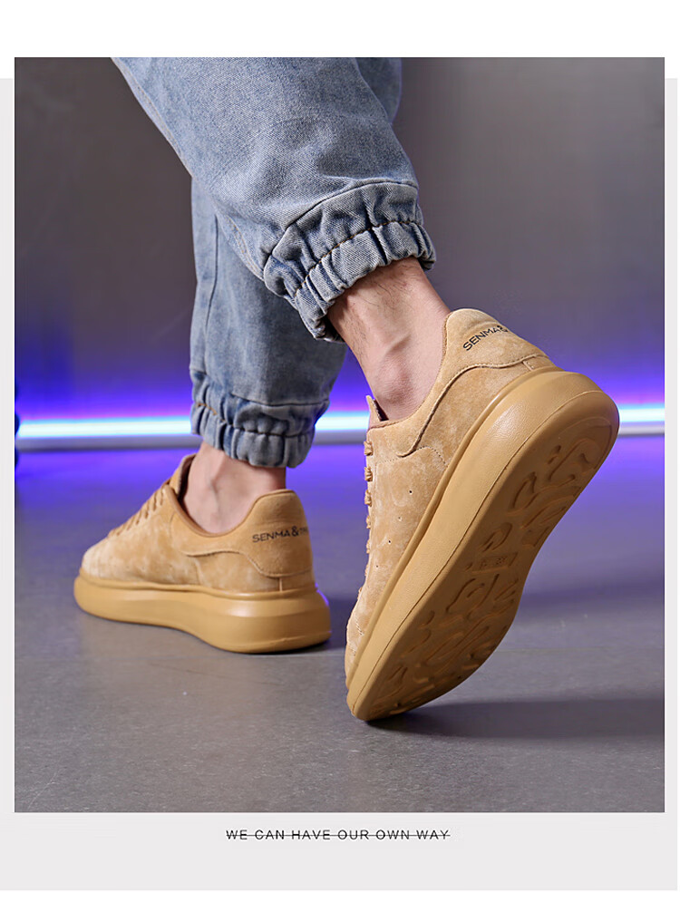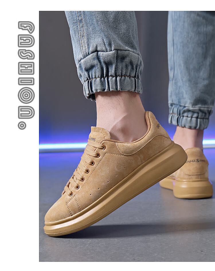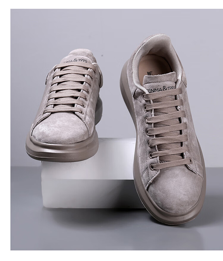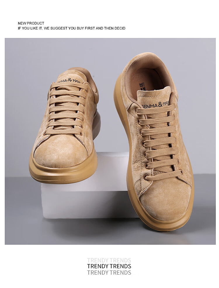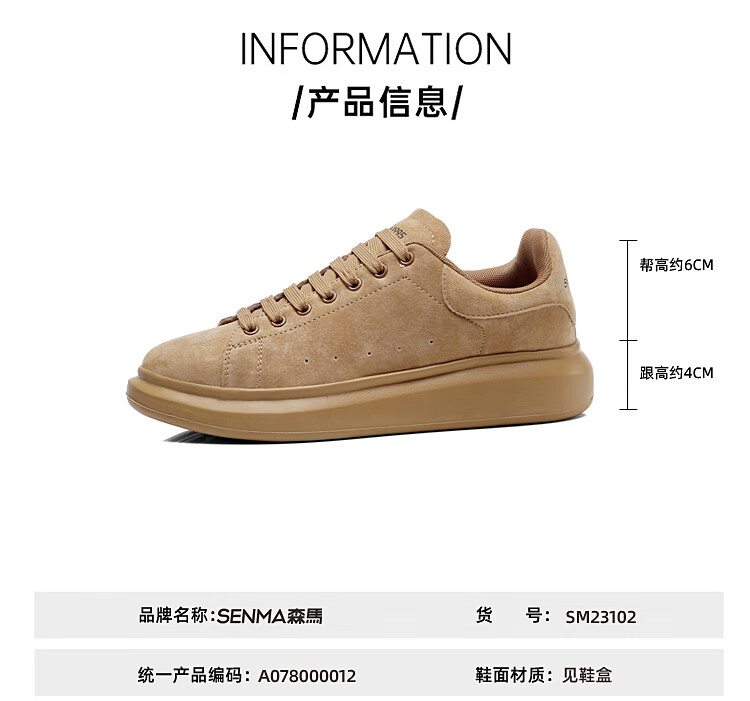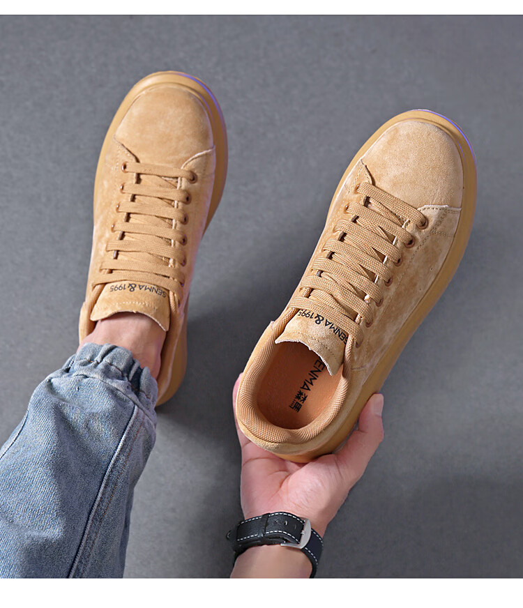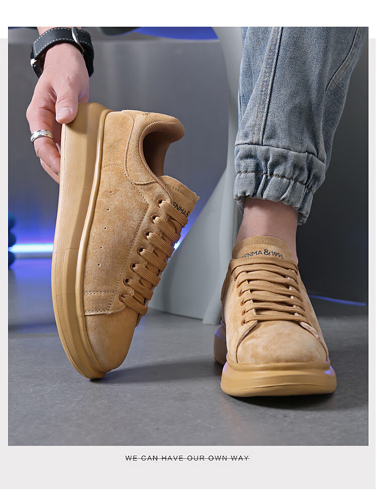 森馬(senma)板鞋休闲鞋男女款情侣款滑板鞋男皮面休闲鞋厚底运动鞋百搭男潮鞋 磨砂金 35