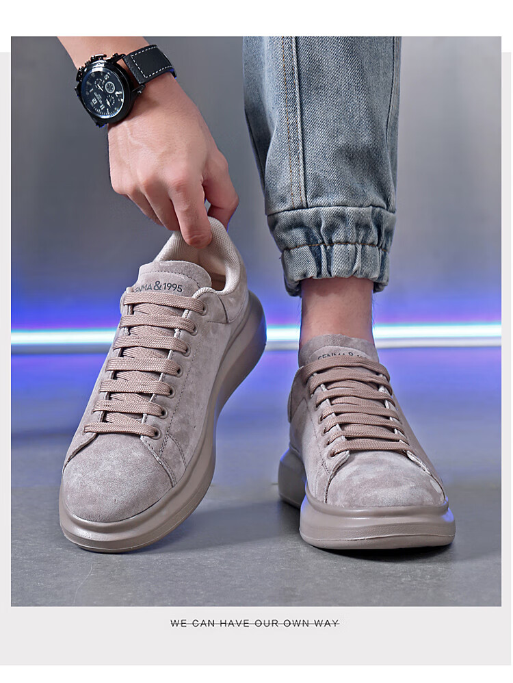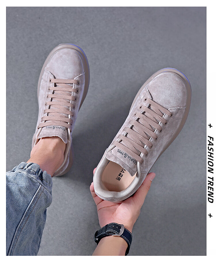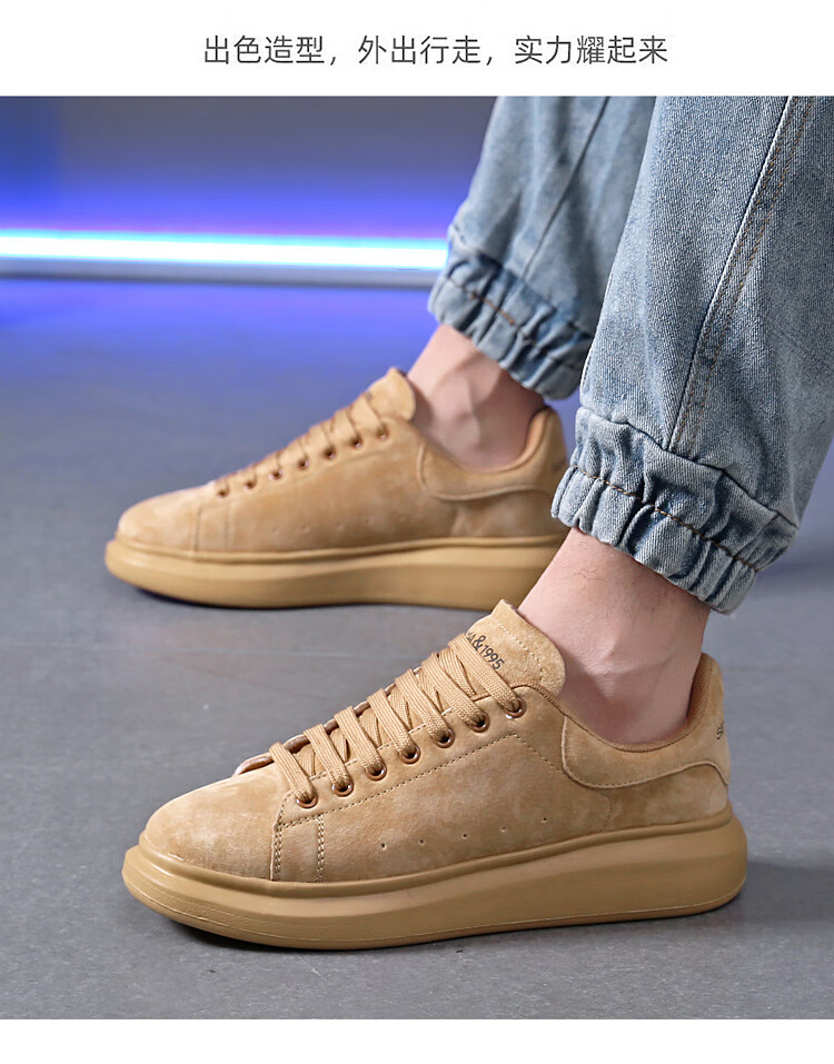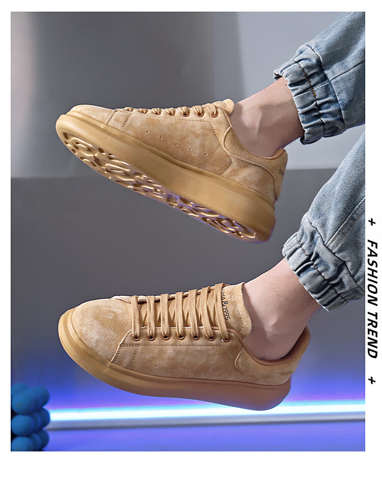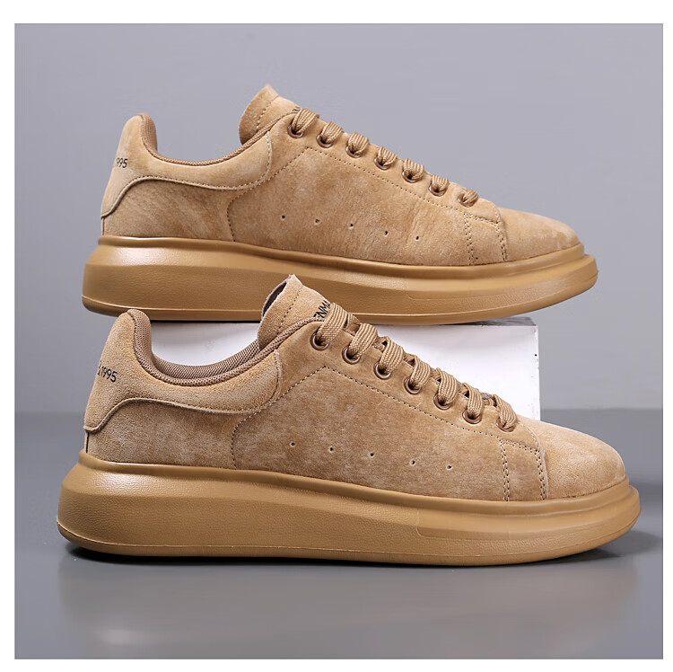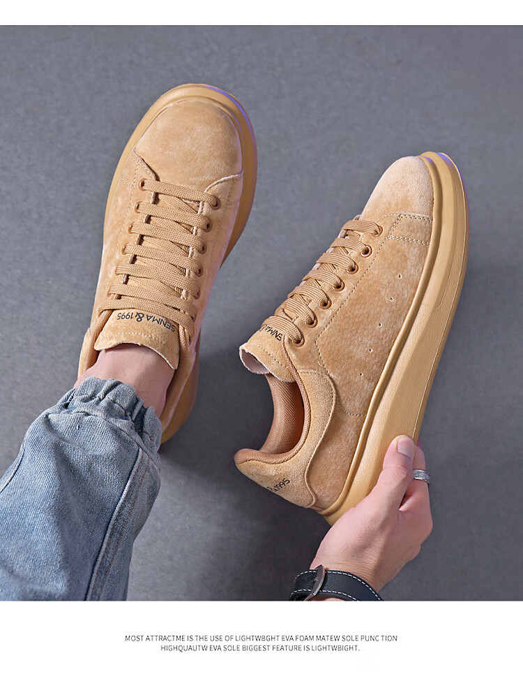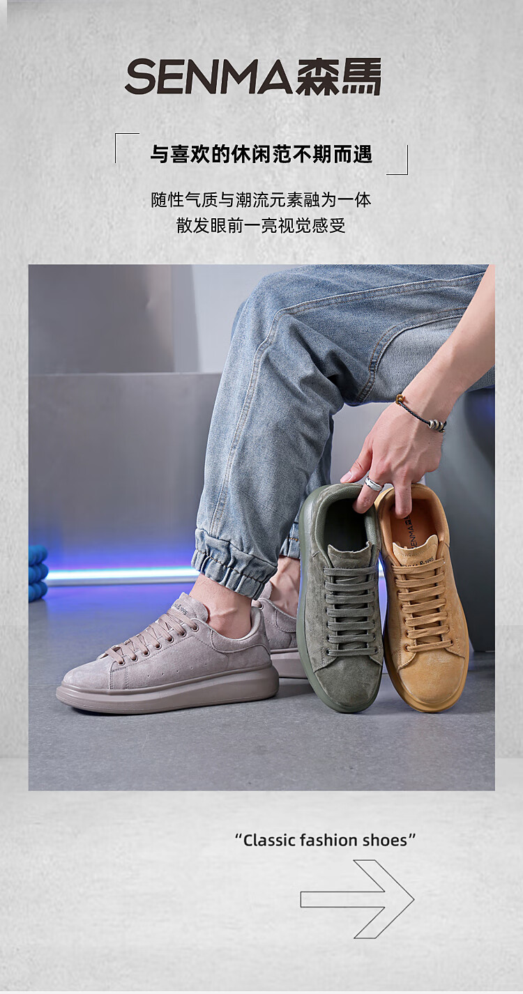 森馬(senma)板鞋休闲鞋男女款情侣款滑板鞋男皮面休闲鞋厚底运动鞋百搭男潮鞋 磨砂金 35
