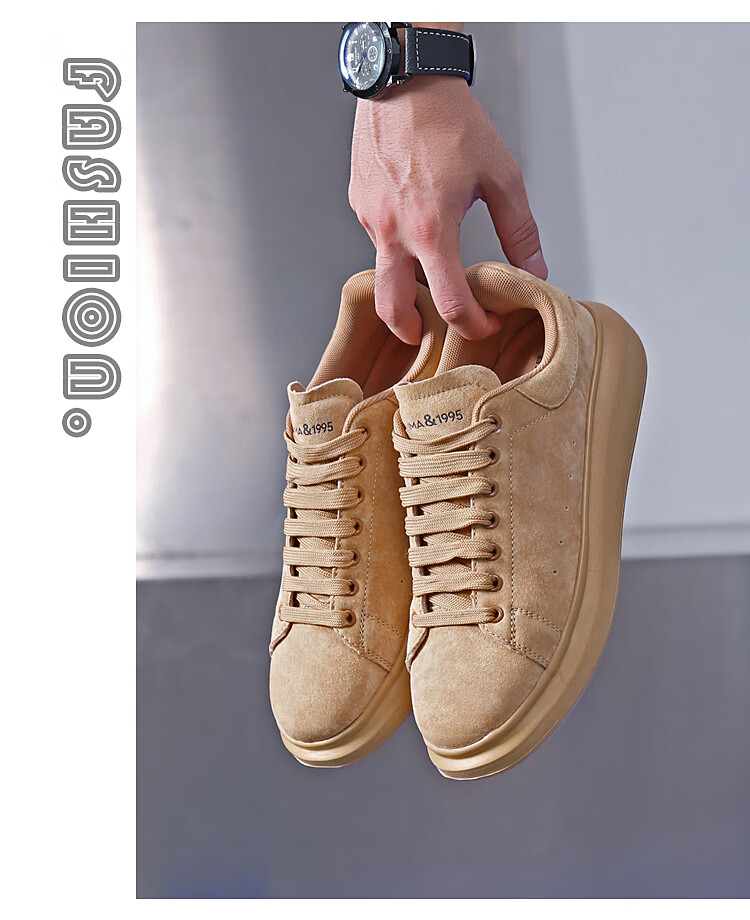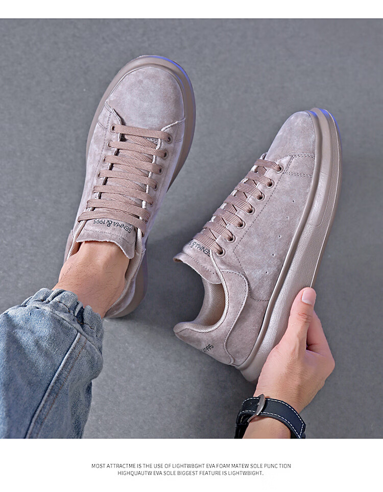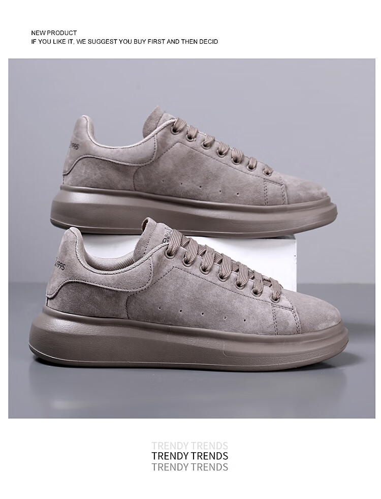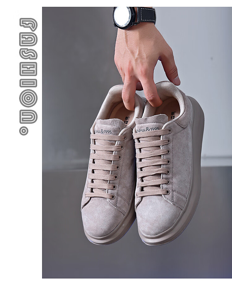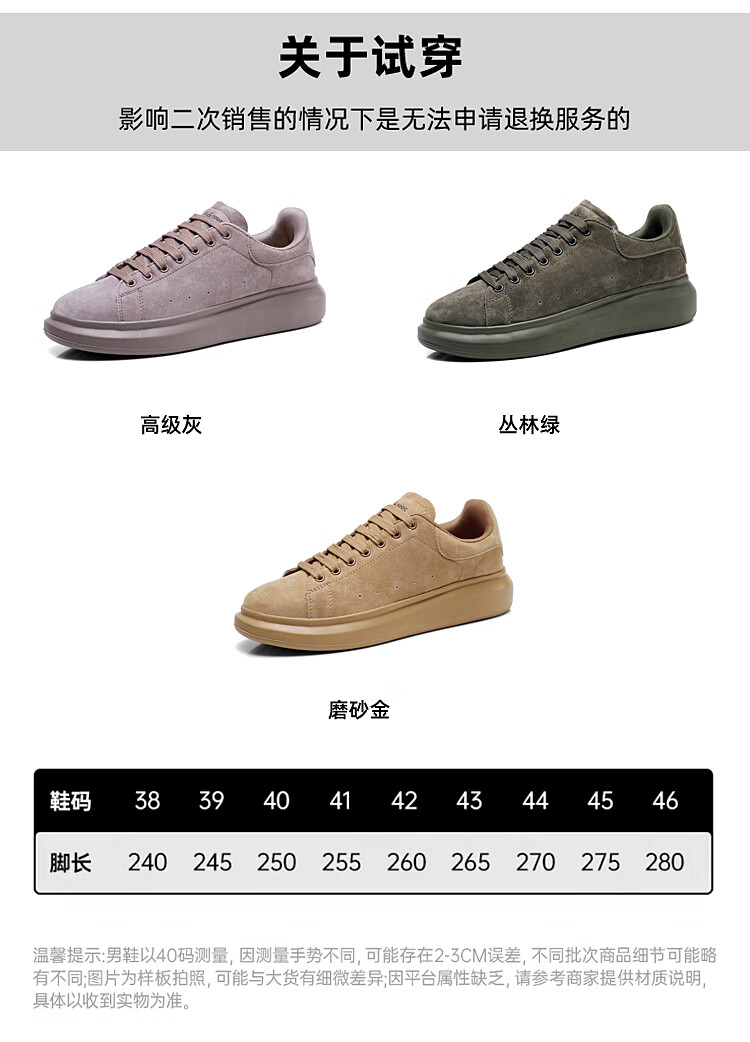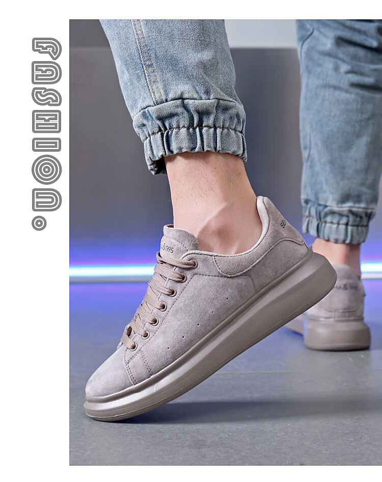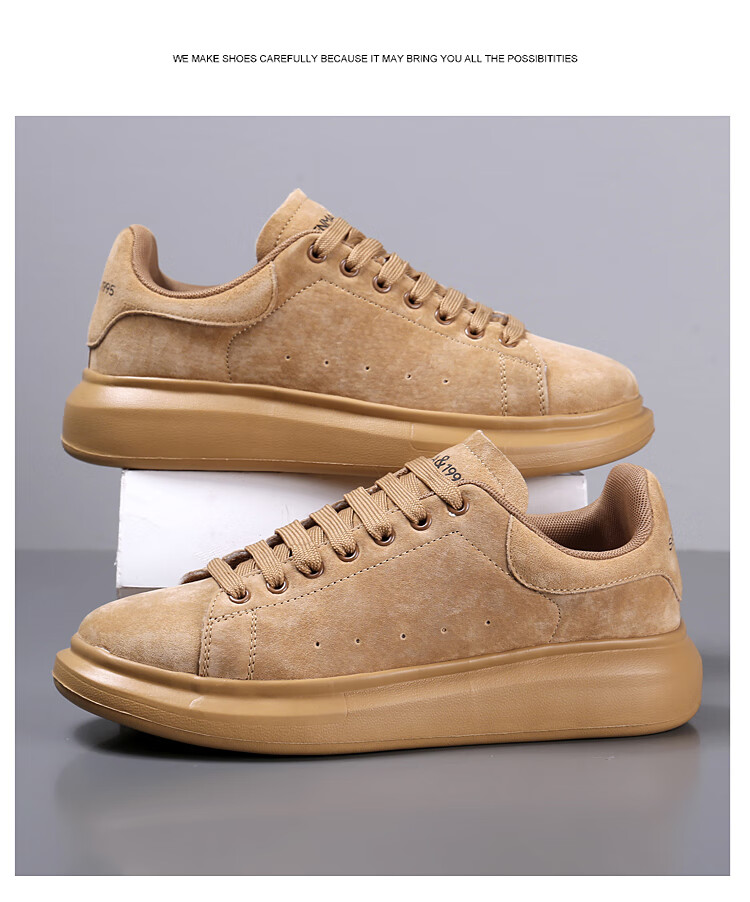 森馬(senma)板鞋休闲鞋男女款情侣款滑板鞋男皮面休闲鞋厚底运动鞋百搭男潮鞋 磨砂金 35