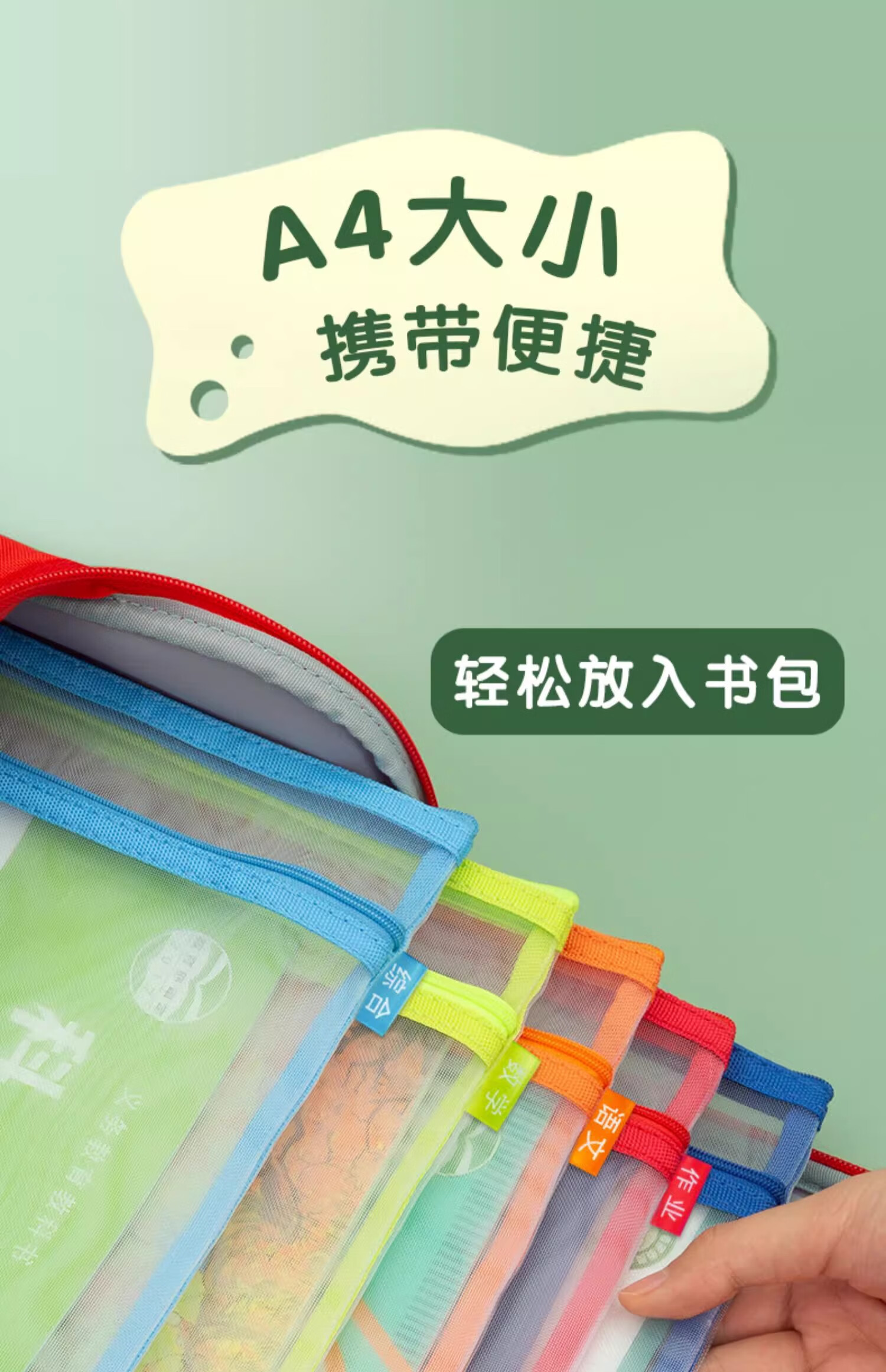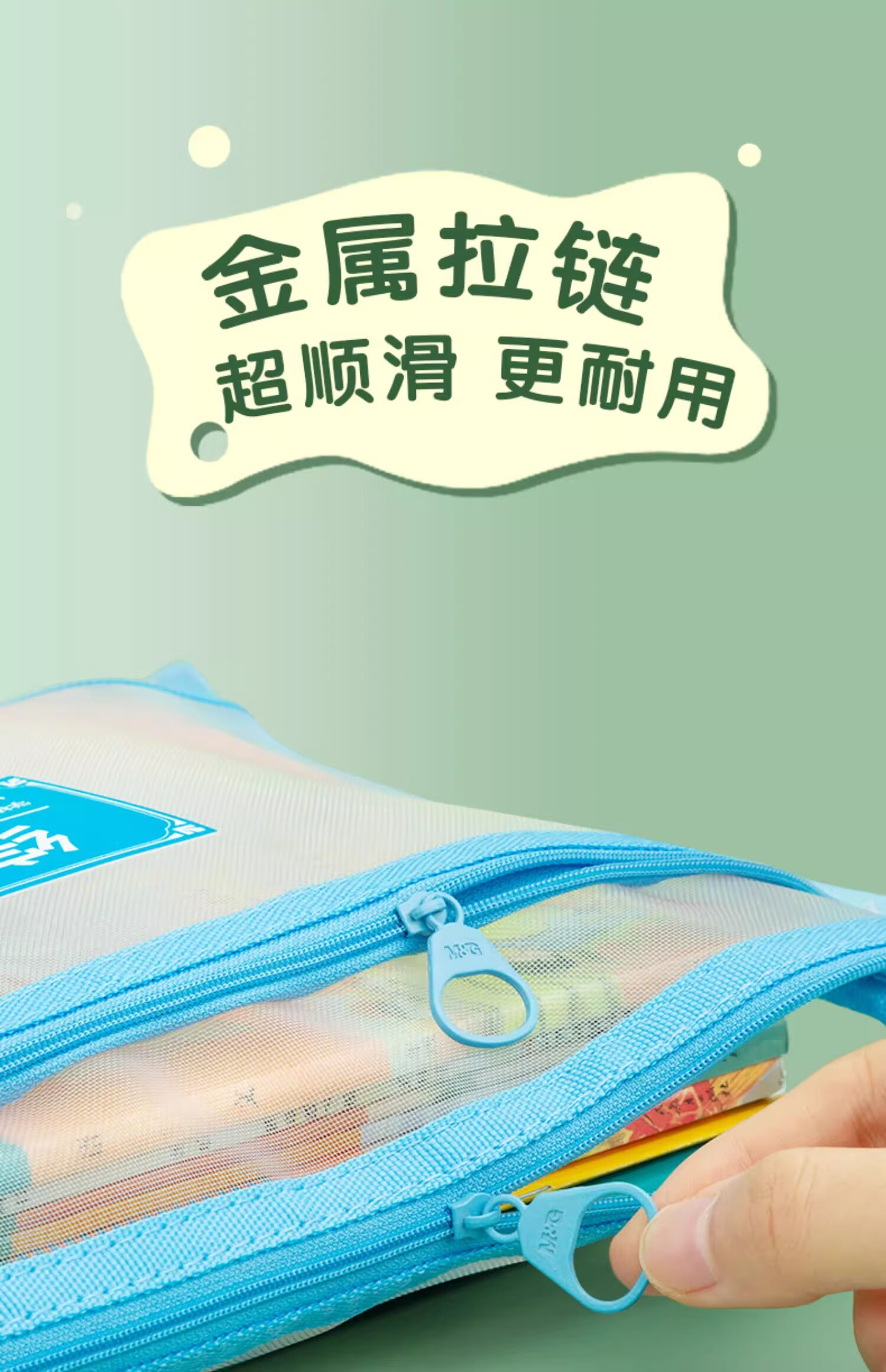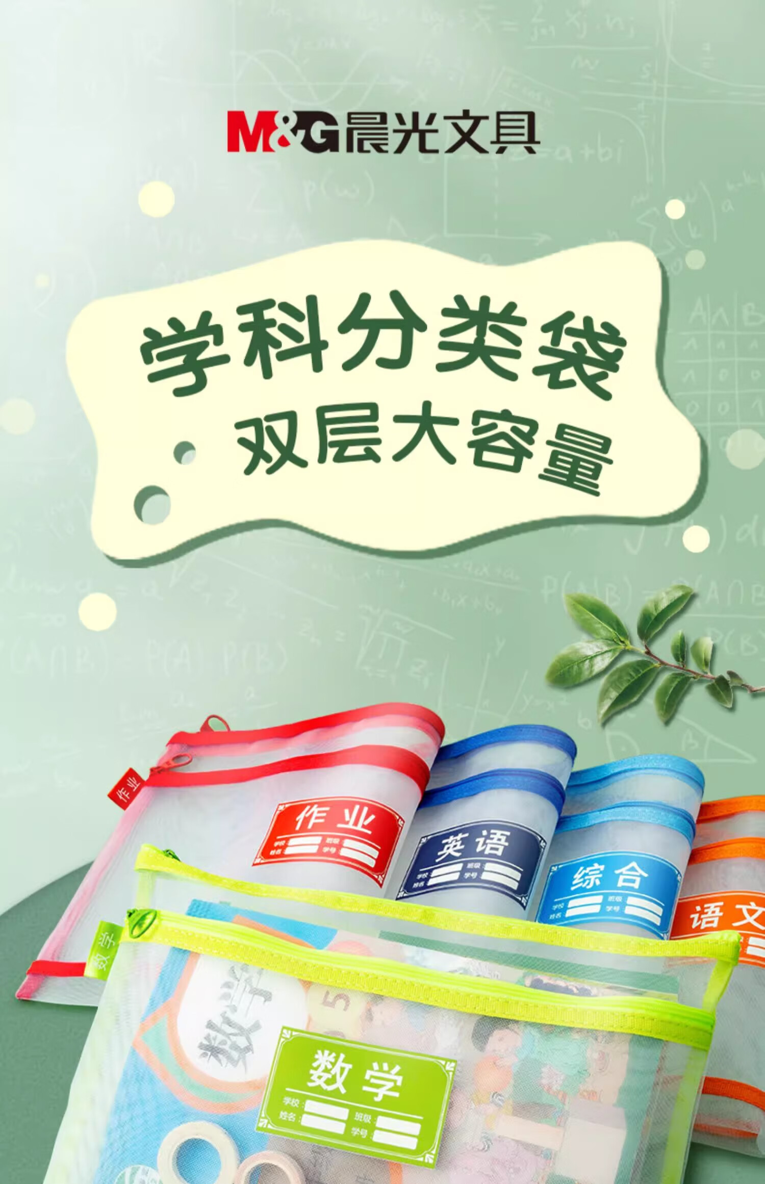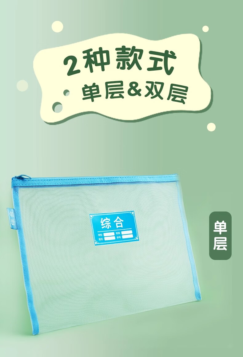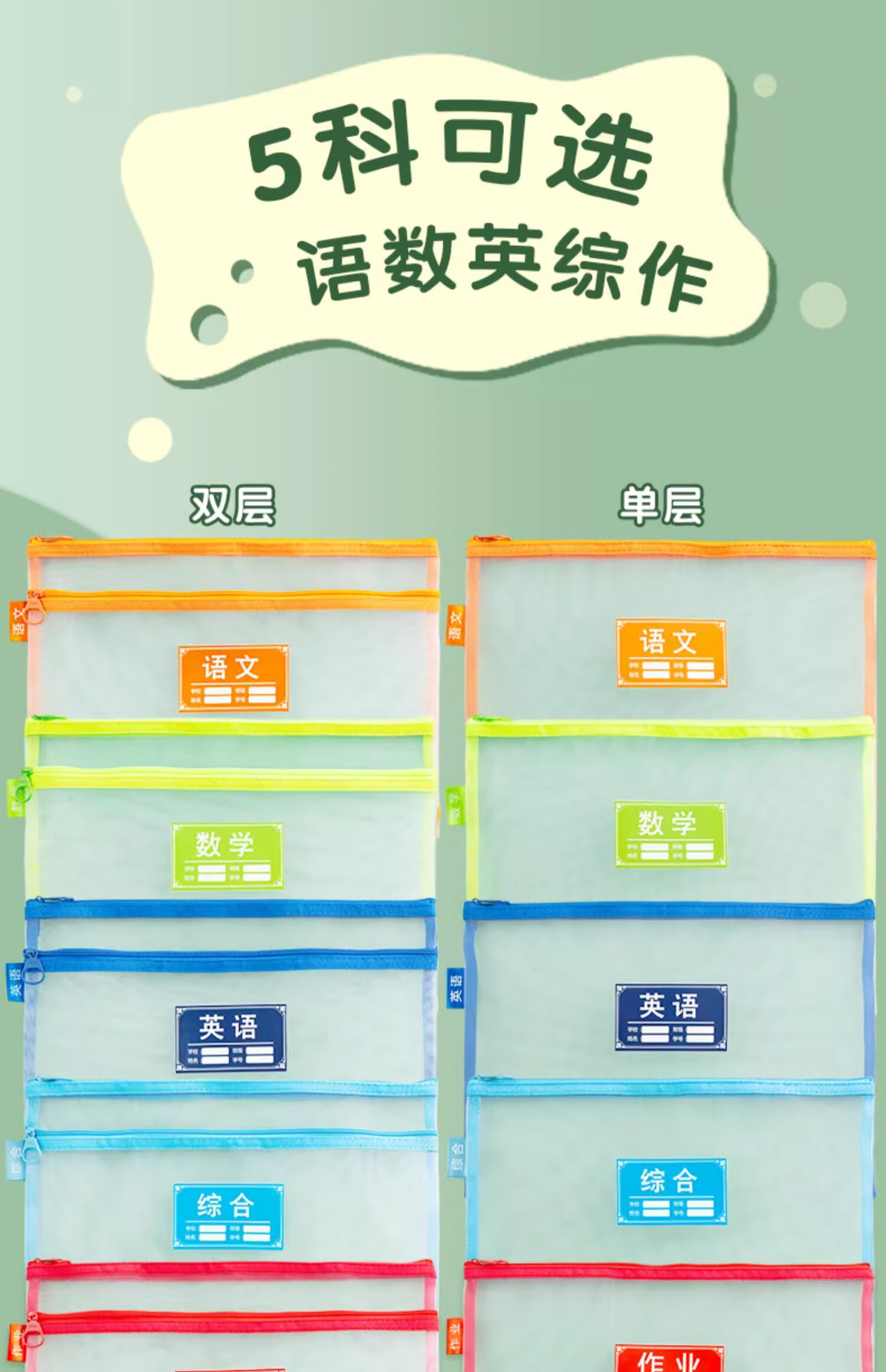 晨光(M&G)a4学科袋科目分类文件袋小学生双层超牢固抗皱透明网纱试卷收纳袋加厚大容量拉链式书袋课本作业袋 双层【语+数+英+综合+作业】各1/ 共5个