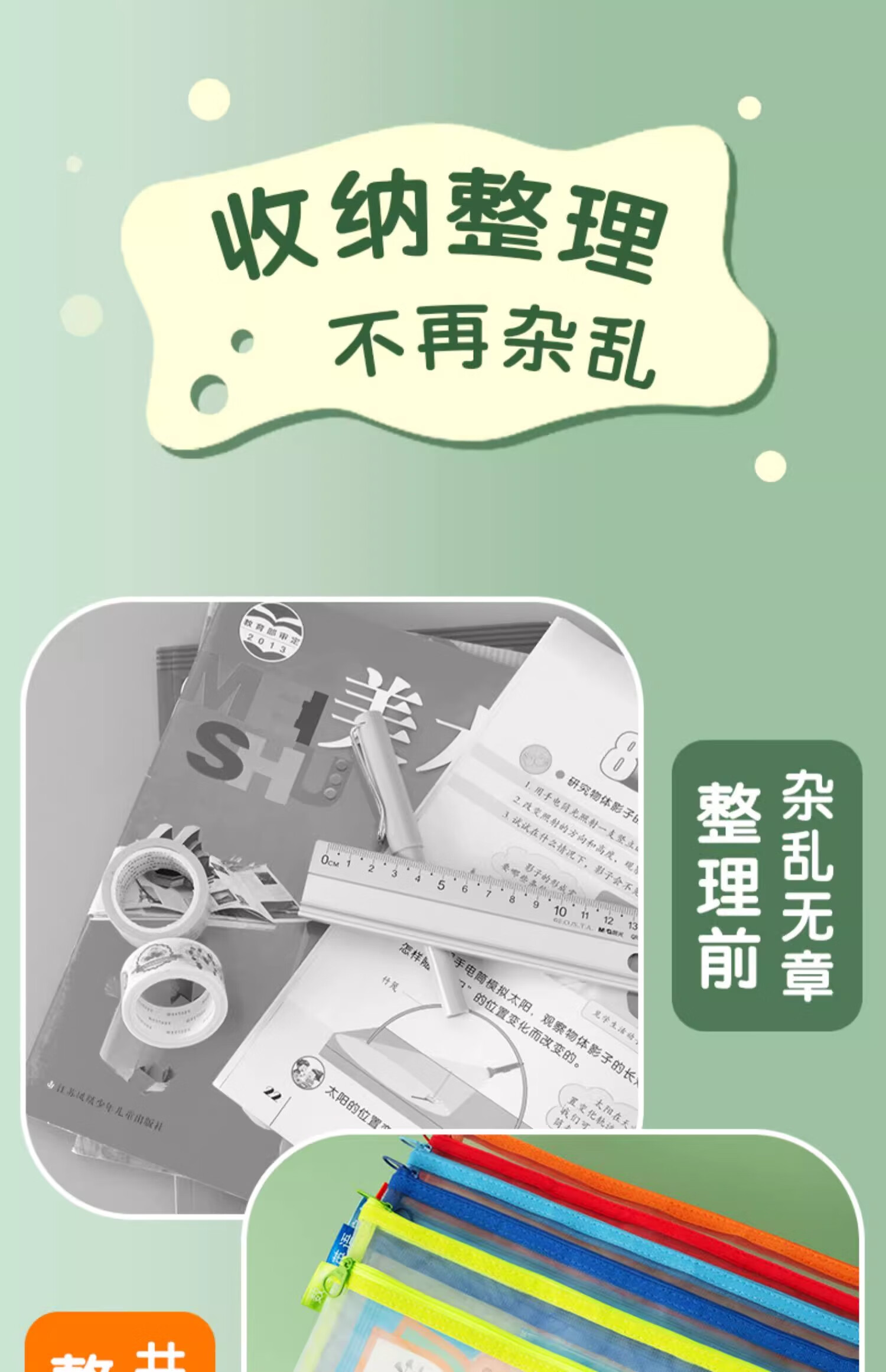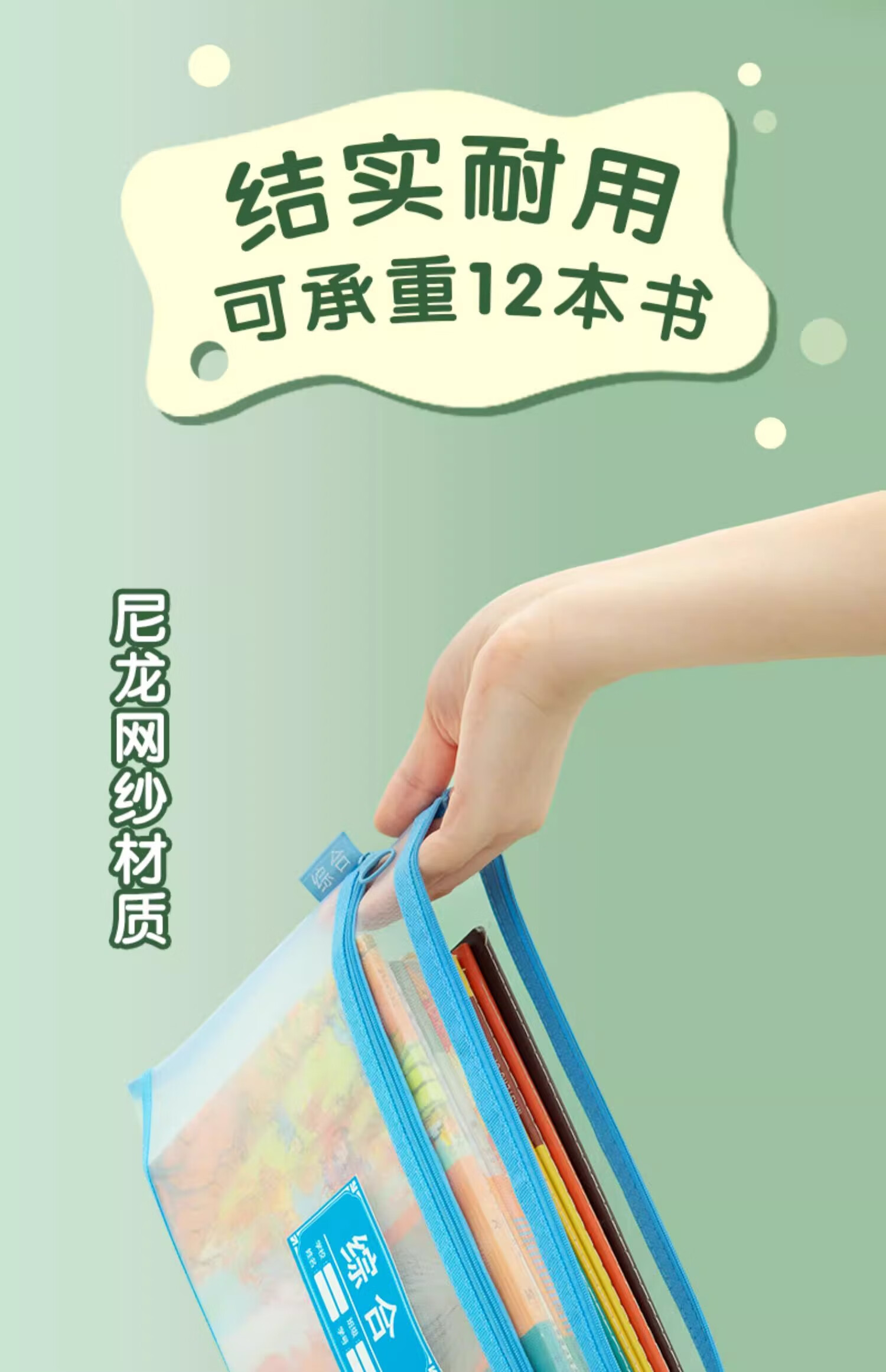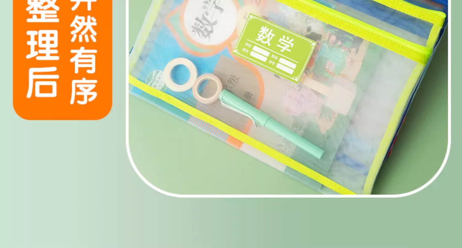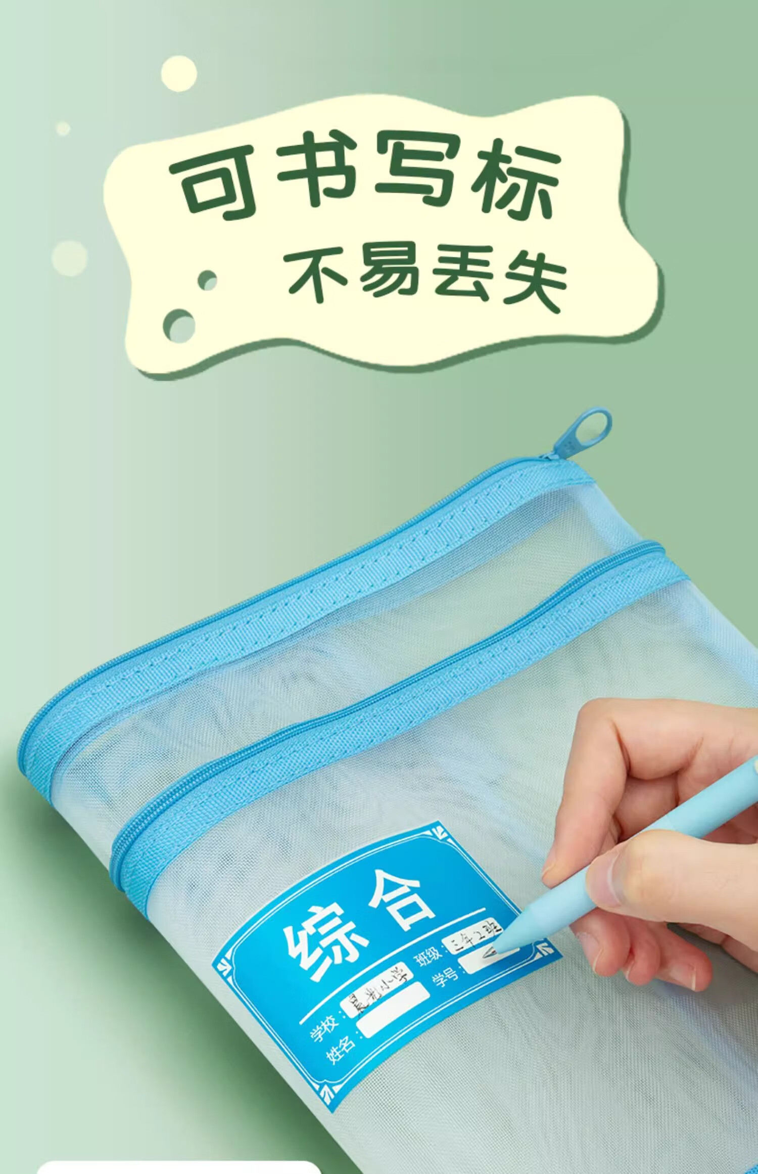 晨光(M&G)a4学科袋科目分类文件袋小学生双层超牢固抗皱透明网纱试卷收纳袋加厚大容量拉链式书袋课本作业袋 双层【语+数+英+综合+作业】各1/ 共5个