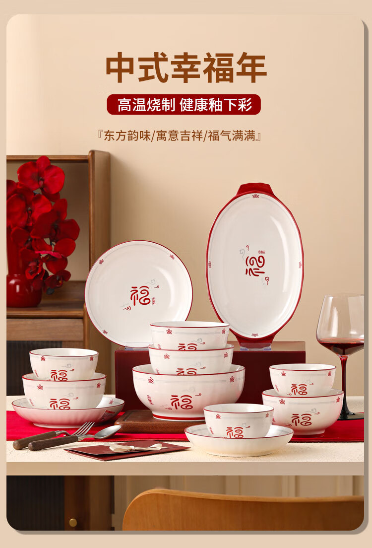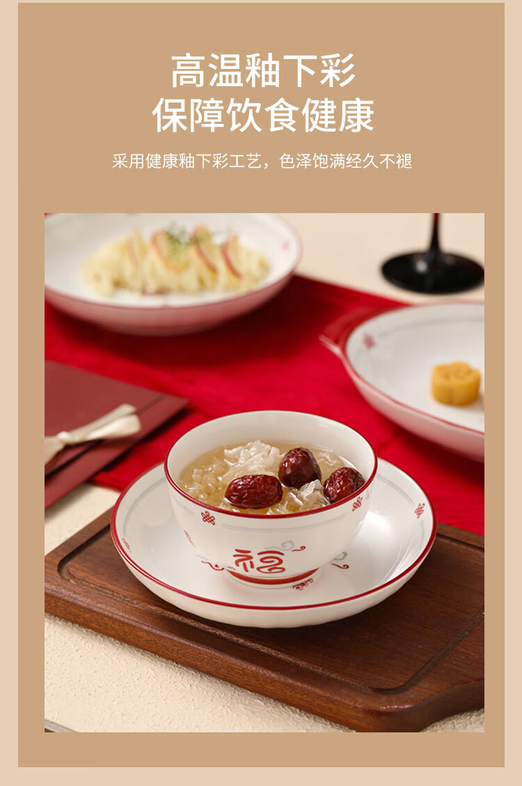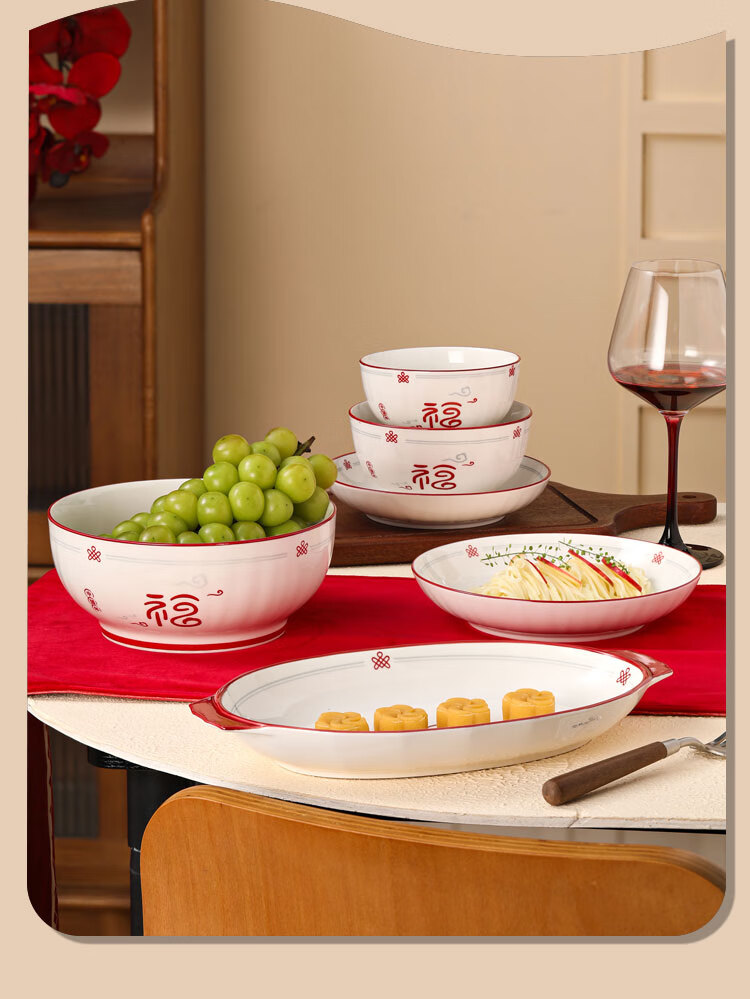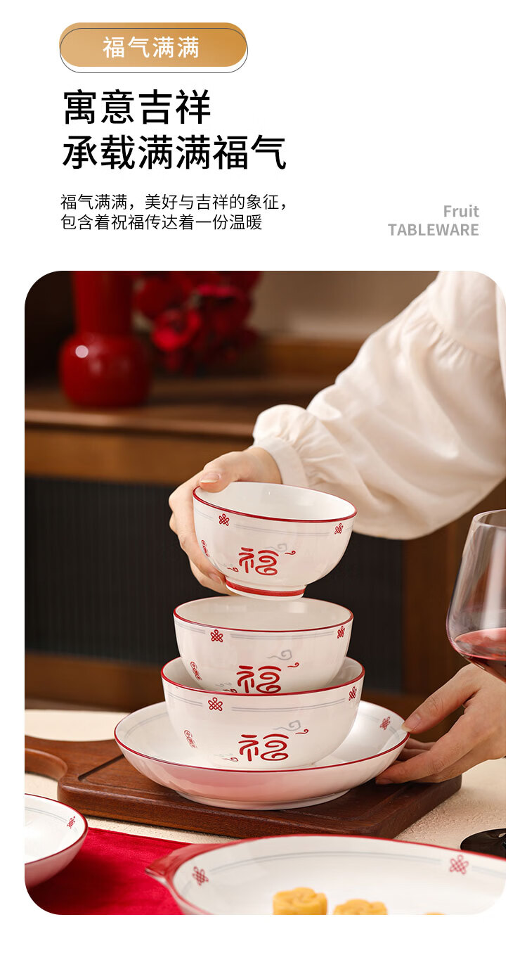 福气多多家用中式陶瓷英寸餐具结婚乔迁过年送礼餐具 【中国年-4.5英寸2碗】