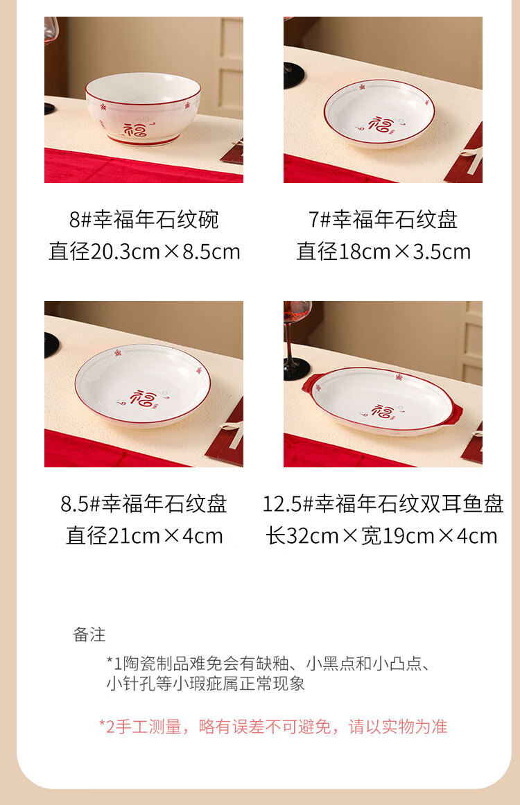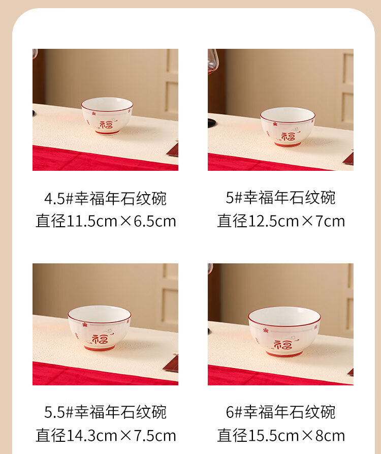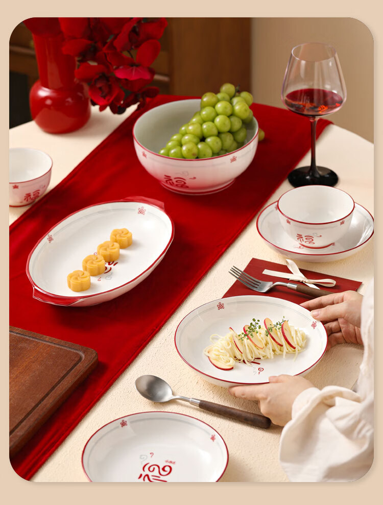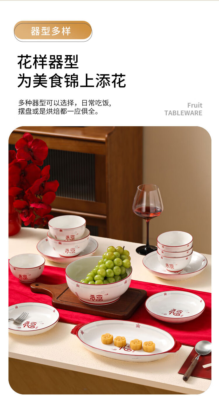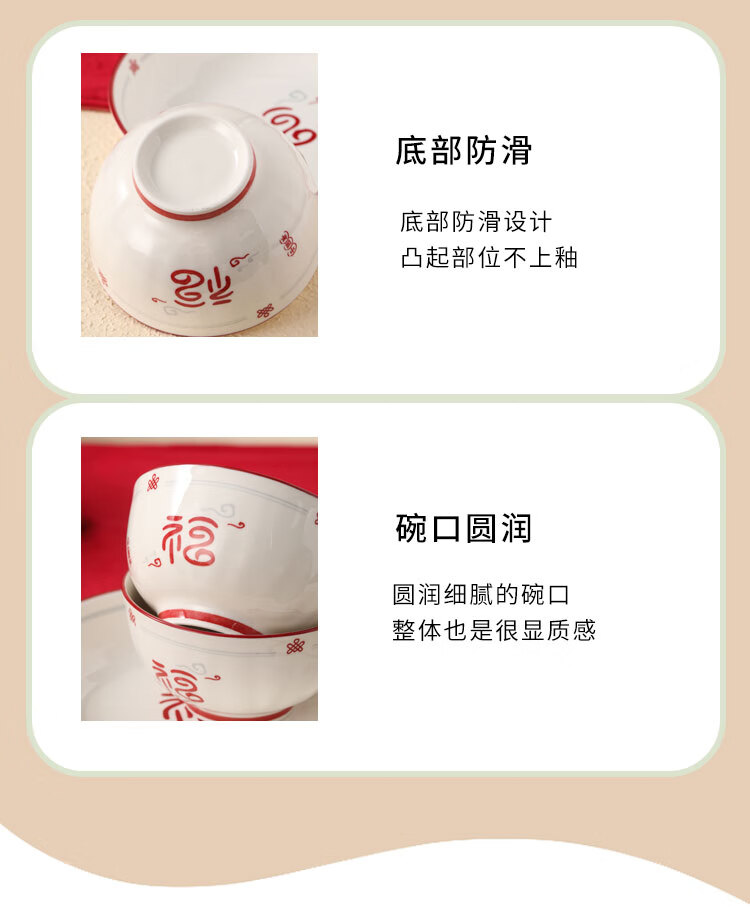 福气多多家用中式陶瓷英寸餐具结婚乔迁过年送礼餐具 【中国年-4.5英寸2碗】