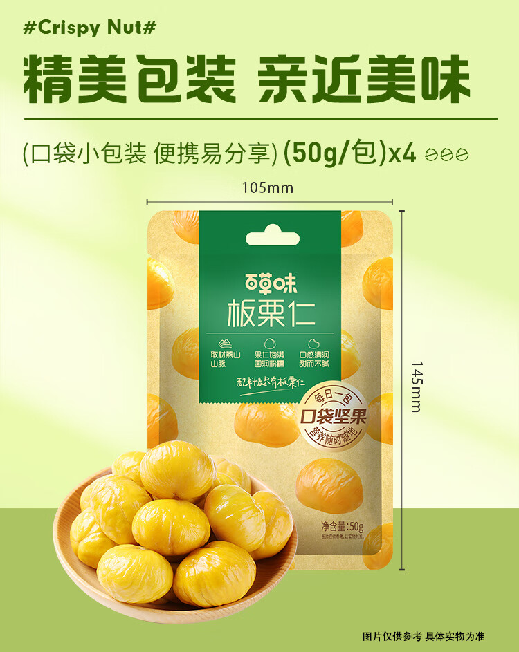 百草味熟制板栗仁50gx4包 坚果炒货板栗子仁即食甘栗仁休闲零食