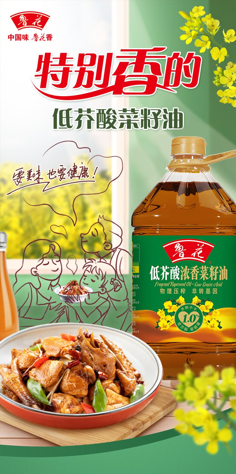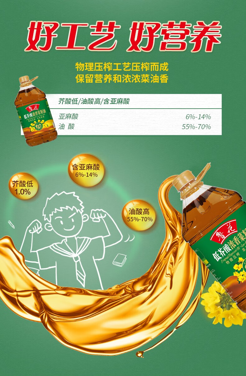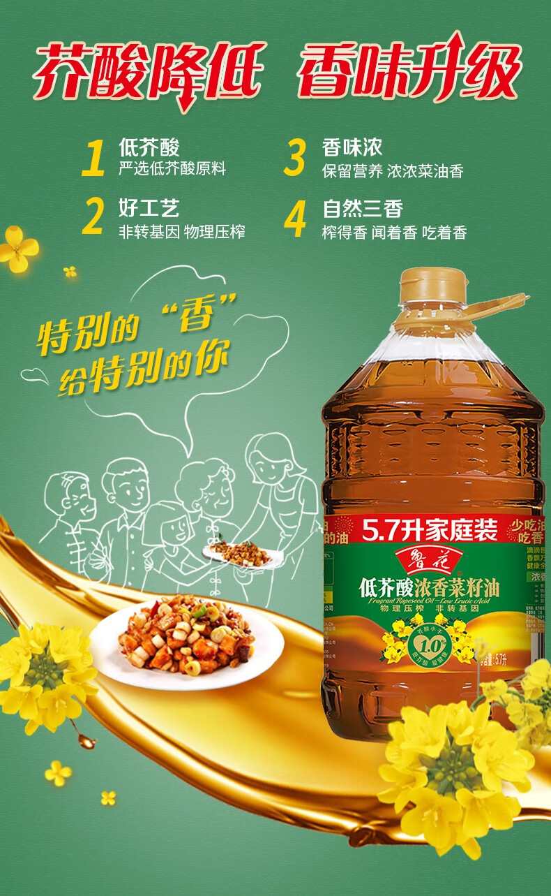 鲁花【直销】低芥酸浓香菜籽油5.7L 非转基因 粮油 食用油