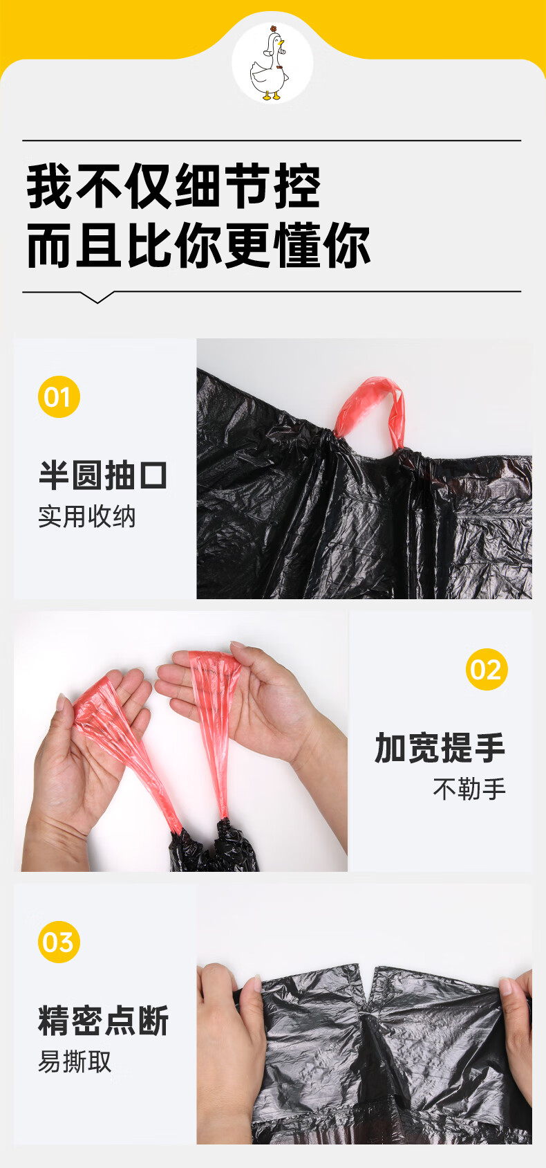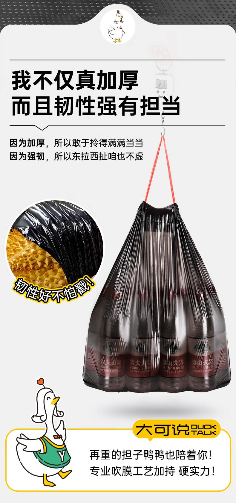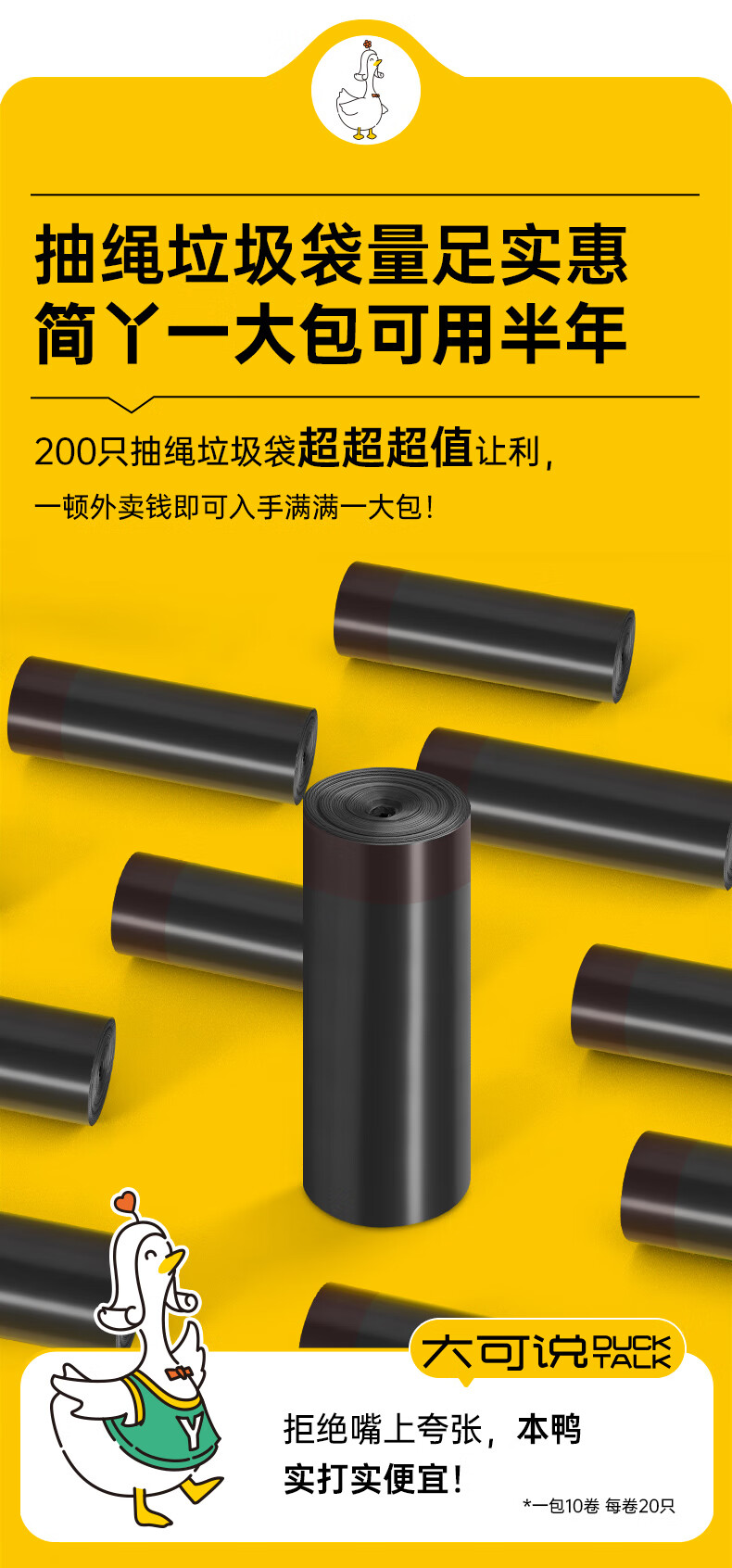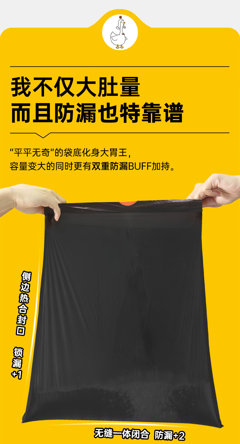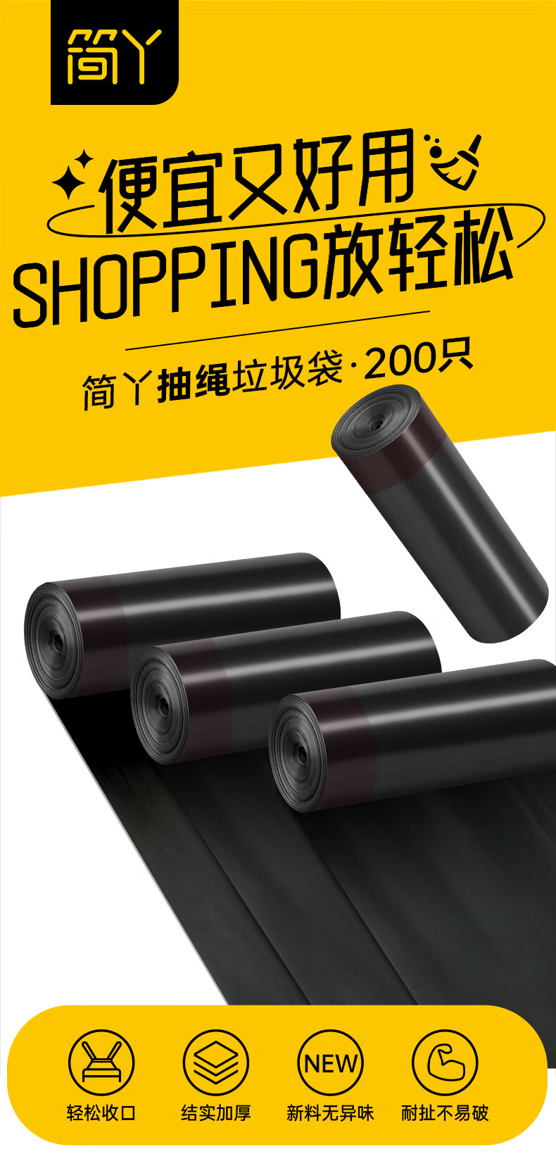 简丫垃圾袋抽绳式黑色45*50cm200只0.9丝免撕大号家用手提厚款塑料袋