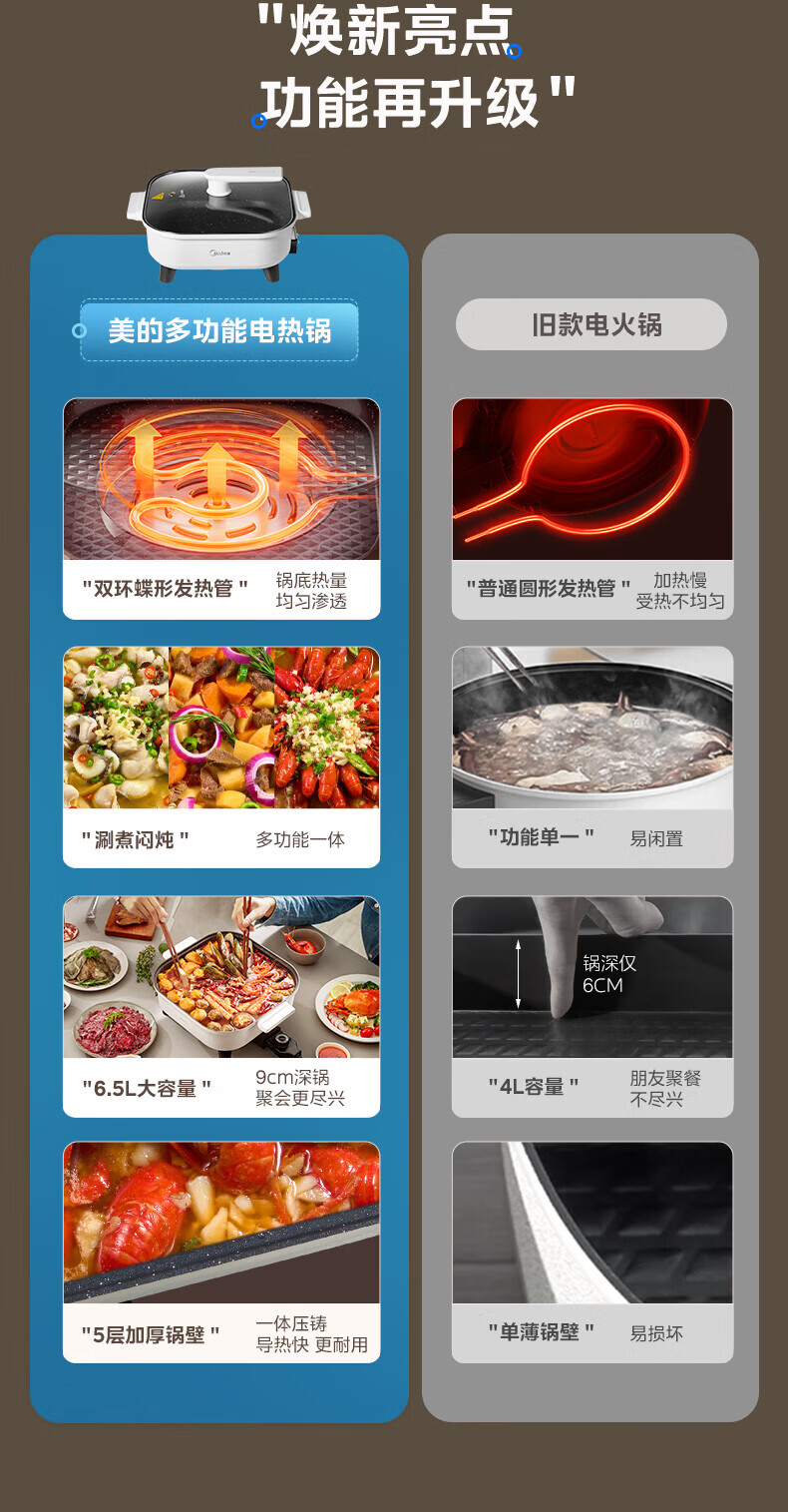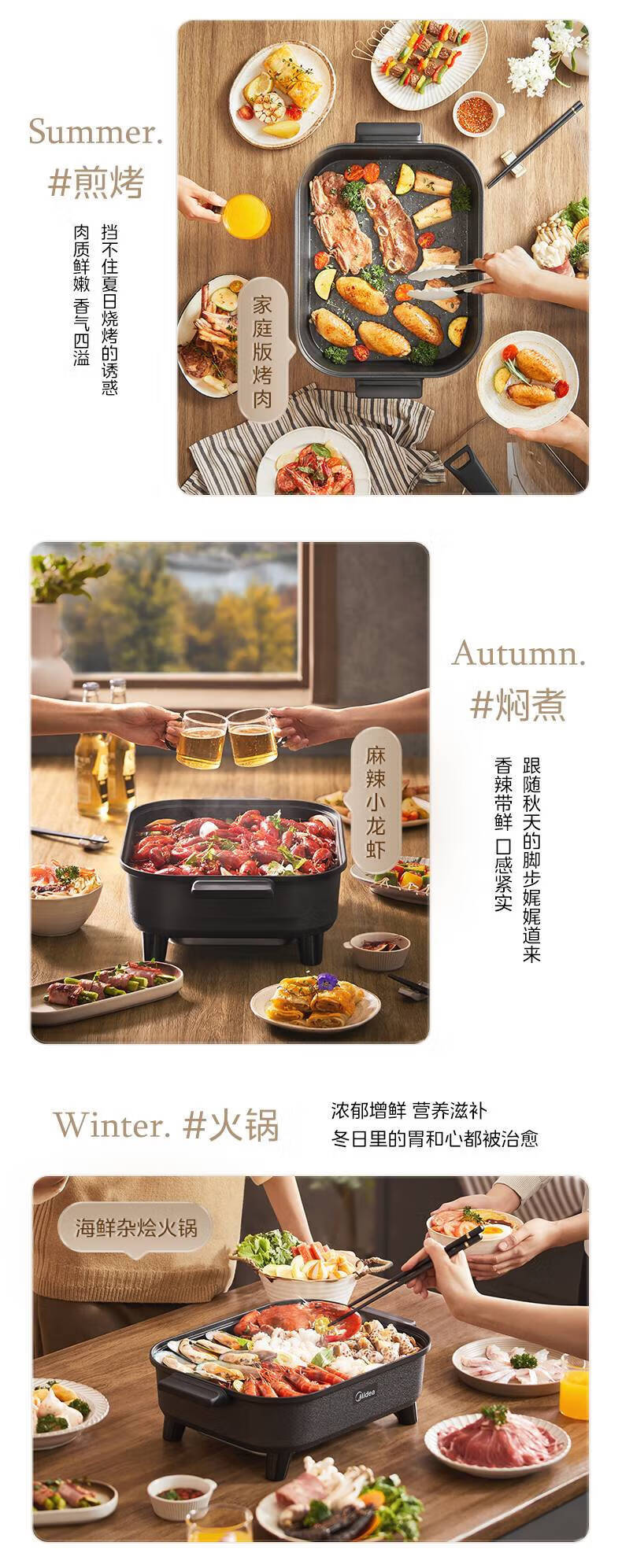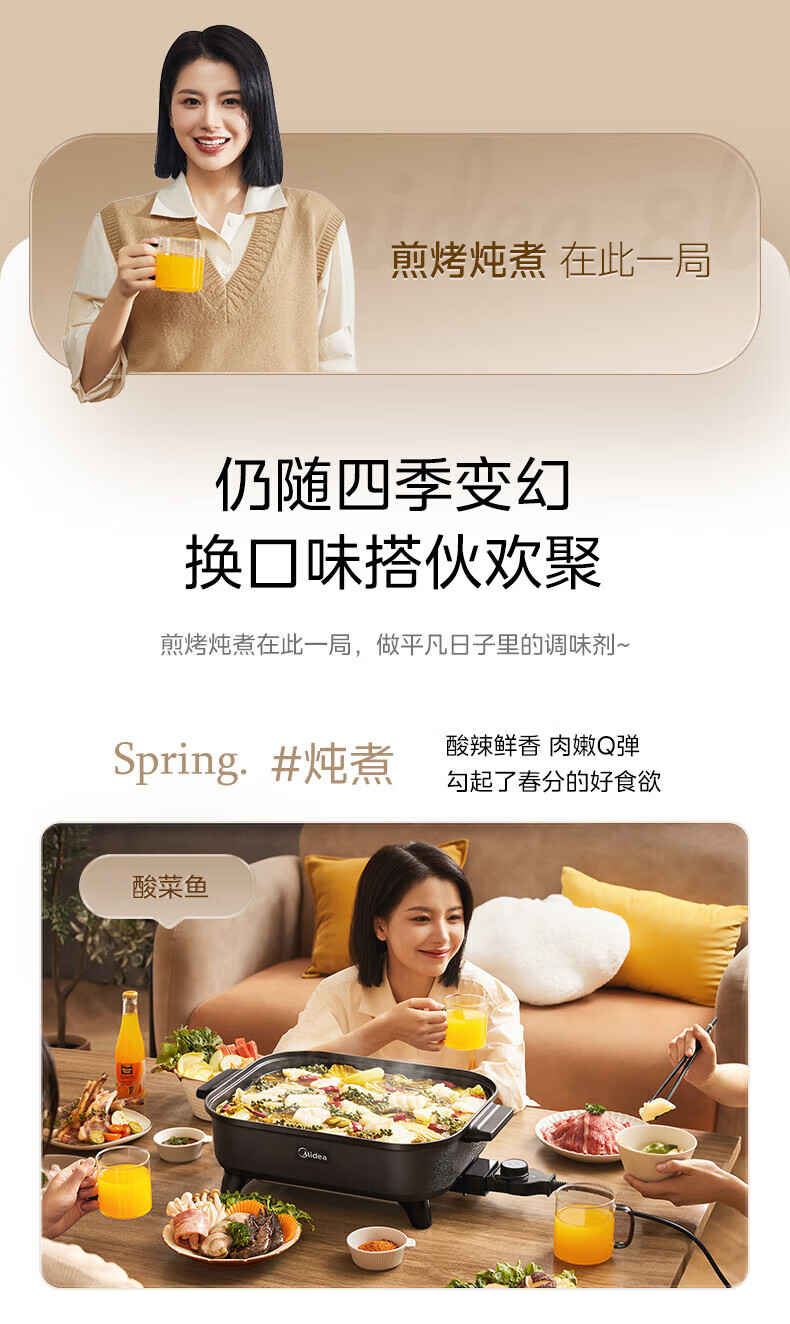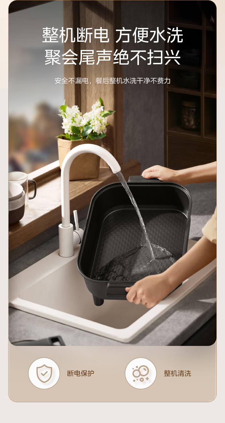 美的(Midea)电火锅电炒锅家用多功能电锅煎烤涮一体电热电煮锅速沸火锅不粘烤鱼锅鸳鸯锅电火锅专用锅多用途锅 6L +一体+1800W丨DY3030Easy101