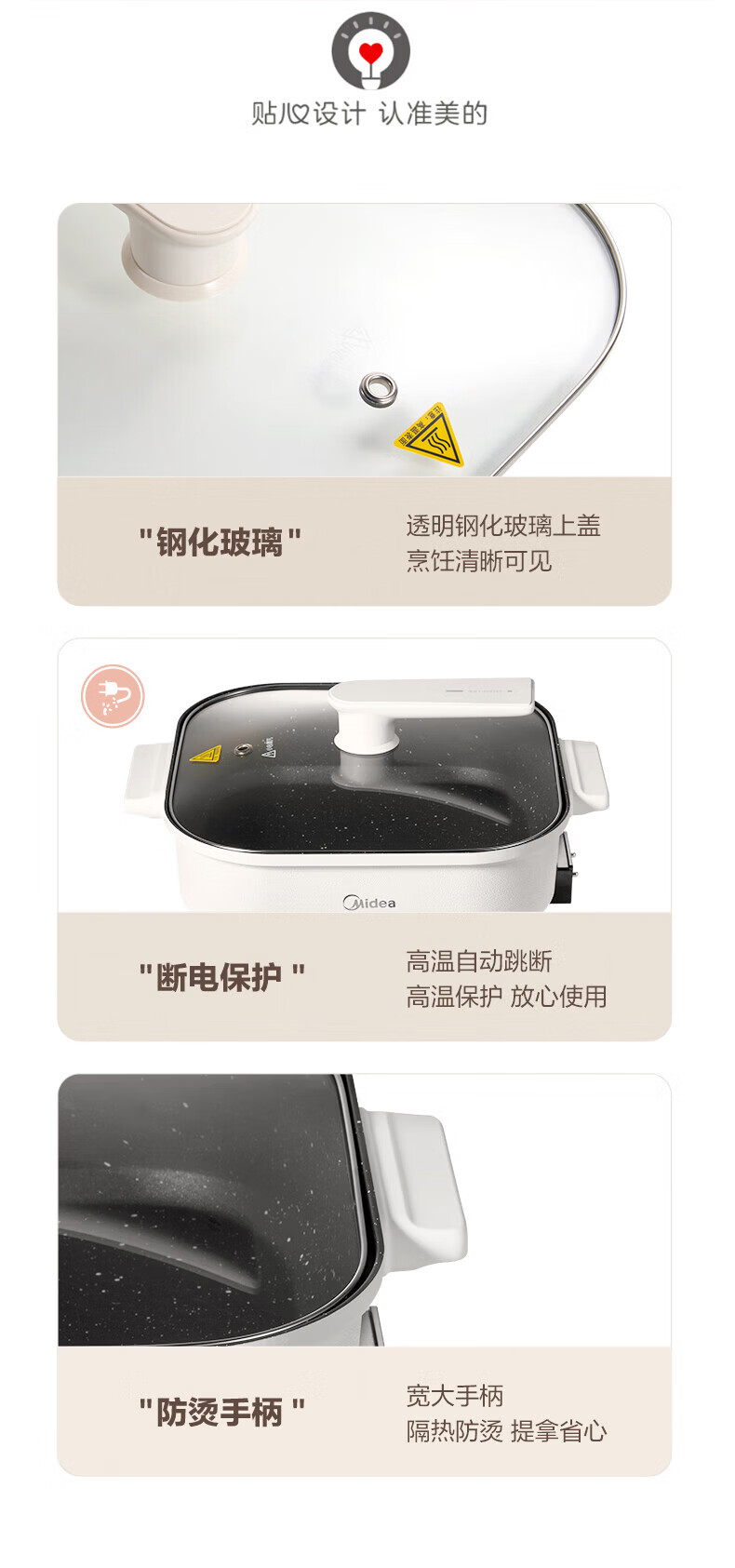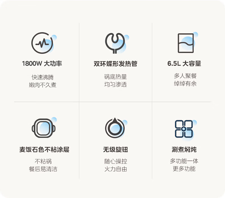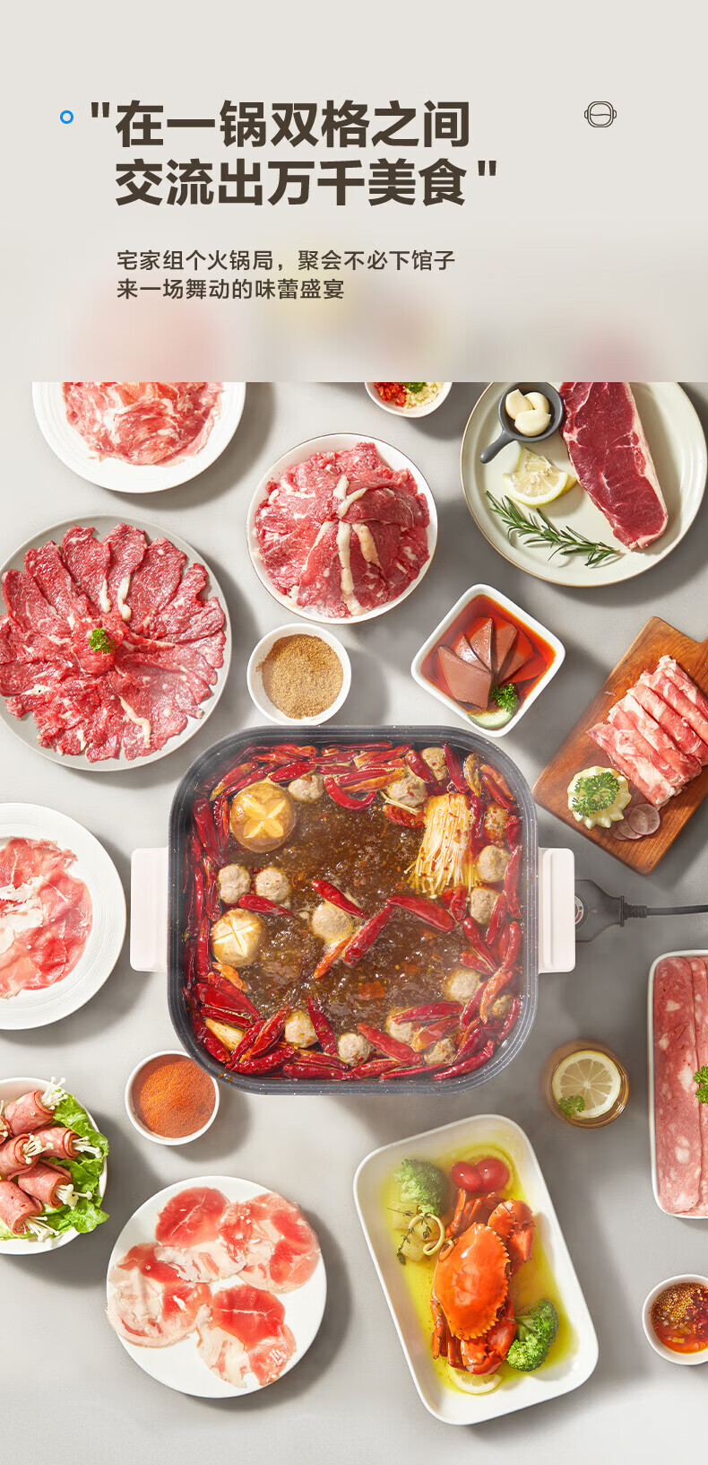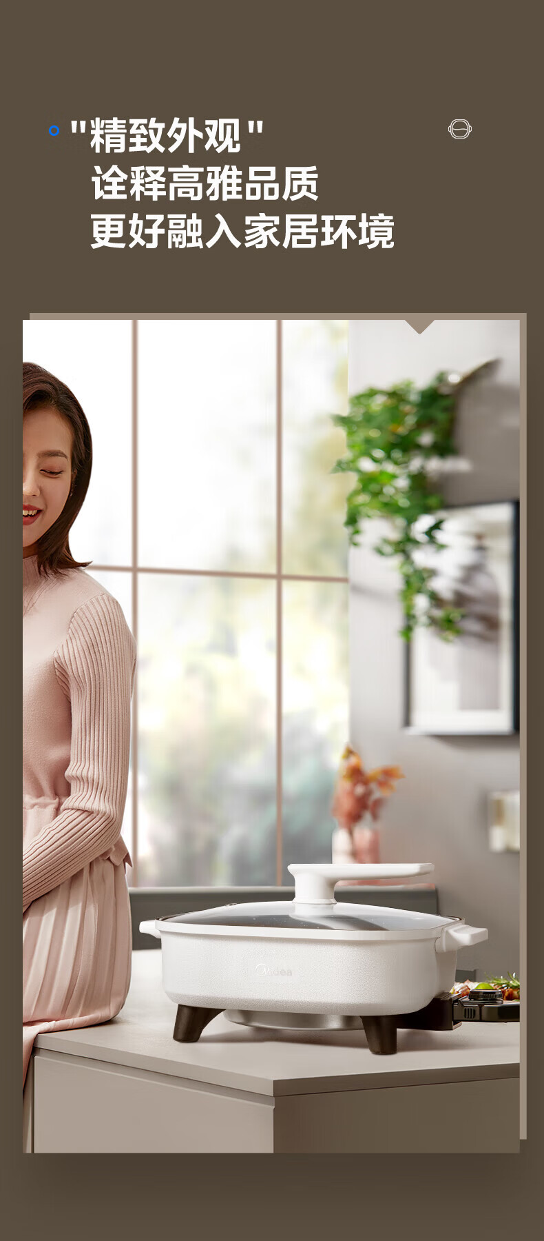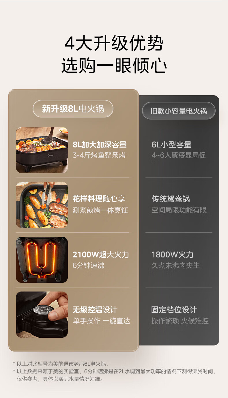 美的(Midea)电火锅电炒锅家用多功能电锅煎烤涮一体电热电煮锅速沸火锅不粘烤鱼锅鸳鸯锅电火锅专用锅多用途锅 6L +一体+1800W丨DY3030Easy101