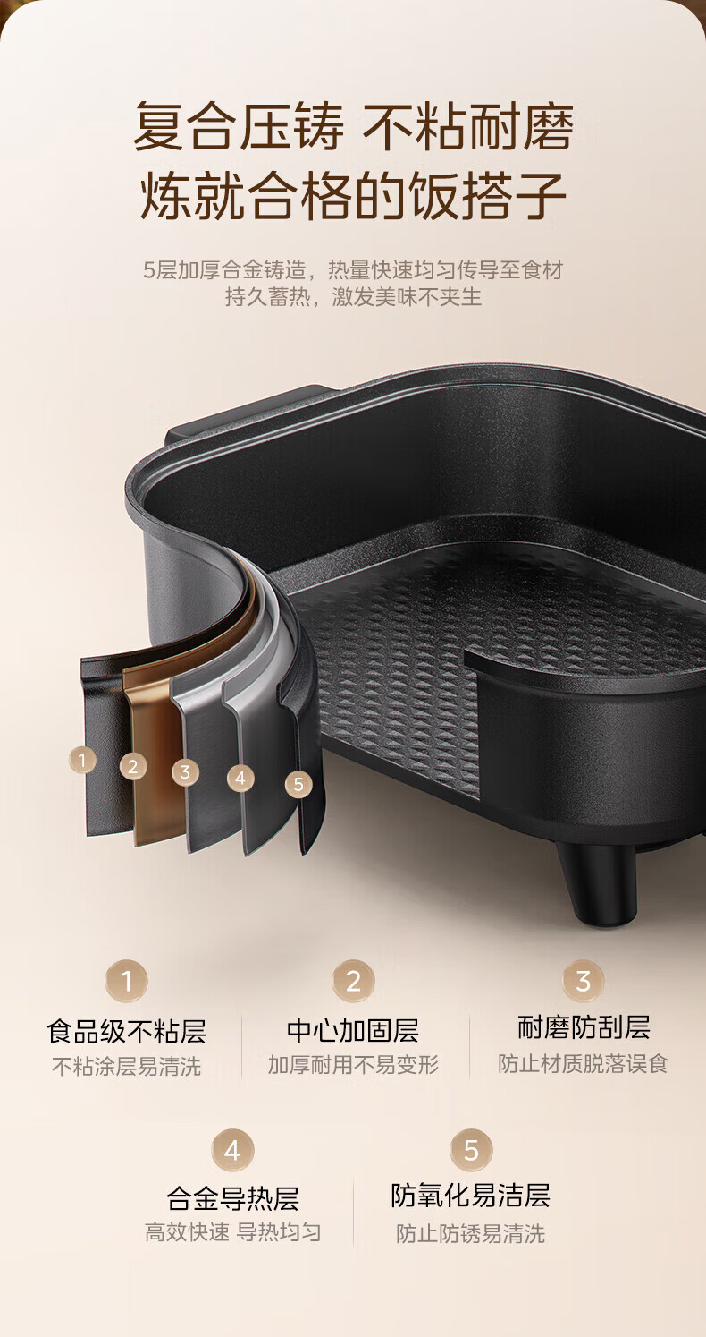 苏泊尔(SUPOR)0涂层精钢电压力锅 家用5升大容量不锈钢电饭煲电高压锅 2-6人用智能电饭锅 11大功能高压炖煮 0氟内胆【一锅配双球釜内胆】 5L