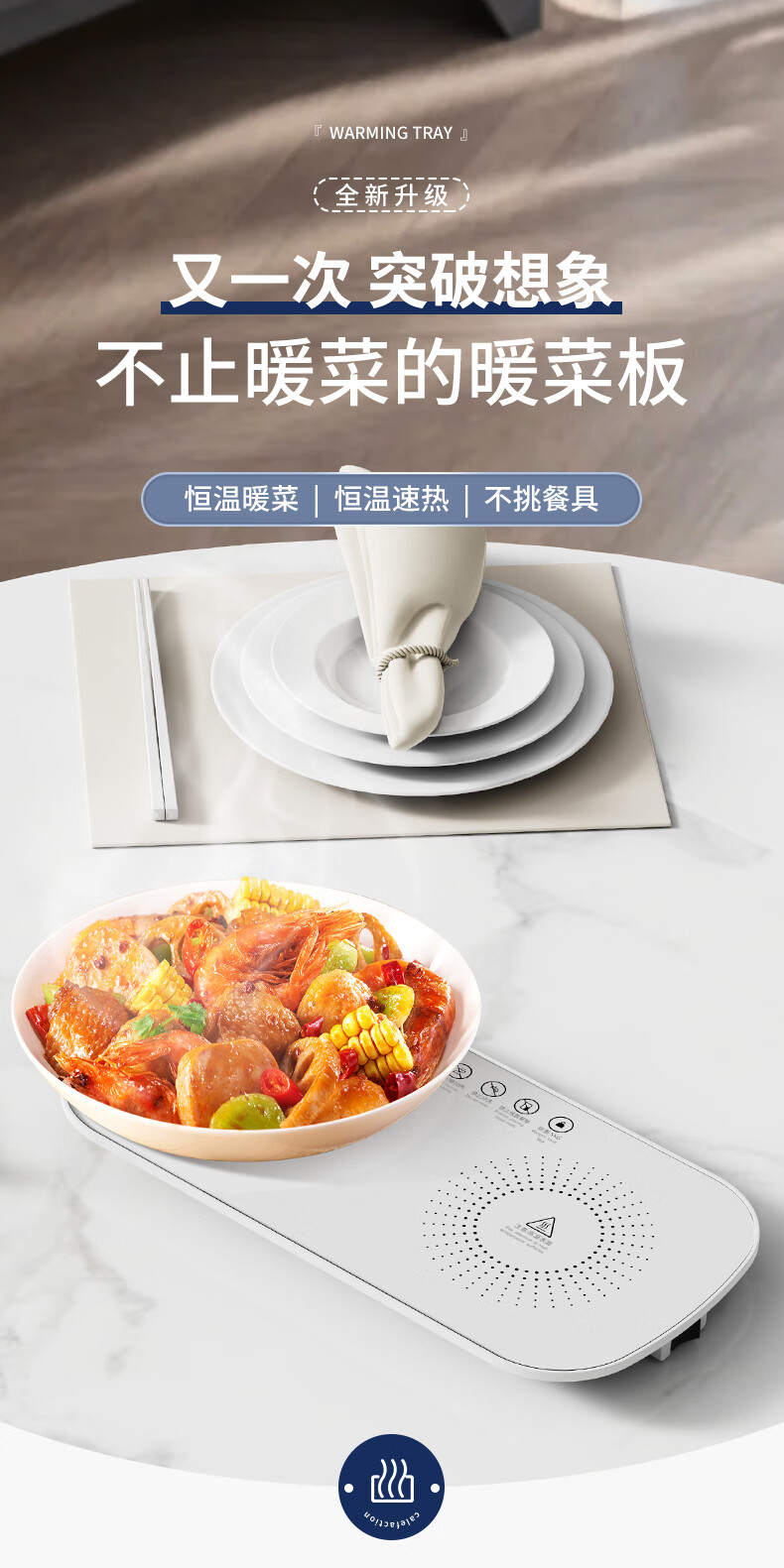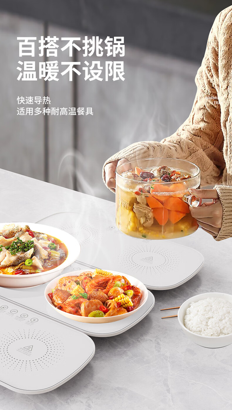 智能恒温加热暖菜板家用多功能保温板热牛奶神器办公室宿舍热饭菜 米白色