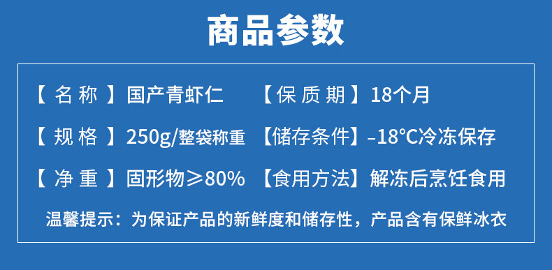 一虾一世界国产大号青虾仁 去虾线冷冻翡翠虾仁 健康轻食低脂 火锅烧烤食材 国标虾仁 1250g(净重) 【250g*5袋】