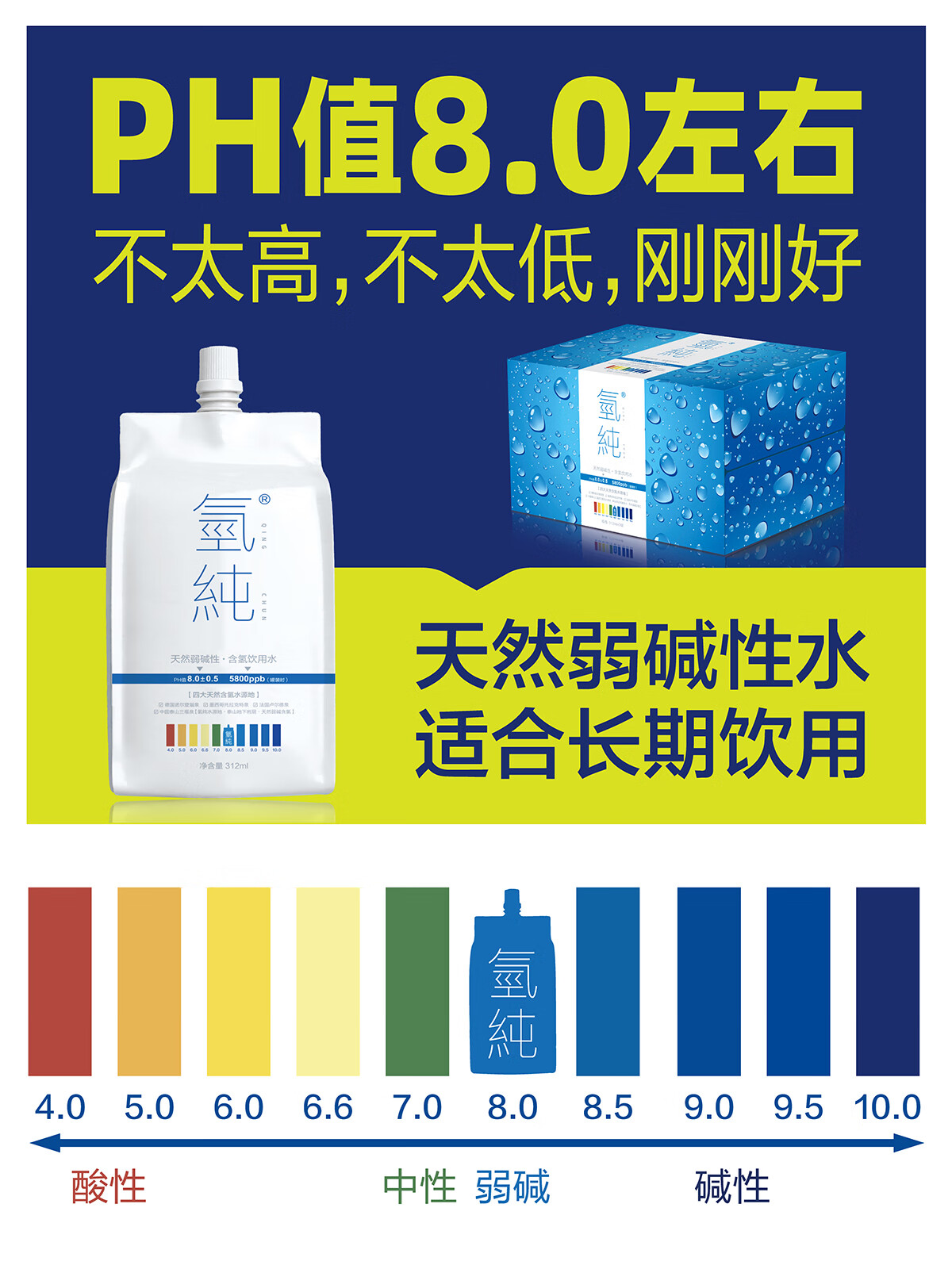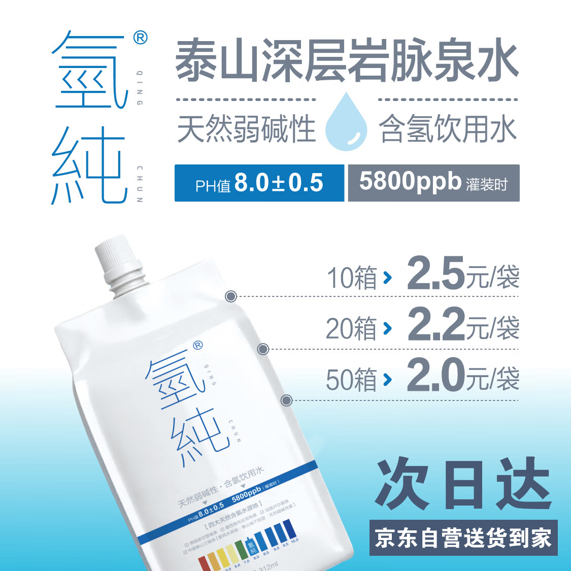 氢纯【10箱】【京东热卖】天然弱碱性含氢水-312ml*90袋--次日送到家