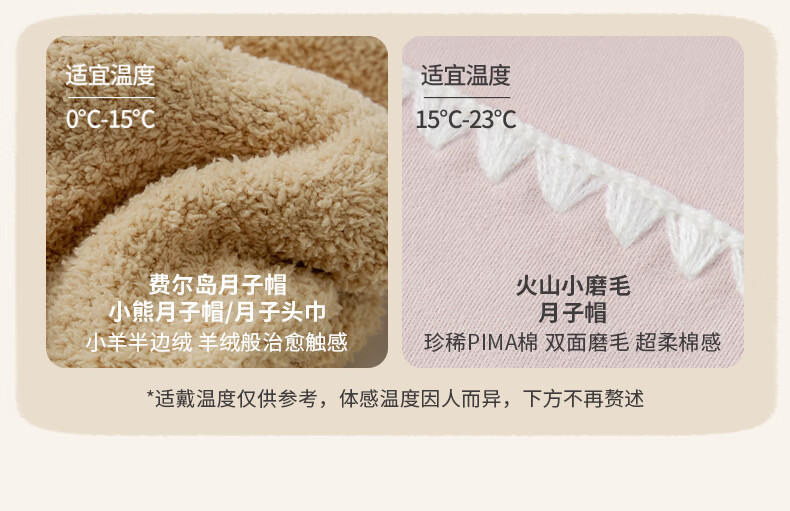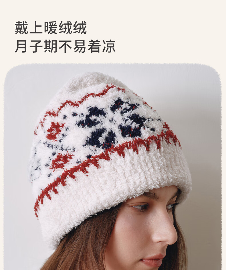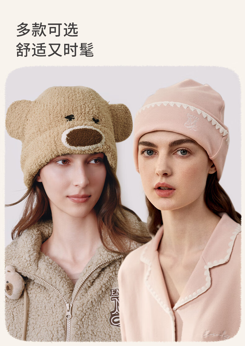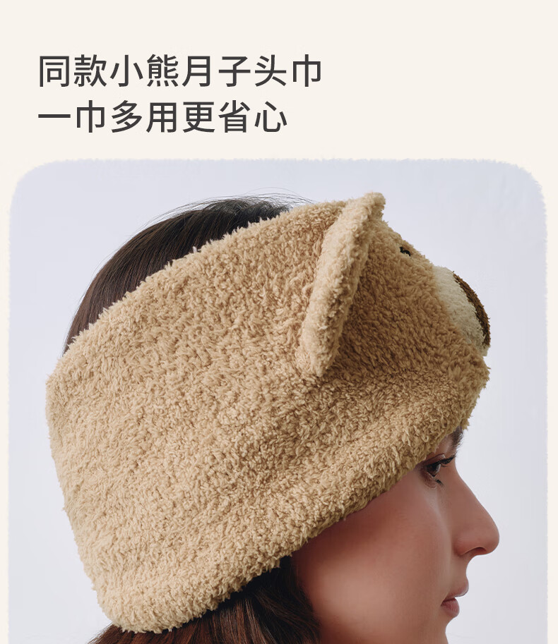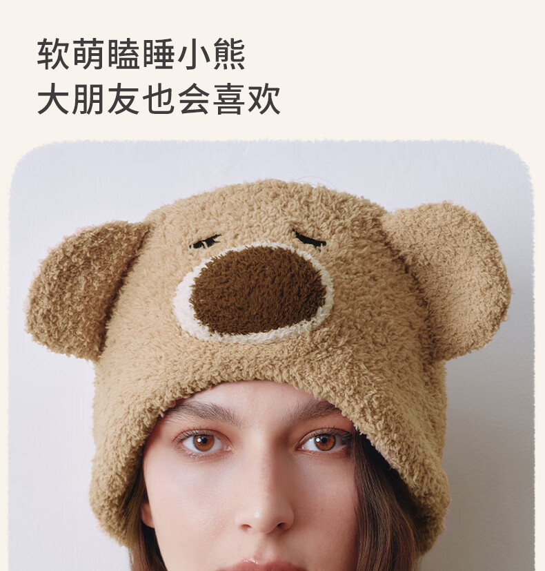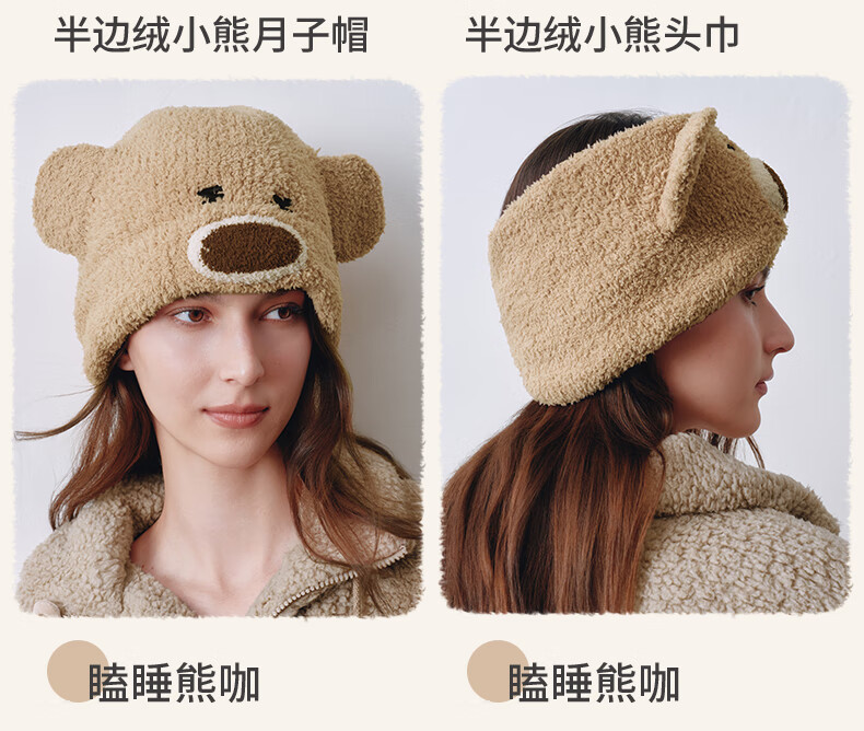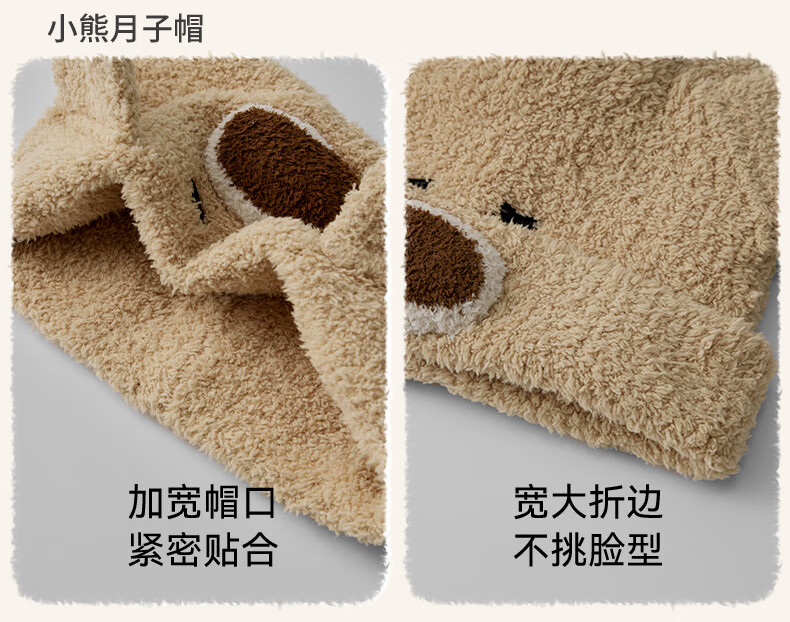 嫚熙(EMXEE)秋季月子帽产妇坐月子双面磨毛孕妇帽产后防风护头帽 【月子帽】瞌睡熊咖-小羊半边绒