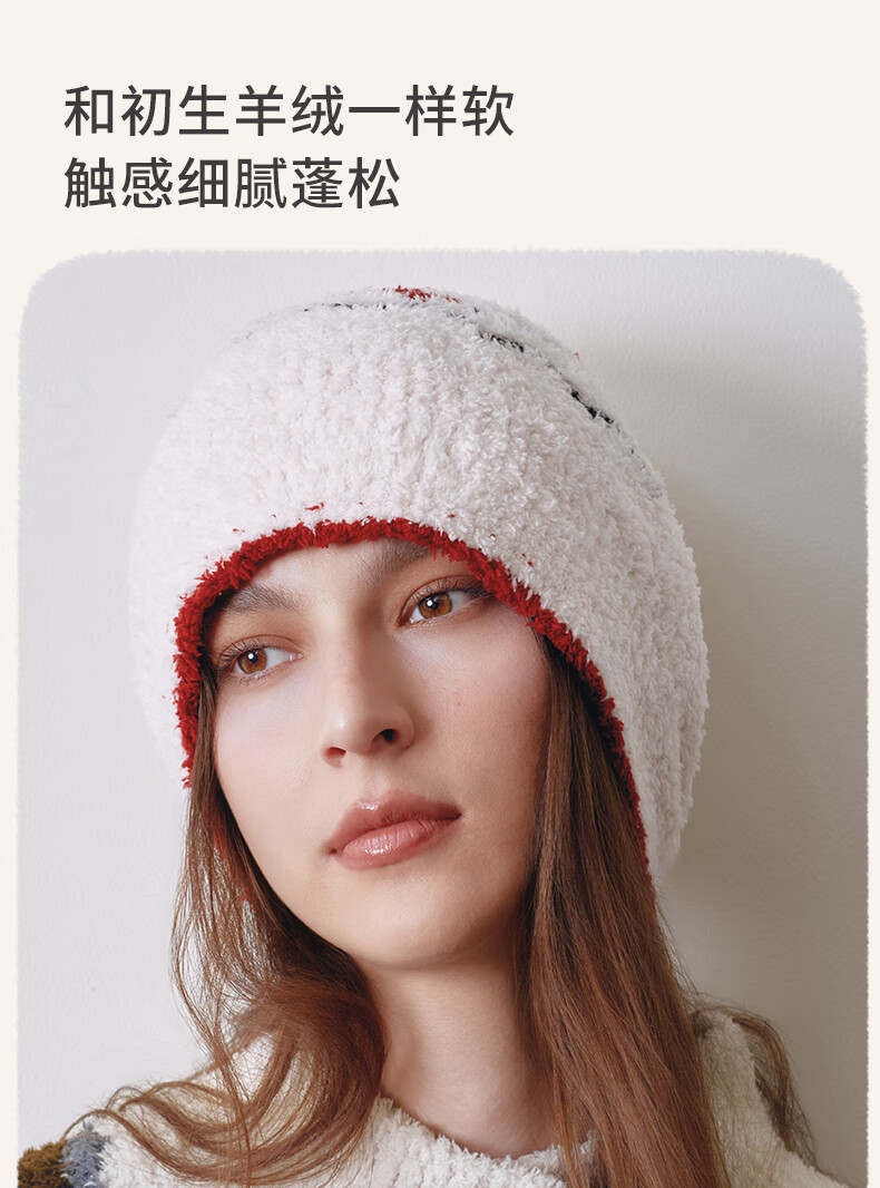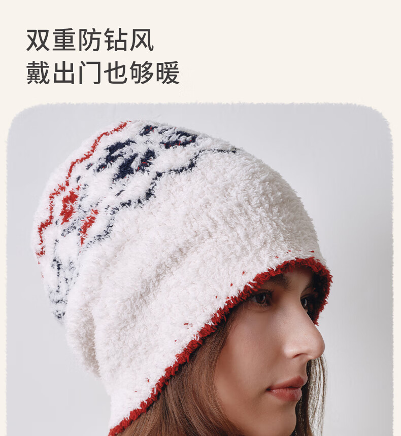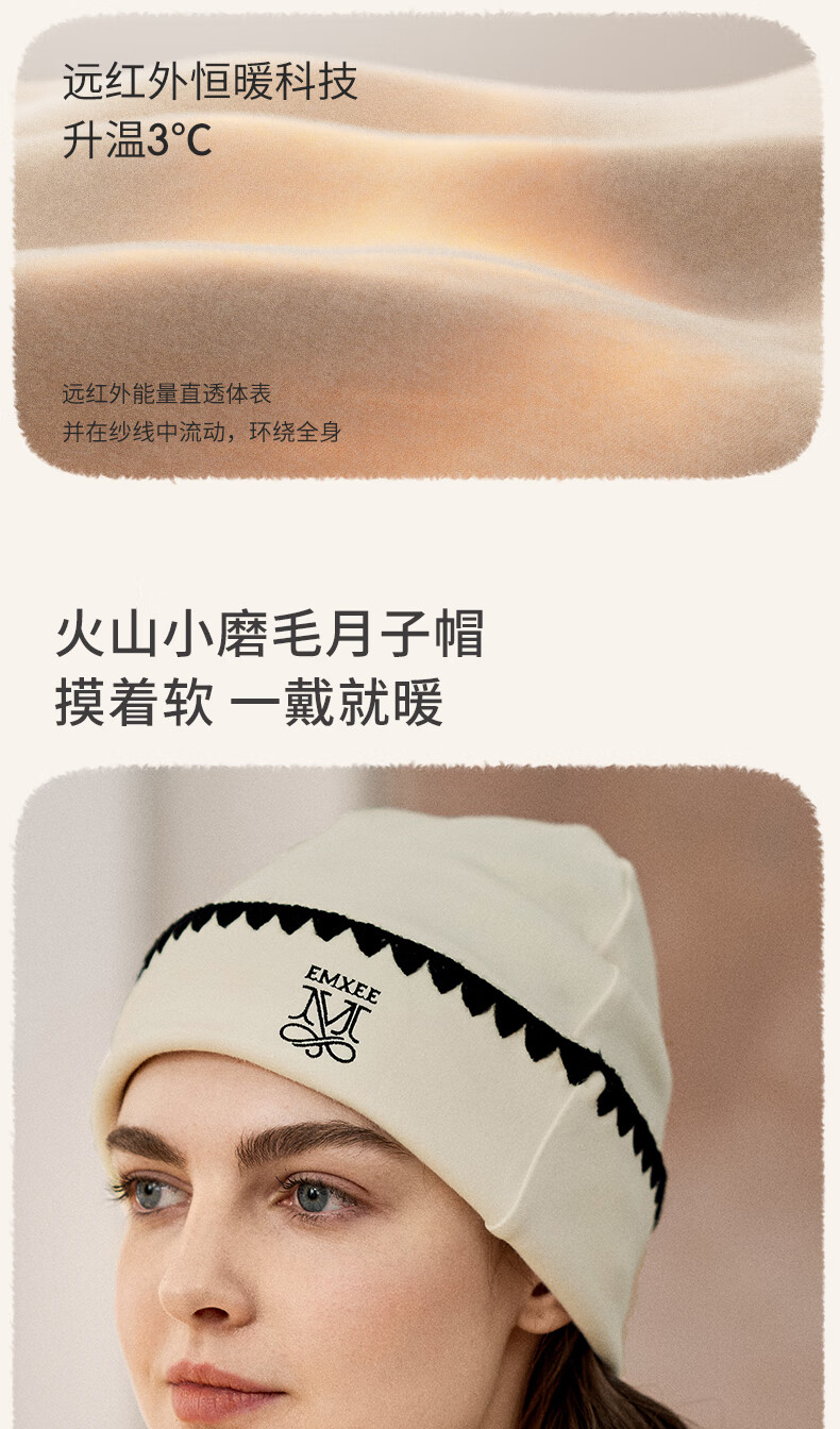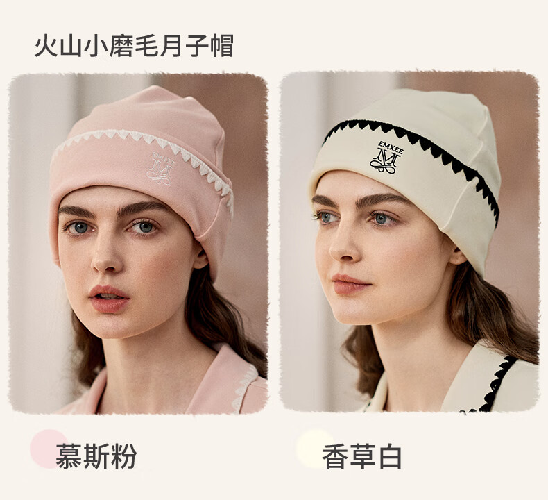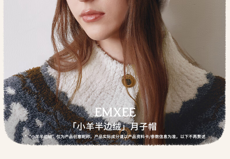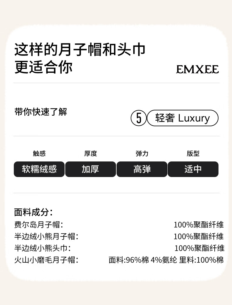 嫚熙(EMXEE)秋季月子帽产妇坐月子双面磨毛孕妇帽产后防风护头帽 【月子帽】瞌睡熊咖-小羊半边绒