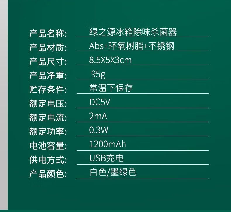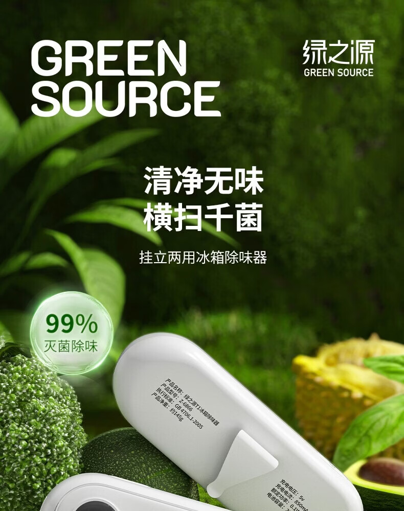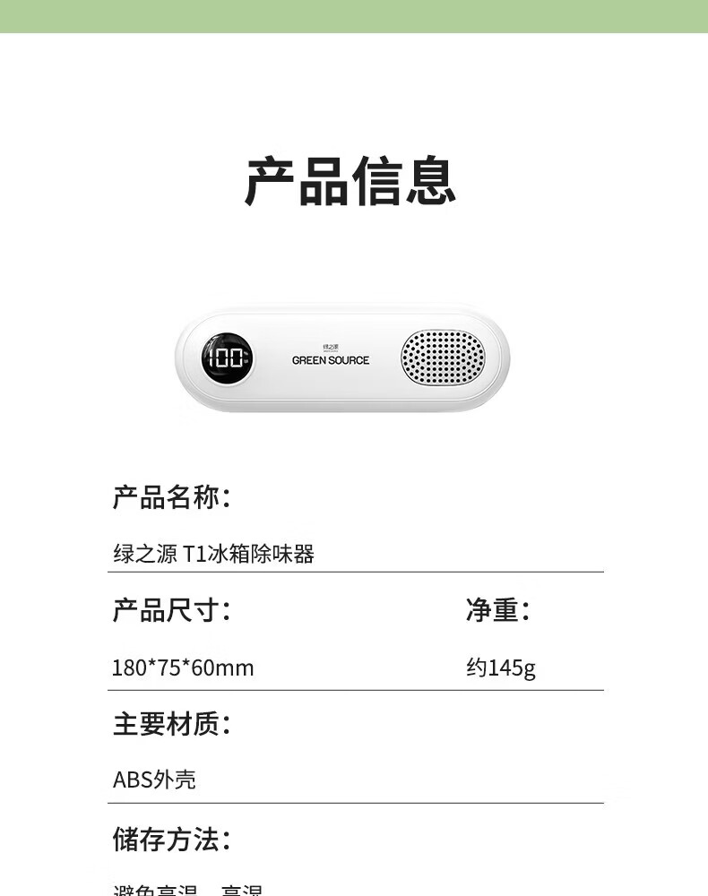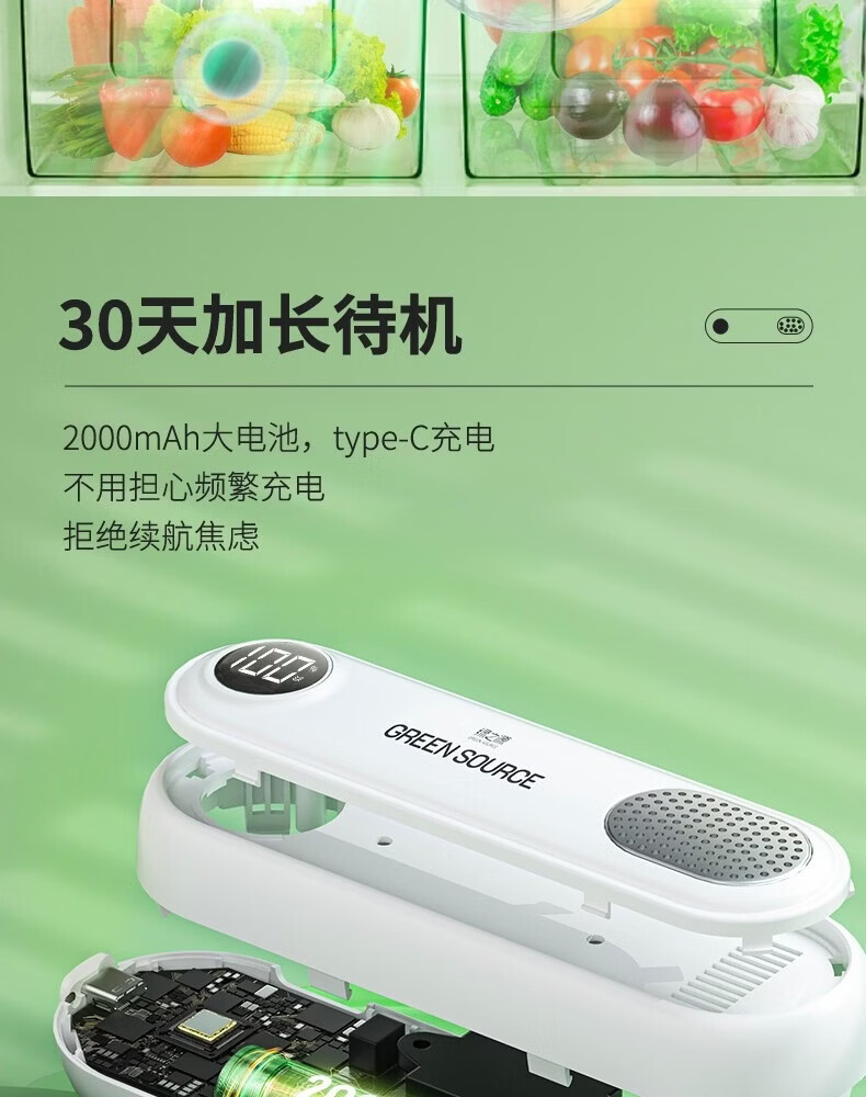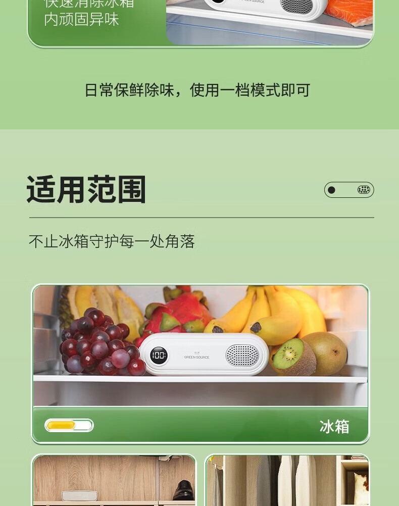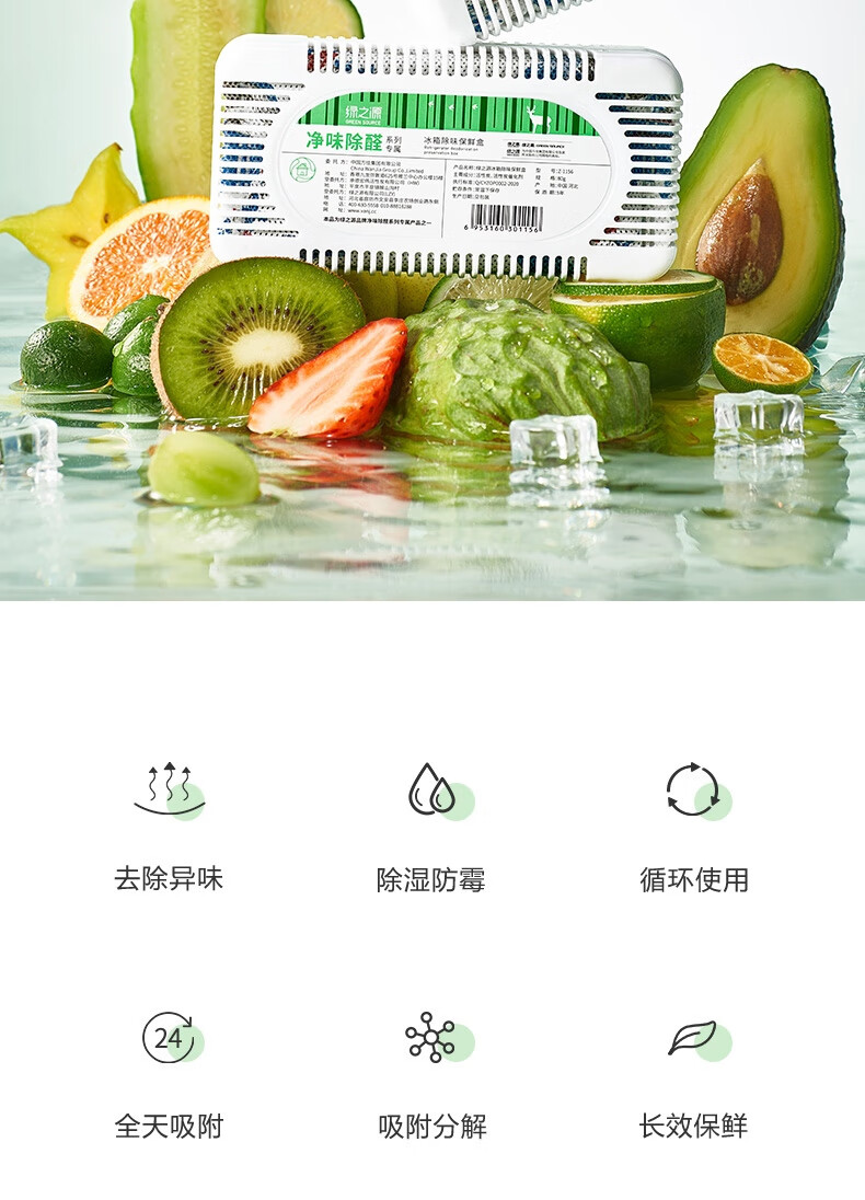 绿之源冰箱除味器臭氧除味剂盒消毒杀菌器冷藏室去异味保鲜神器 冰箱除味器臭氧除味(白色)