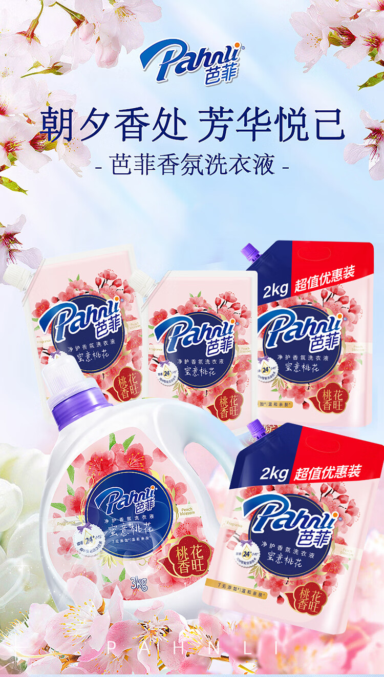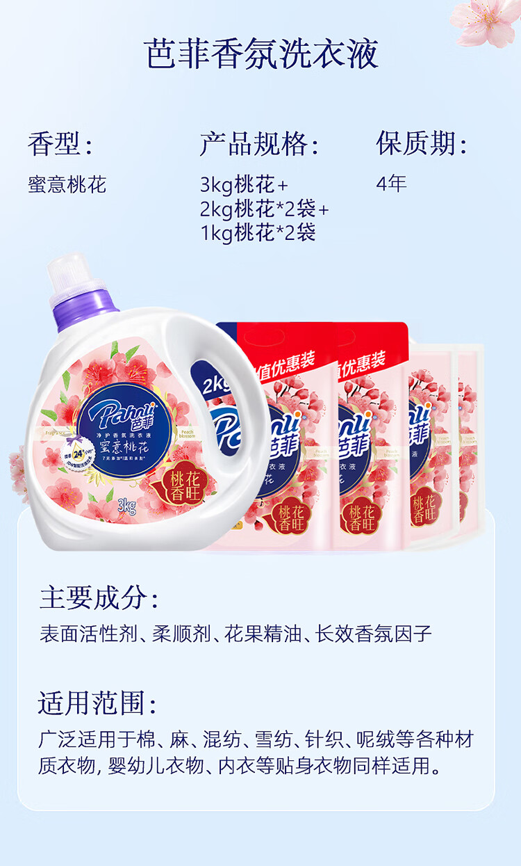 芭菲桃花香氛洗衣液18斤(3kg+2kg×2+1kg×2) 持久留香柔软深层洁净