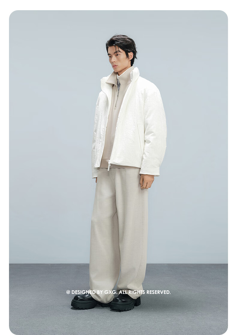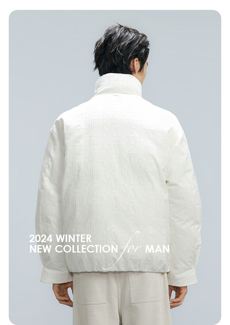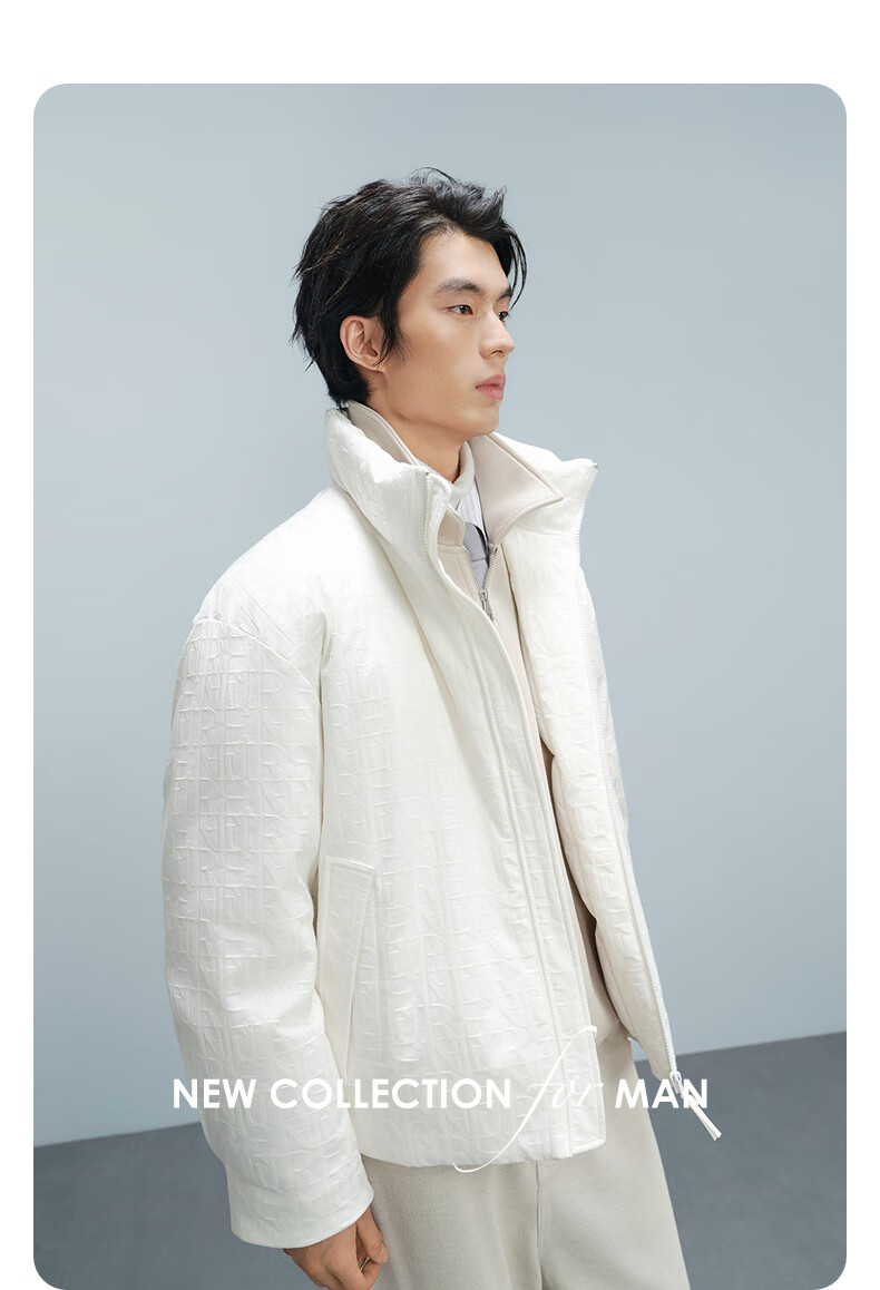GXG男装 商场同款满印提花羽绒服通勤外套 白色 175/L