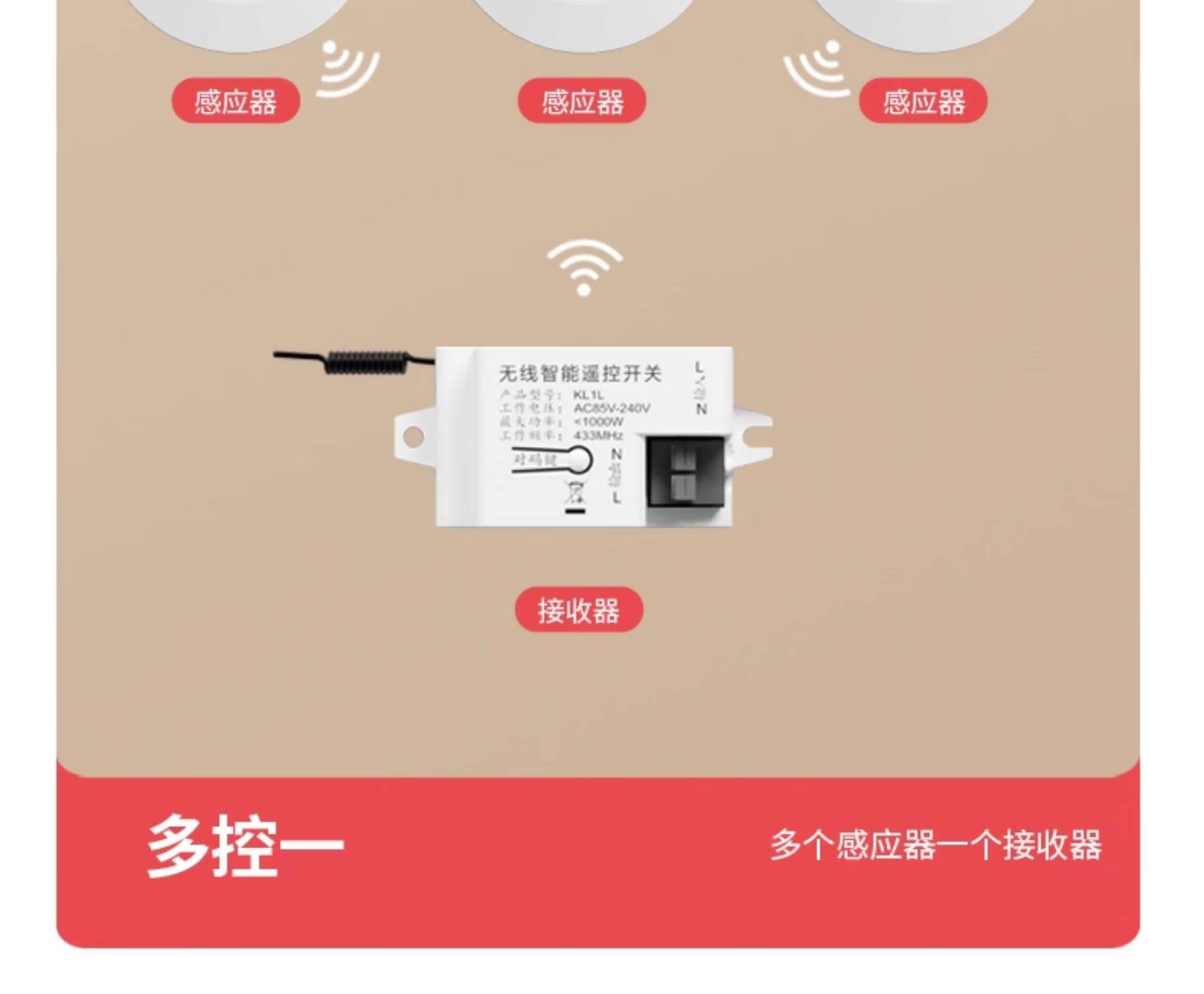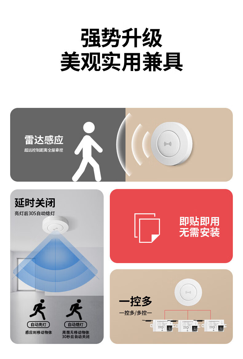 国际电工无线感应开关雷达人体免布线家用感应器厕所开关改造楼道自动亮灯 1个人体雷达感应开关+1个接收器